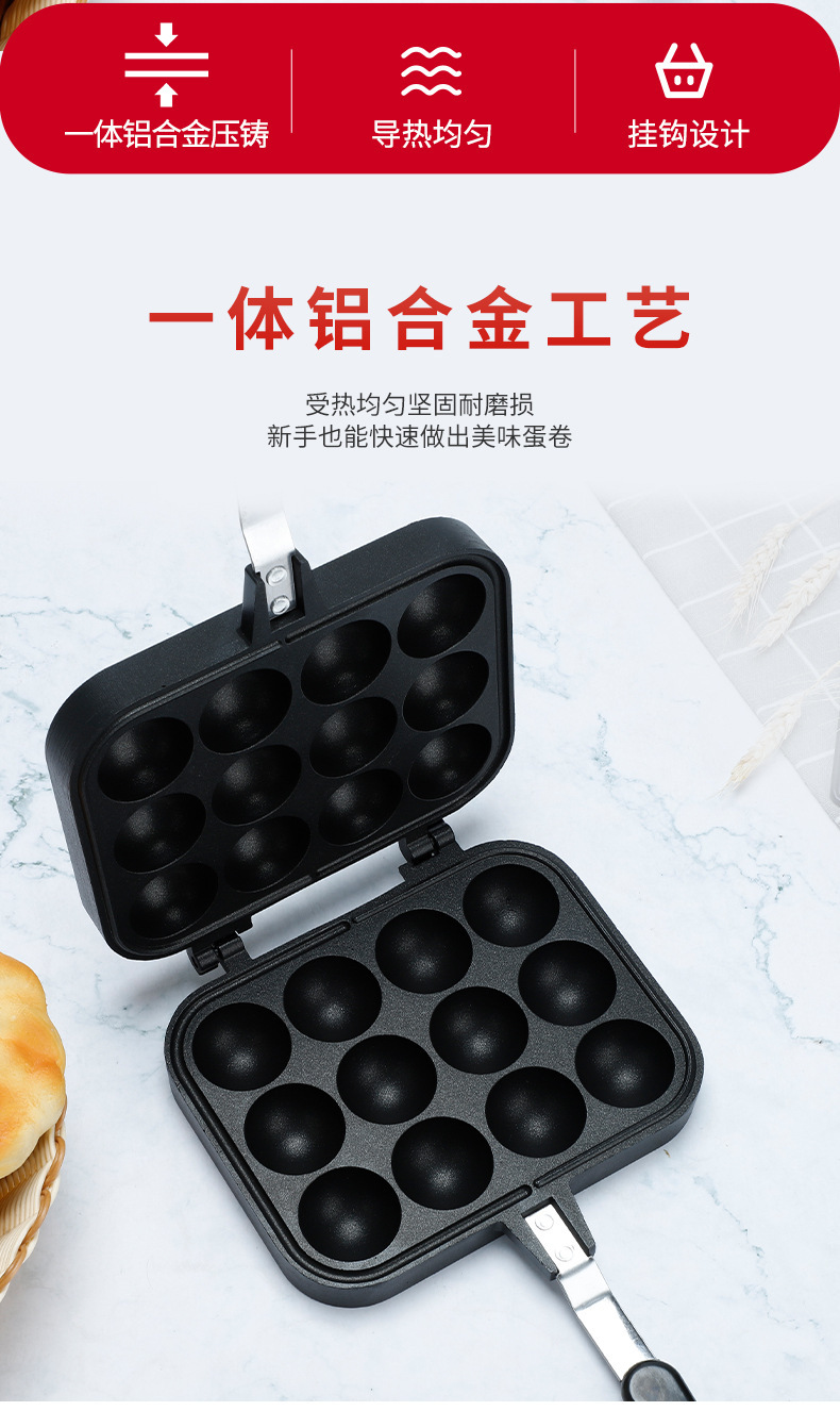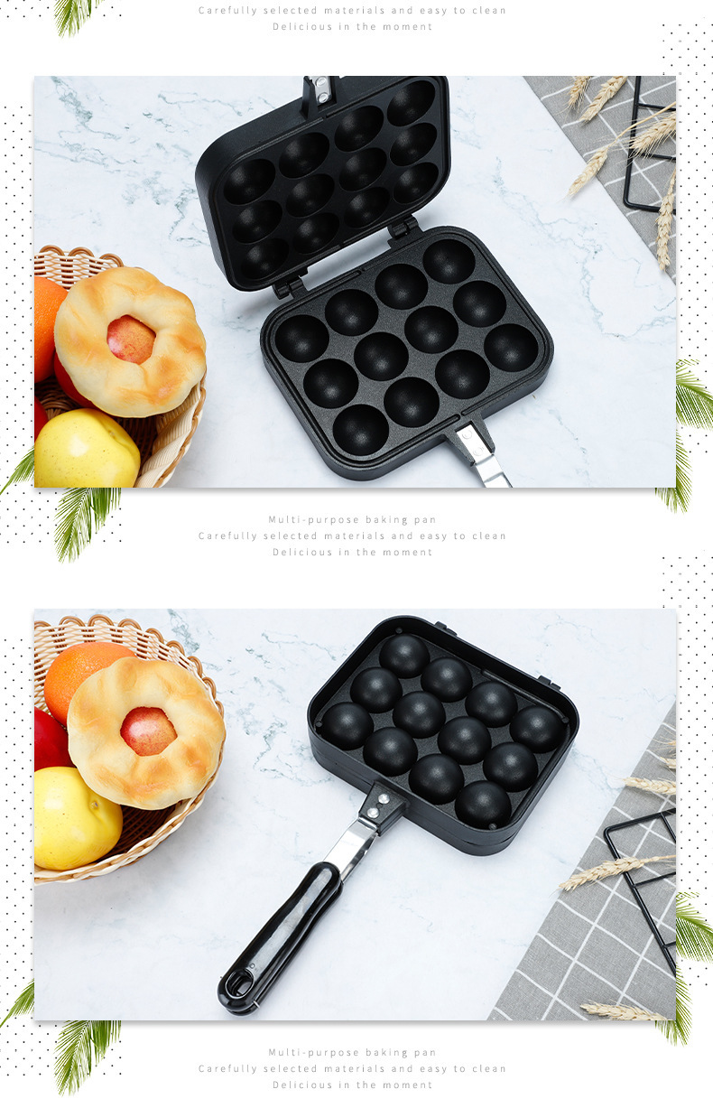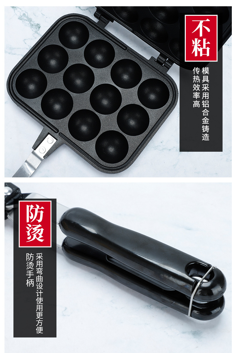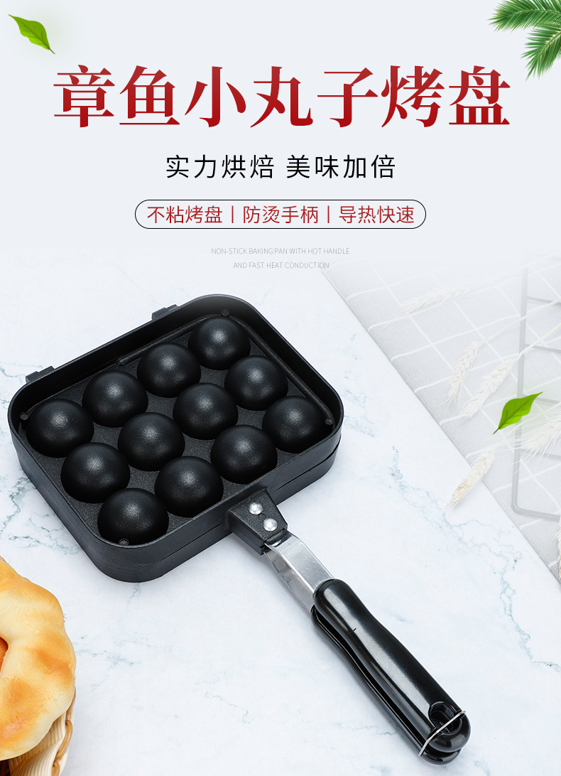 厂家直供双面12孔不粘锅涂层明火烤盘煎锅家用烘焙章鱼小丸子烤盘