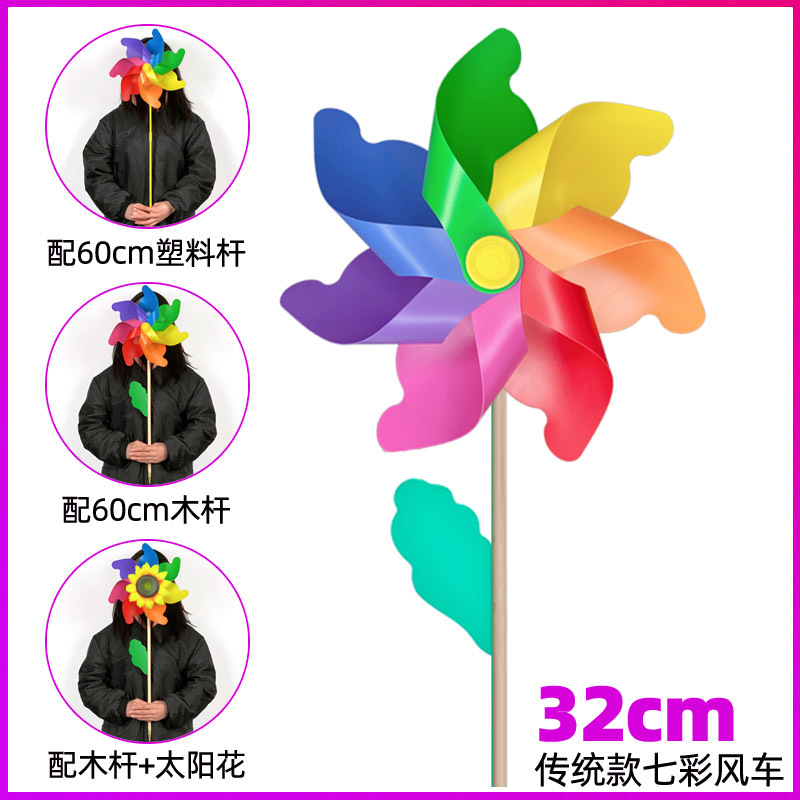 木杆插地向日葵炫彩七彩风车户外大号风车儿童玩具地摊小风车批发