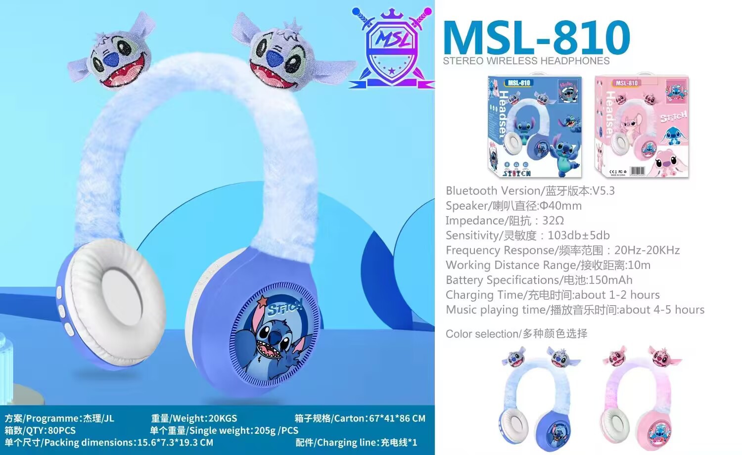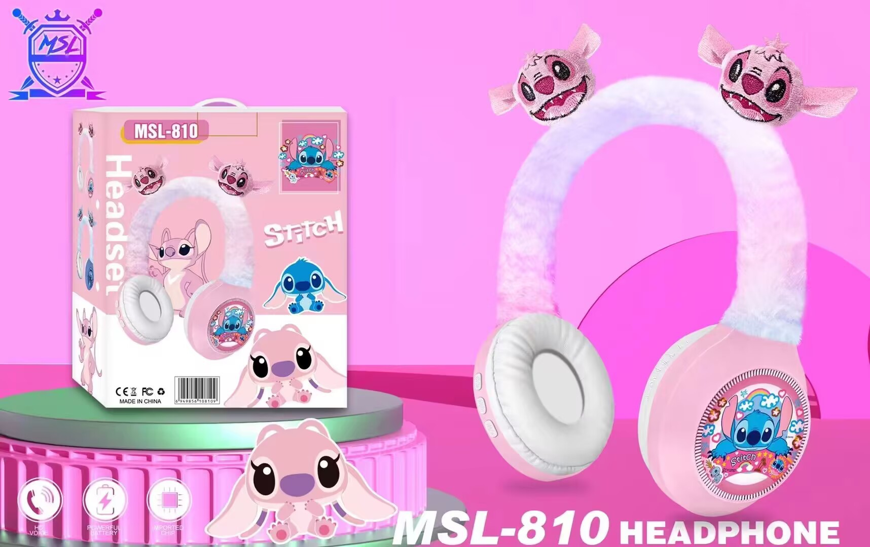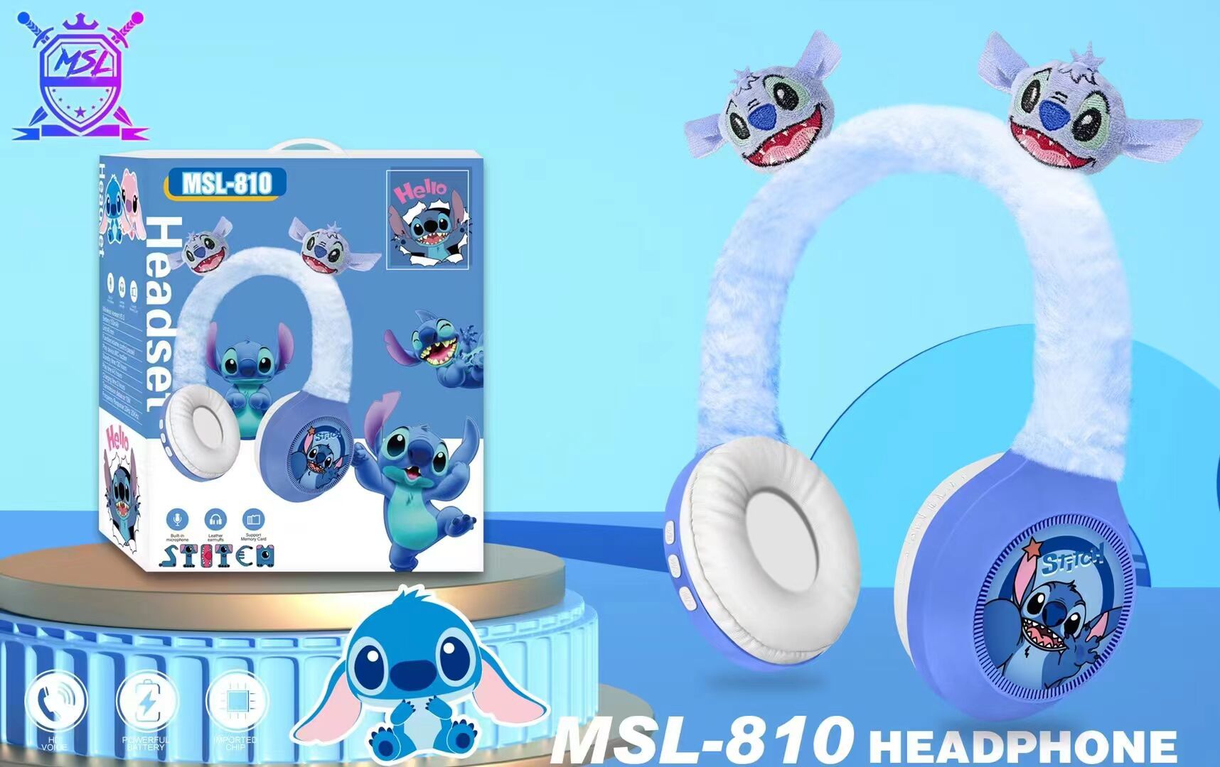 MSL-810 新款跨境创意卡通毛绒头戴蓝牙耳机礼品无线儿童蓝牙耳机