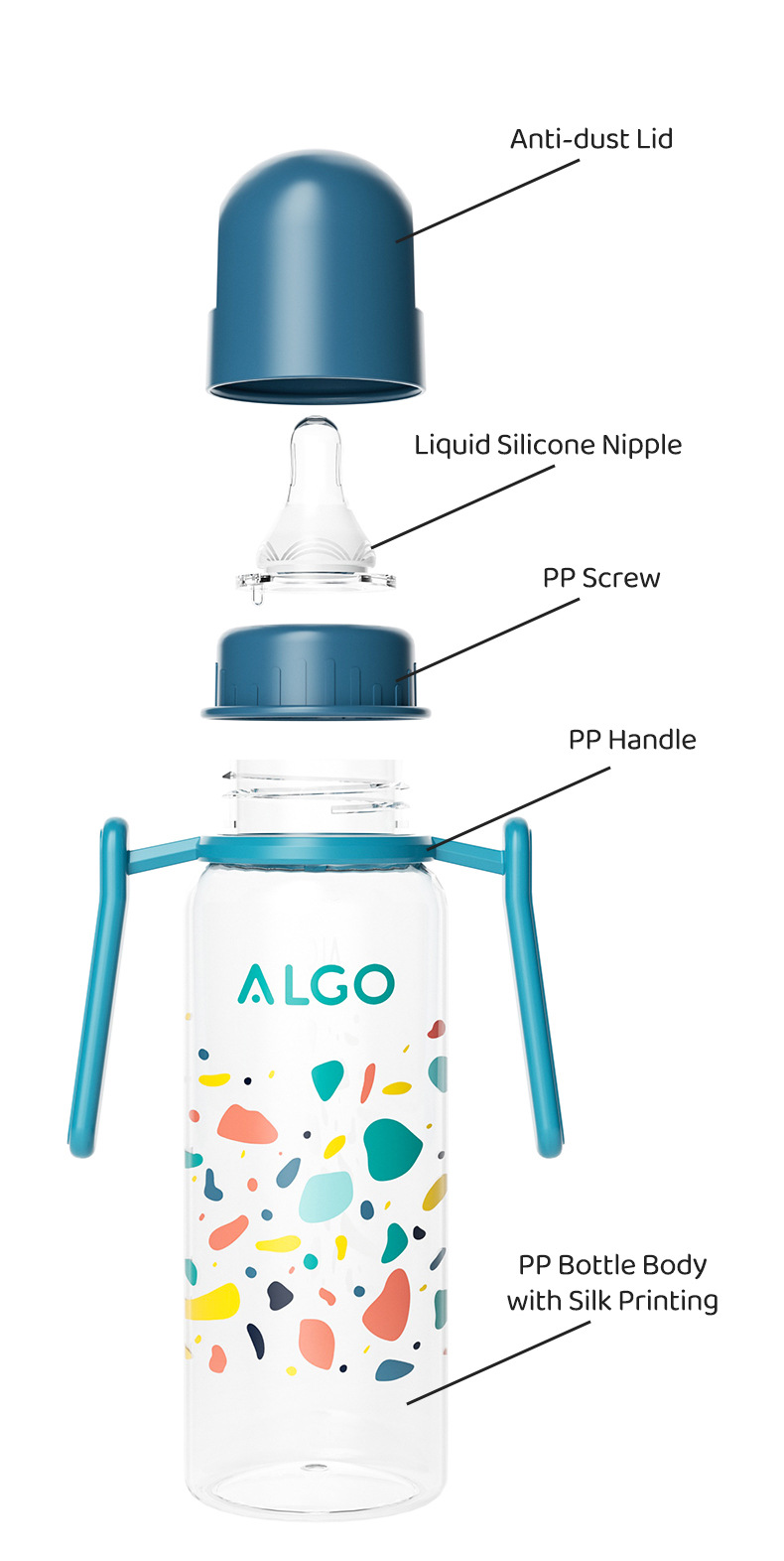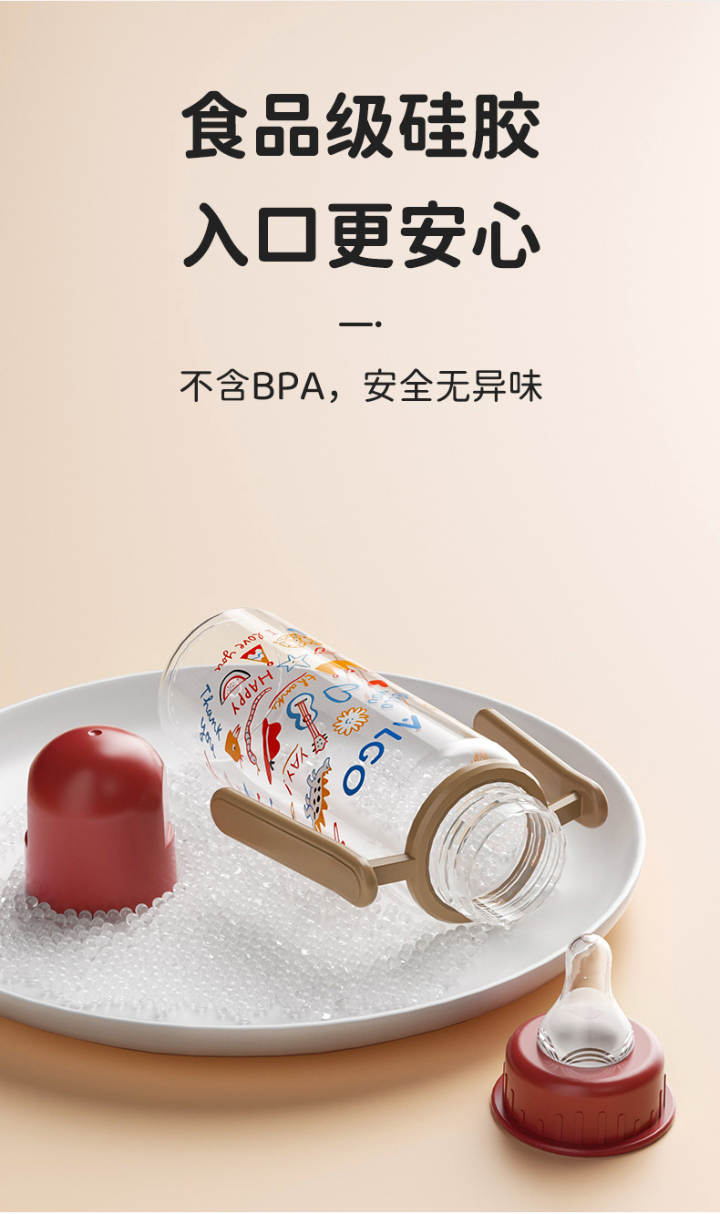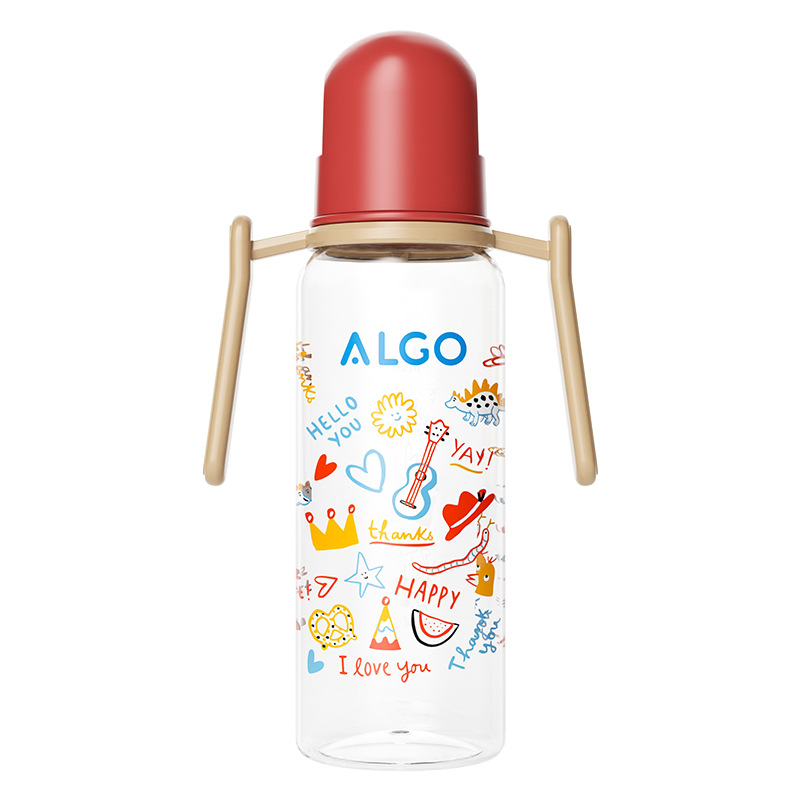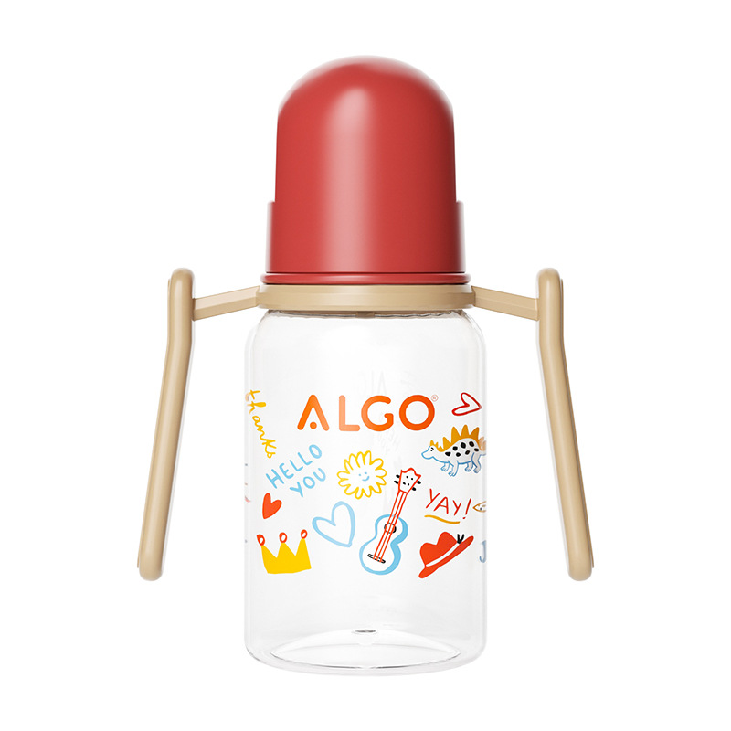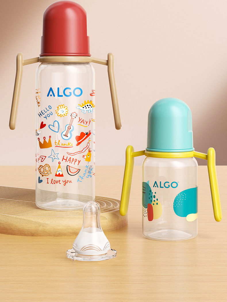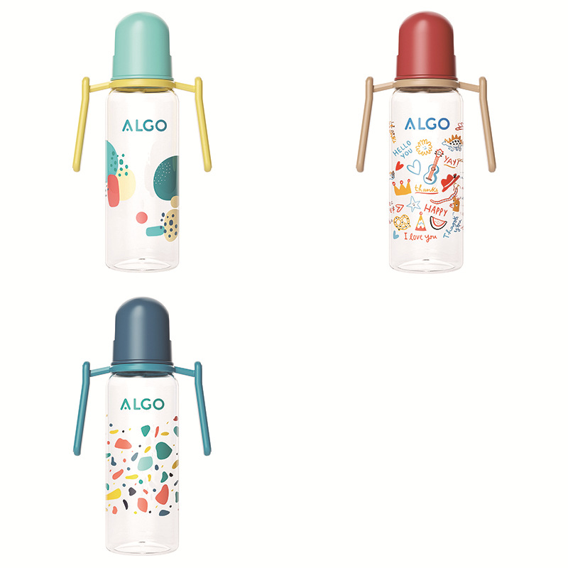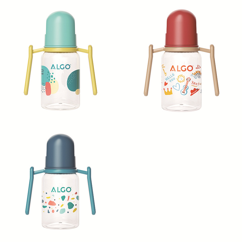 ALGO 新款pp奶瓶彩绘标口直身带手柄120/240ml新生儿奶瓶母婴用品