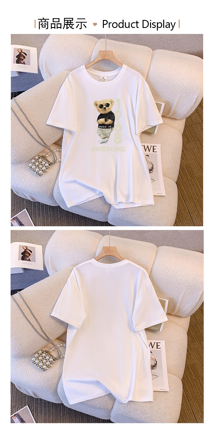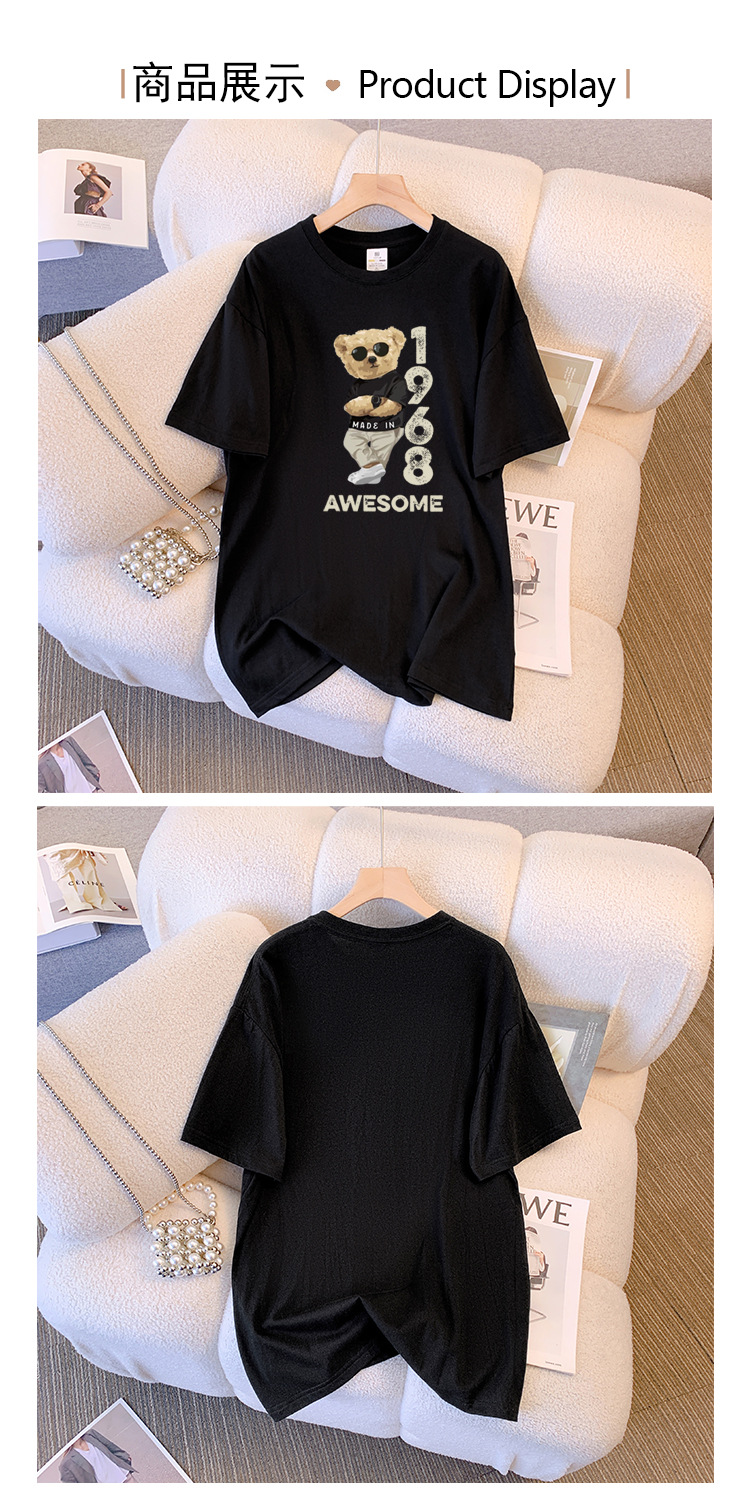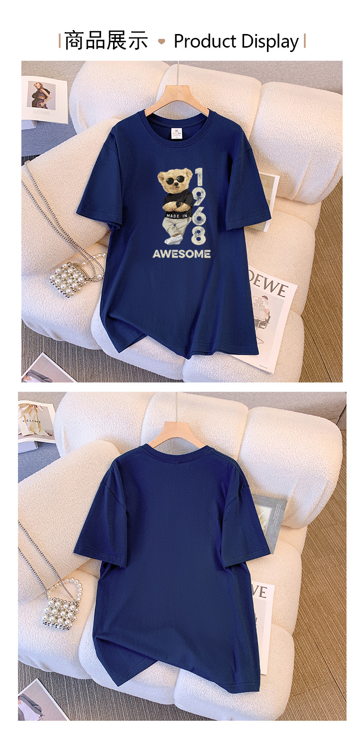 纯棉短袖T恤女圆领夏日韩休闲宽松大码女装时尚新品上衣跨境热卖