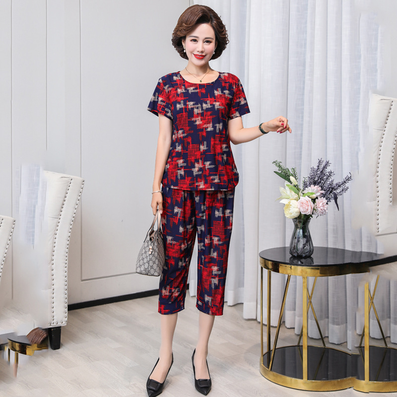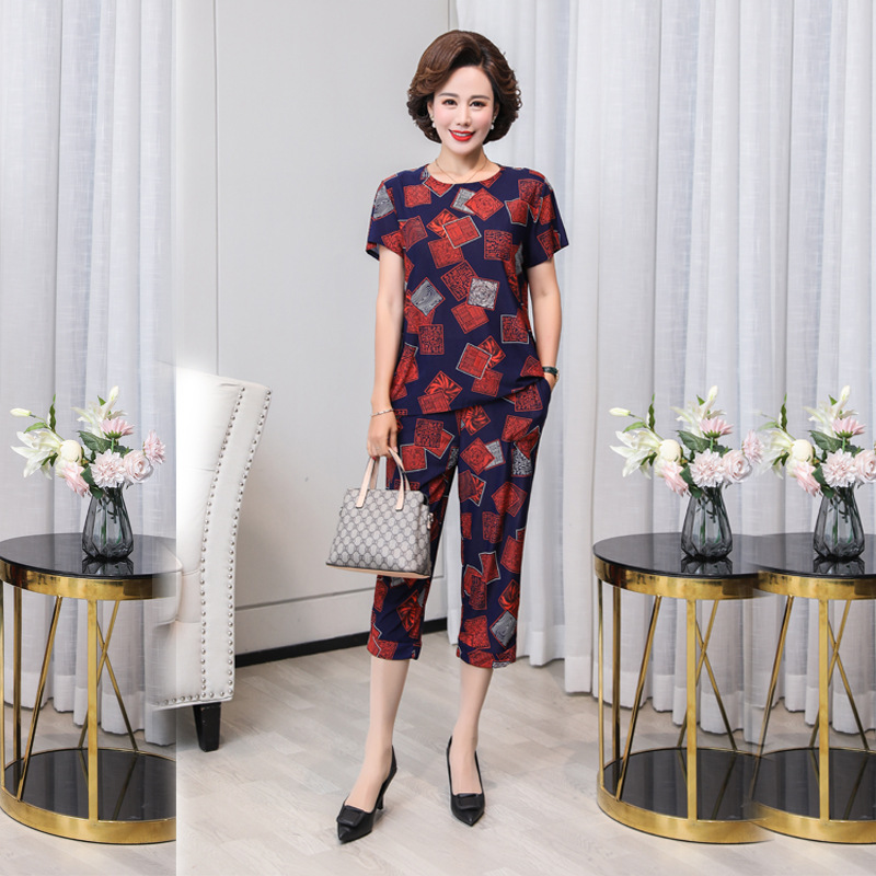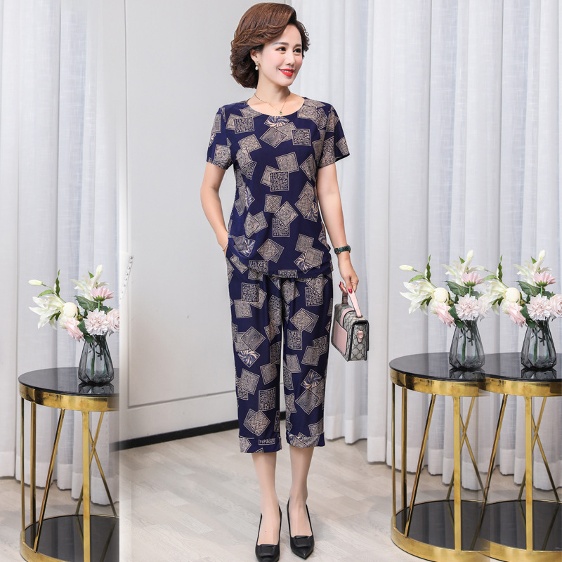 妈妈装夏装2023新款舒适短袖上衣裤子两件套中老年女时尚套装T恤t