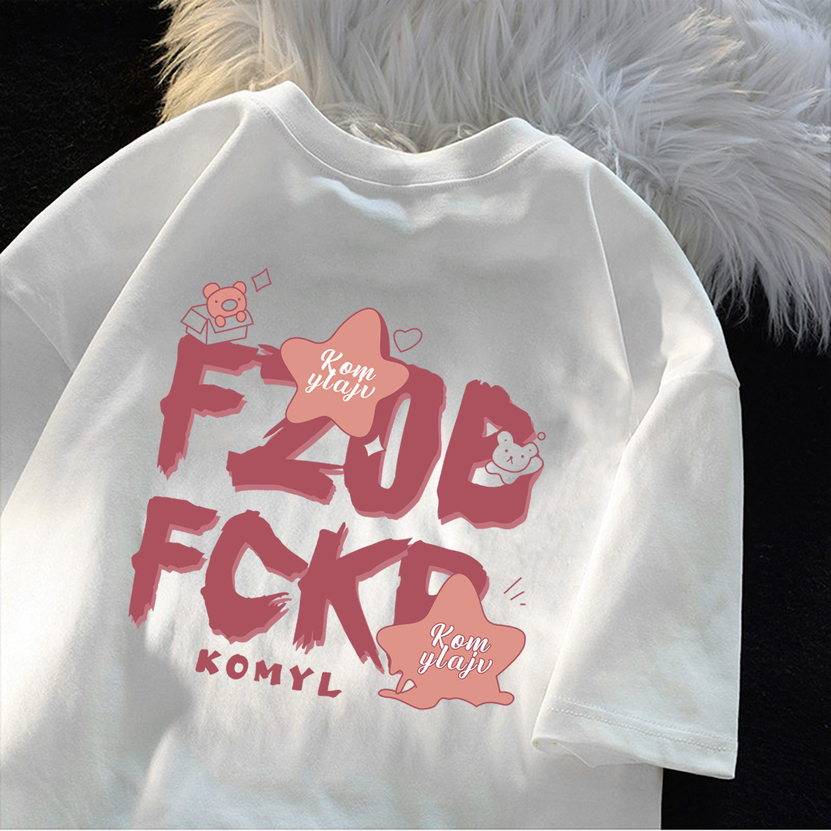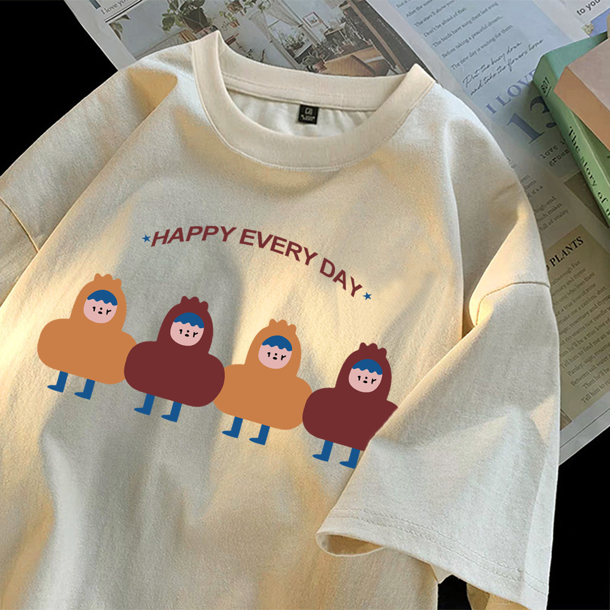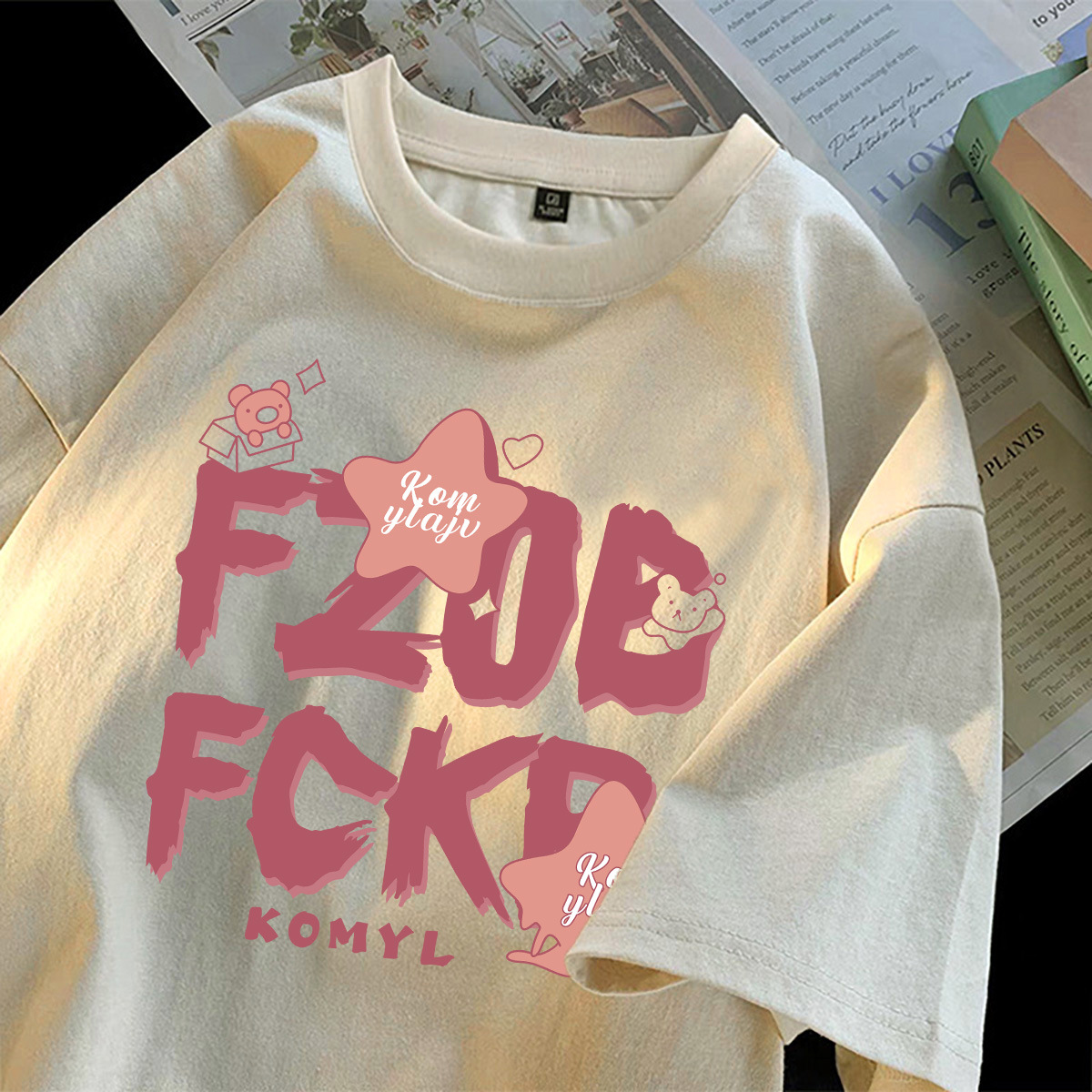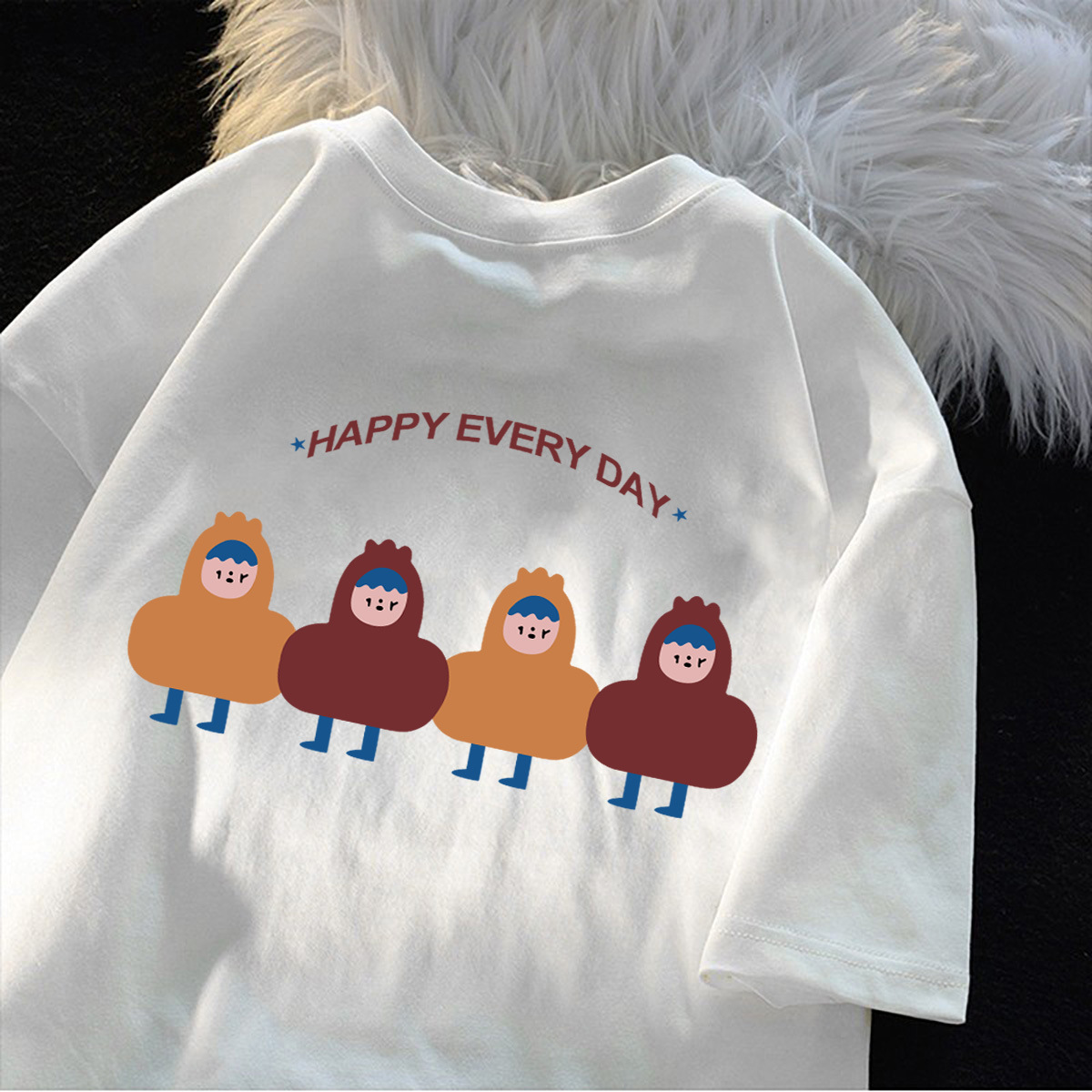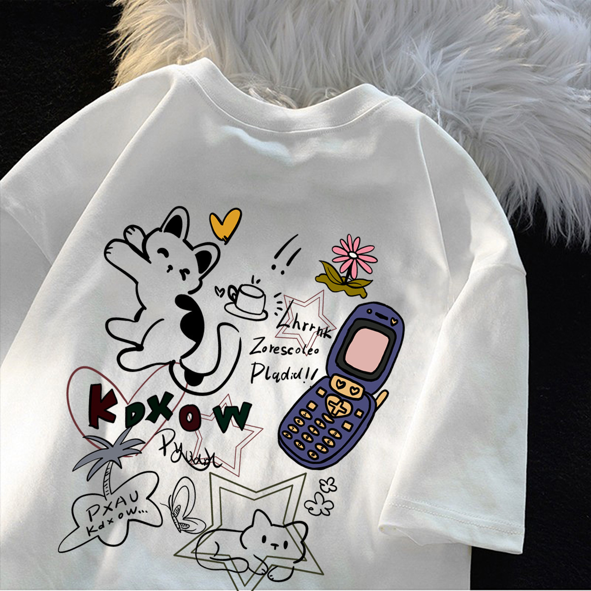 纯棉短袖t恤女夏季宽松活力落肩透气趣味大图案情侣款弹力女装潮