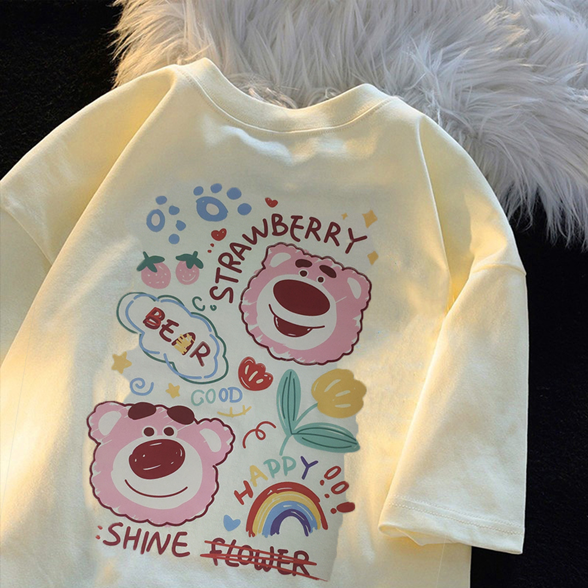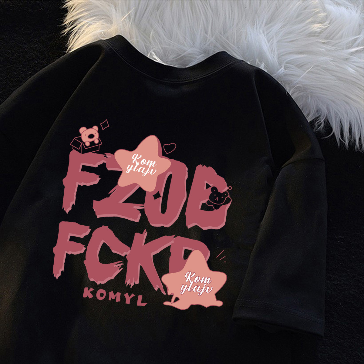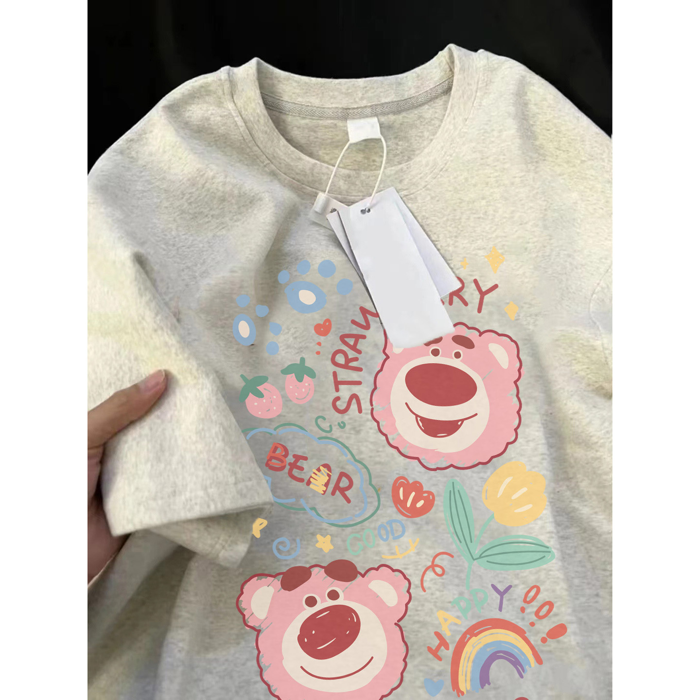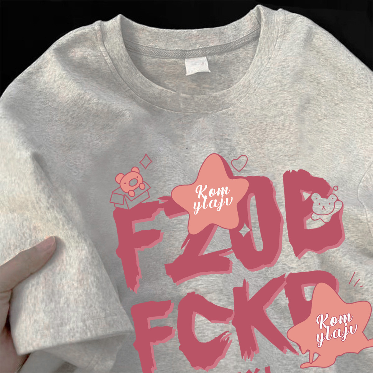纯棉短袖t恤女夏季宽松活力落肩透气趣味大图案情侣款弹力女装潮