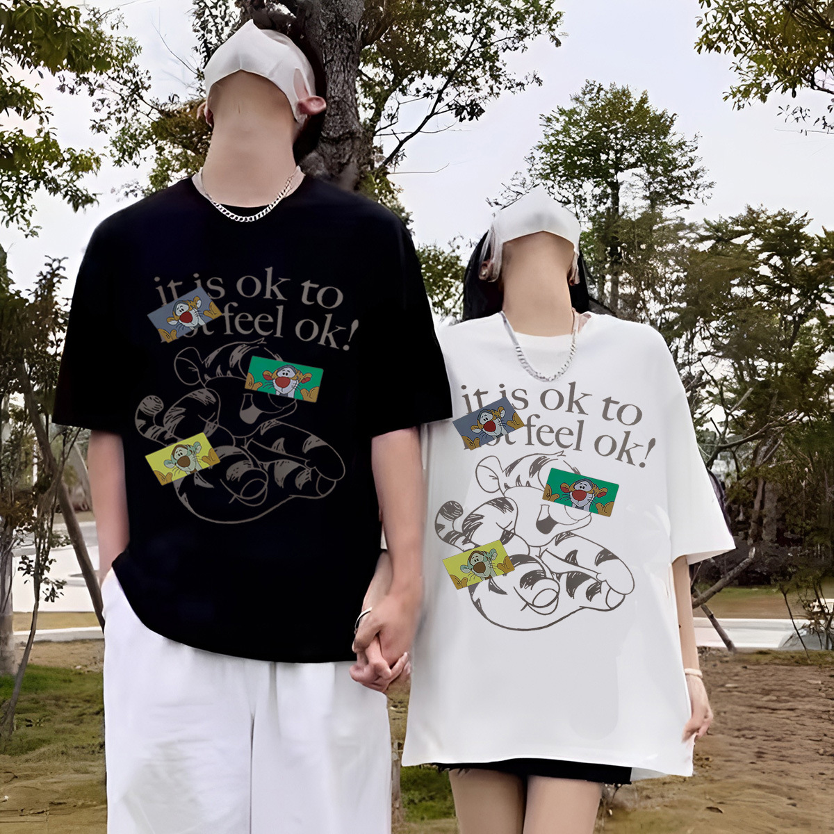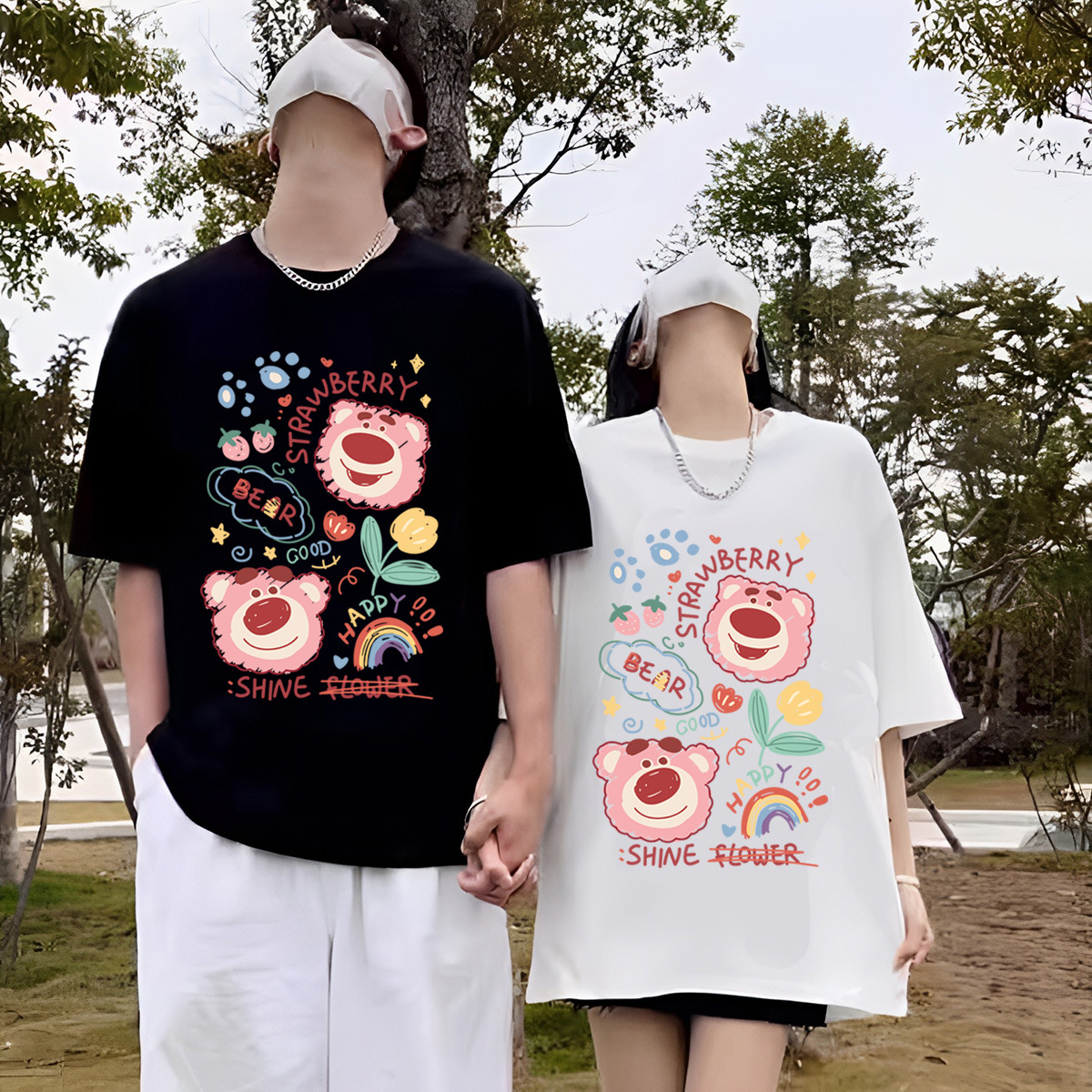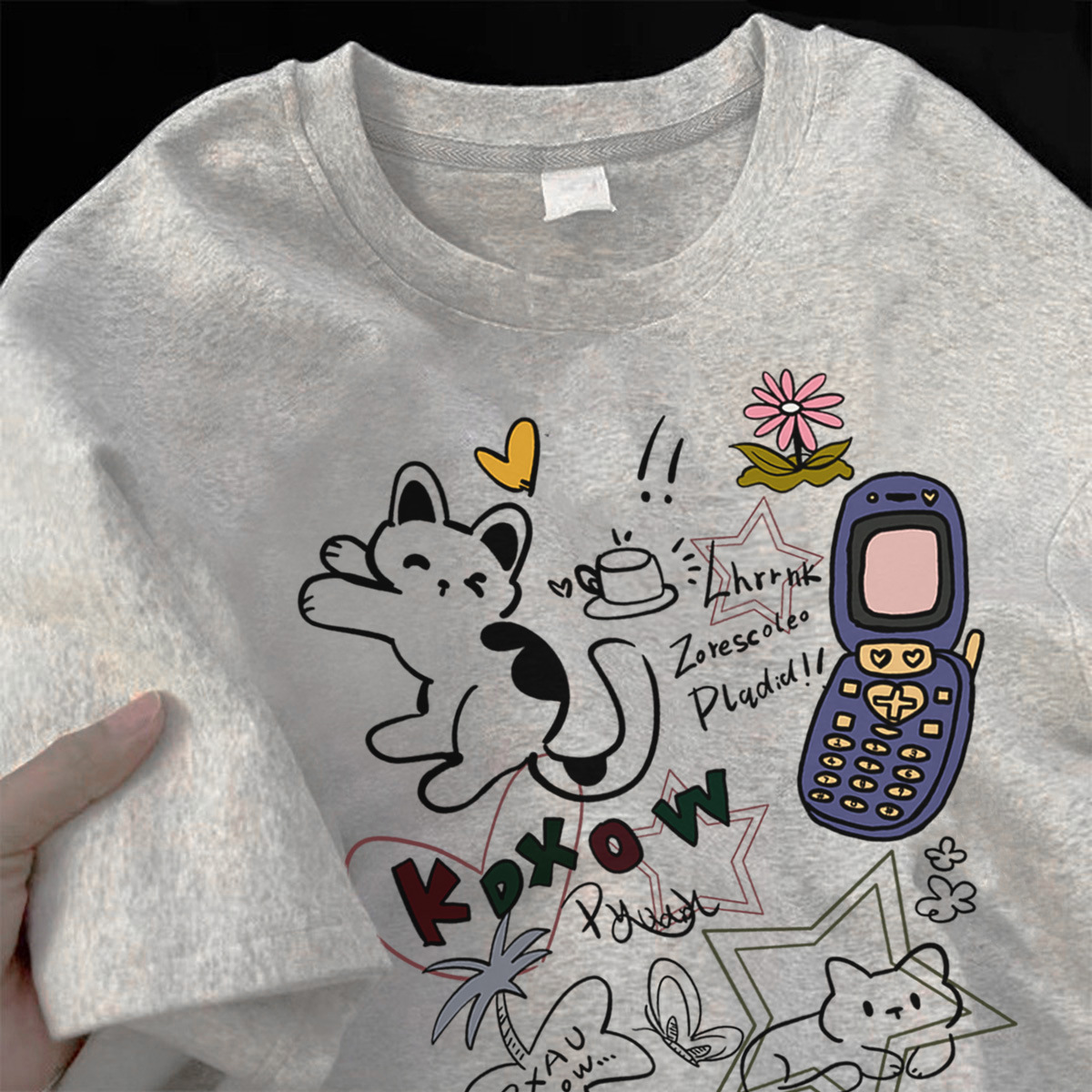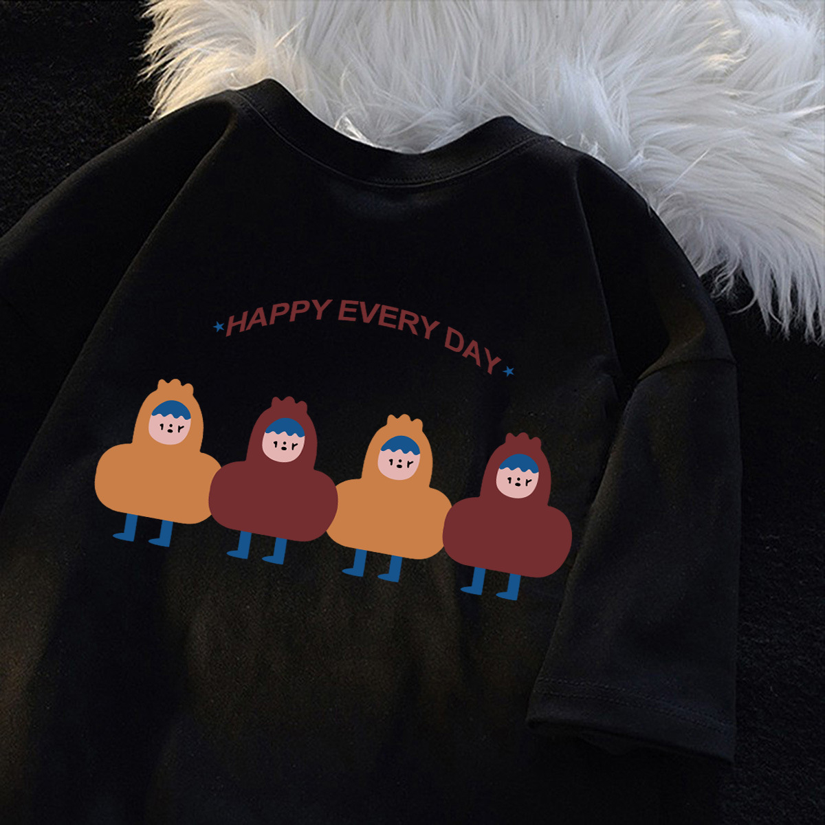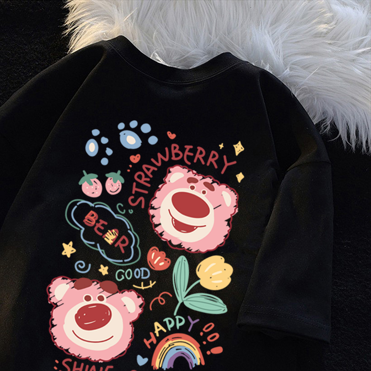 纯棉短袖t恤女夏季宽松活力落肩透气趣味大图案情侣款弹力女装潮