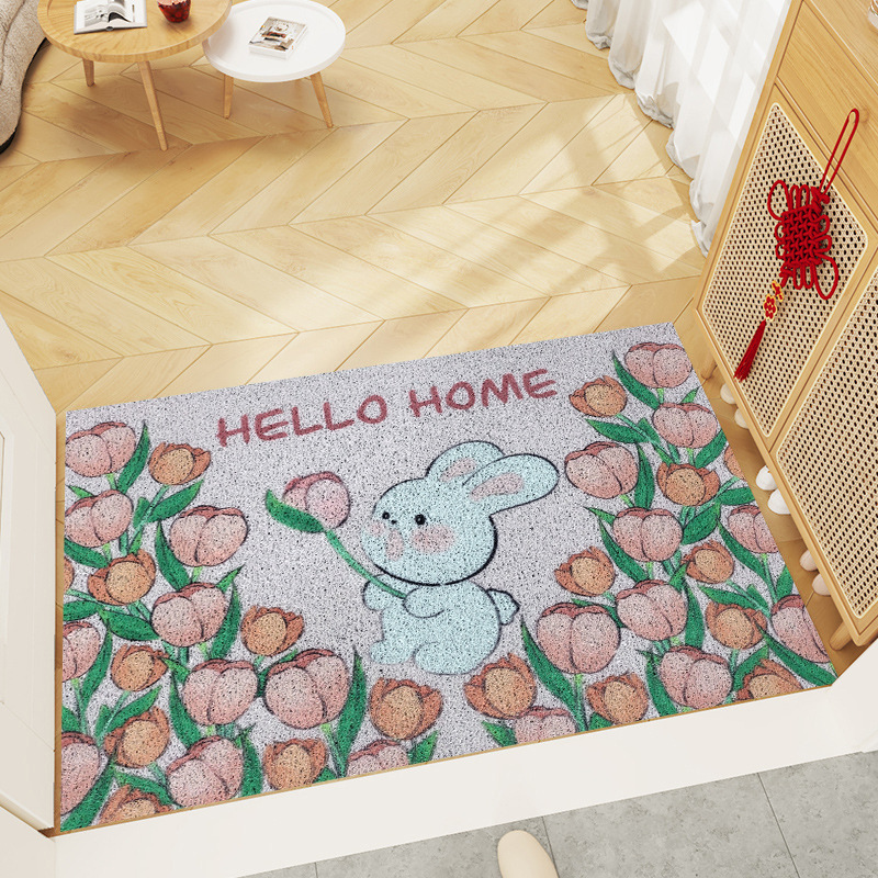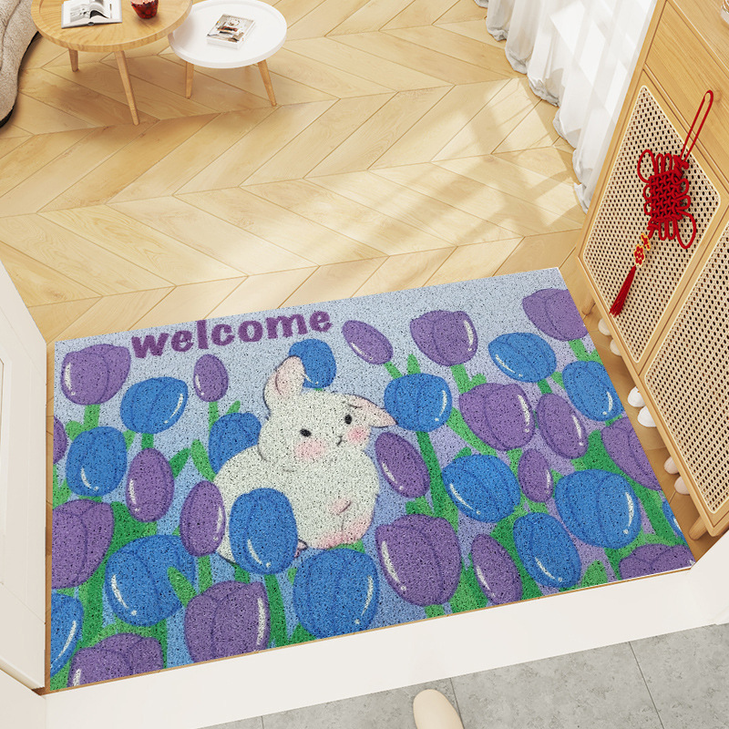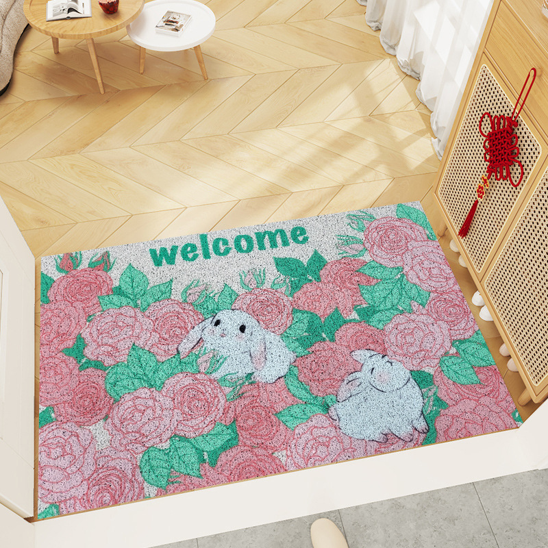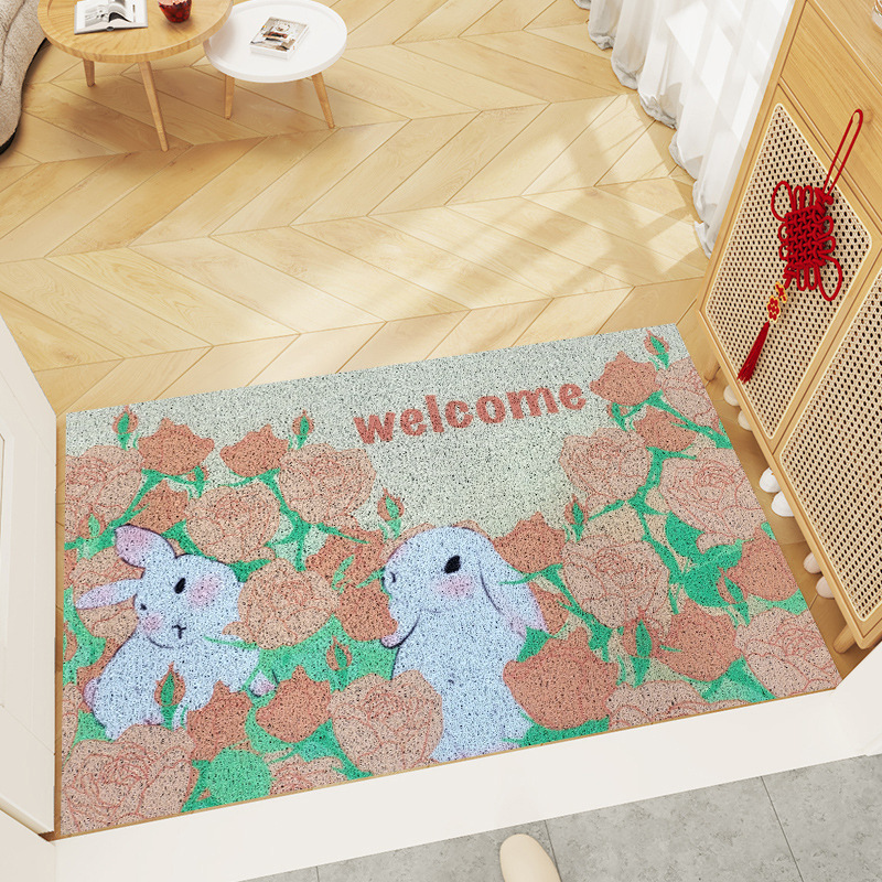 ins少女心进门脚垫 入户耐磨防滑可裁剪地垫 四季款花朵丝圈脚垫