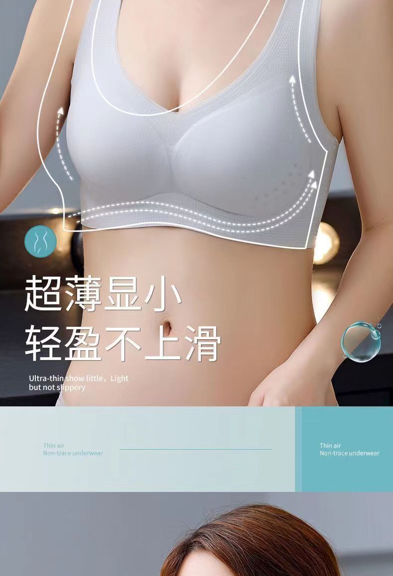 冰丝无痕内衣夏季女士超薄大码文胸透气聚拢上托舒适背心睡眠胸罩