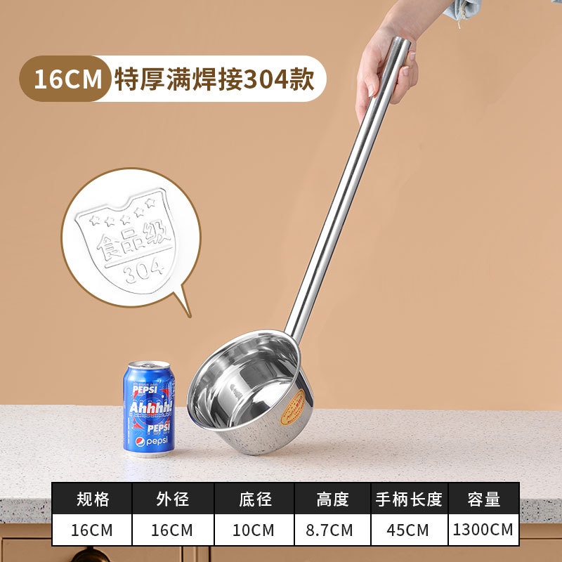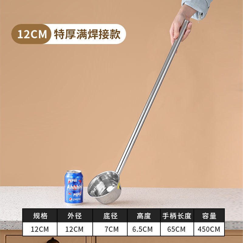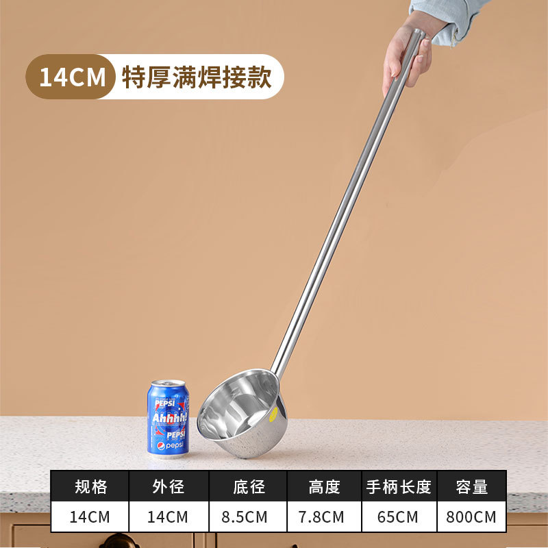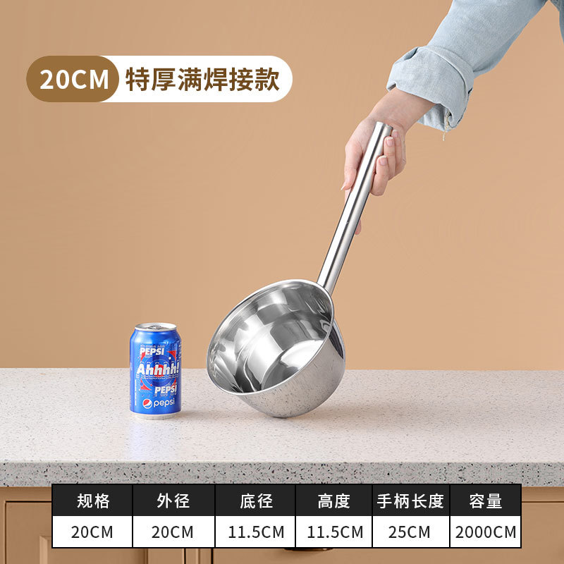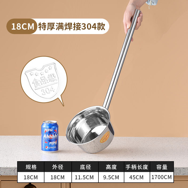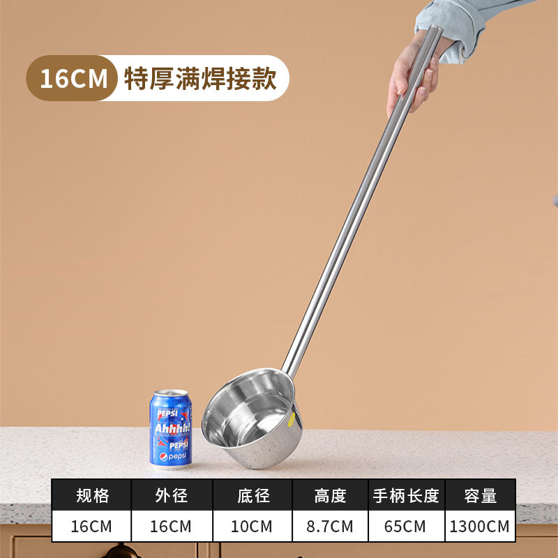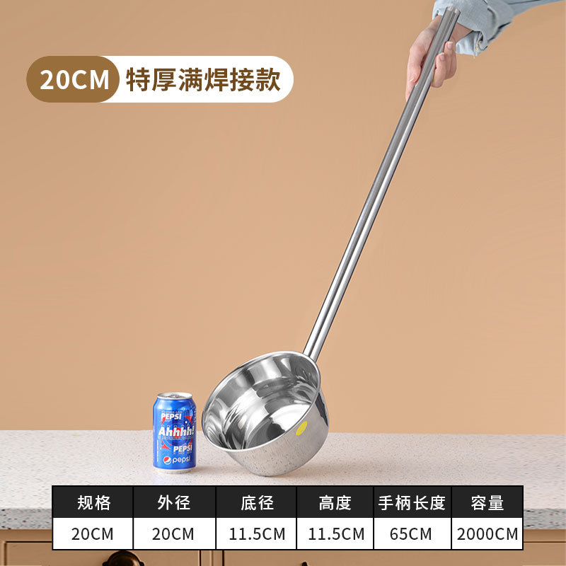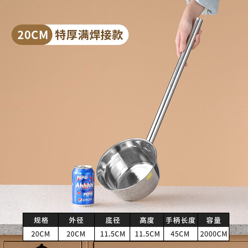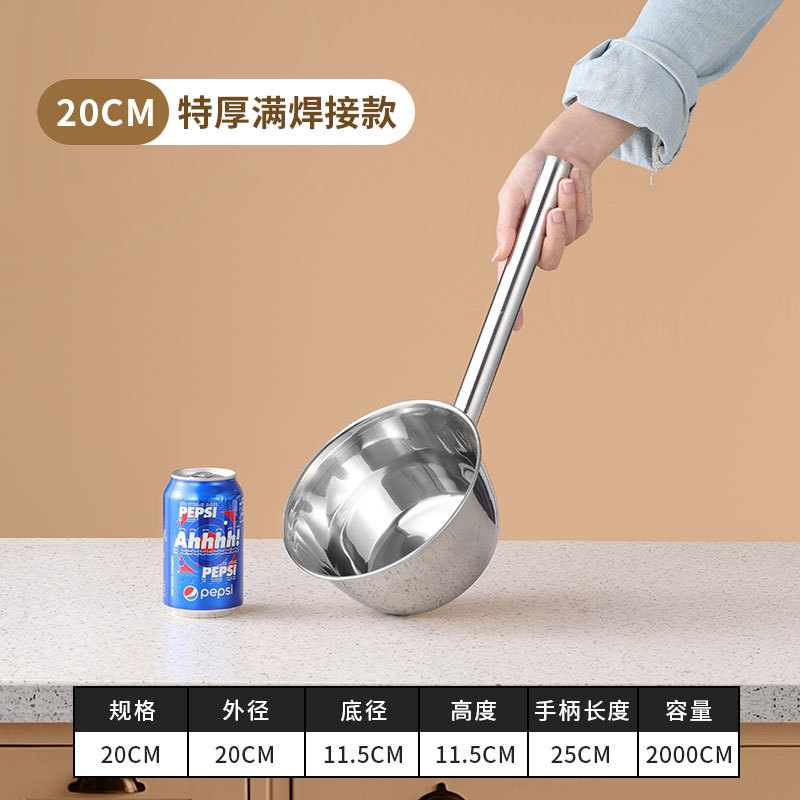 特厚水瓢304不锈钢勺子水舀子厨房加长柄食堂打粥大汤勺汤瓢水勺