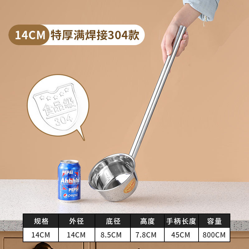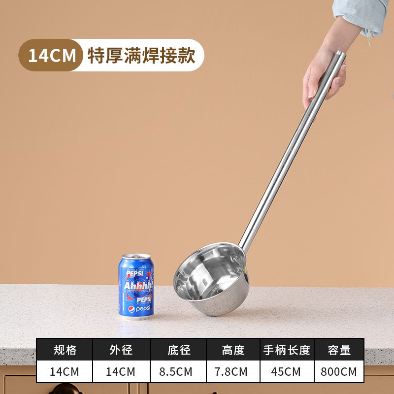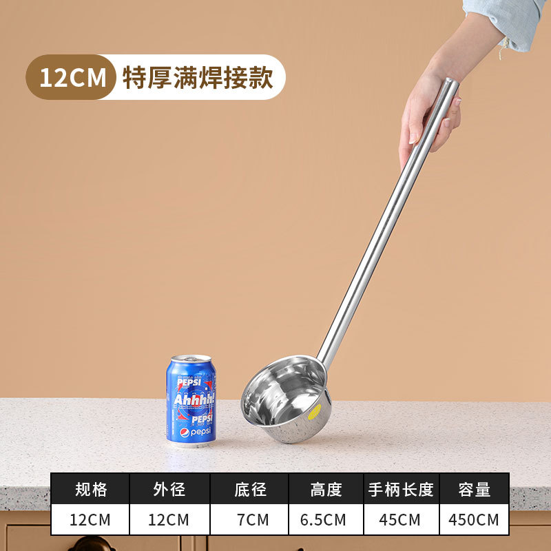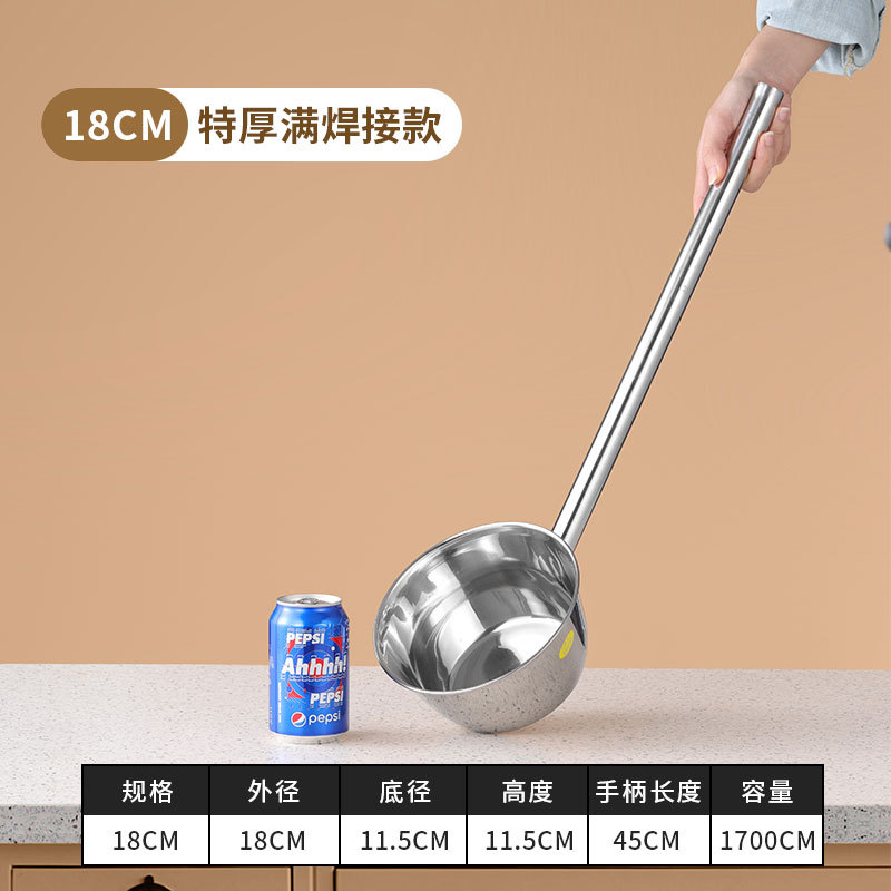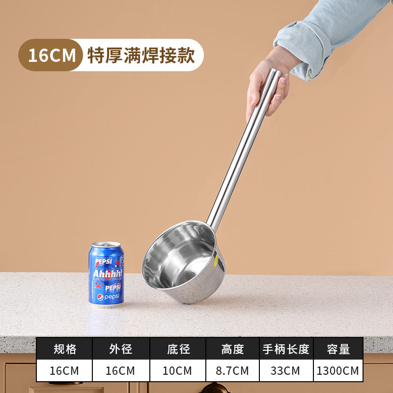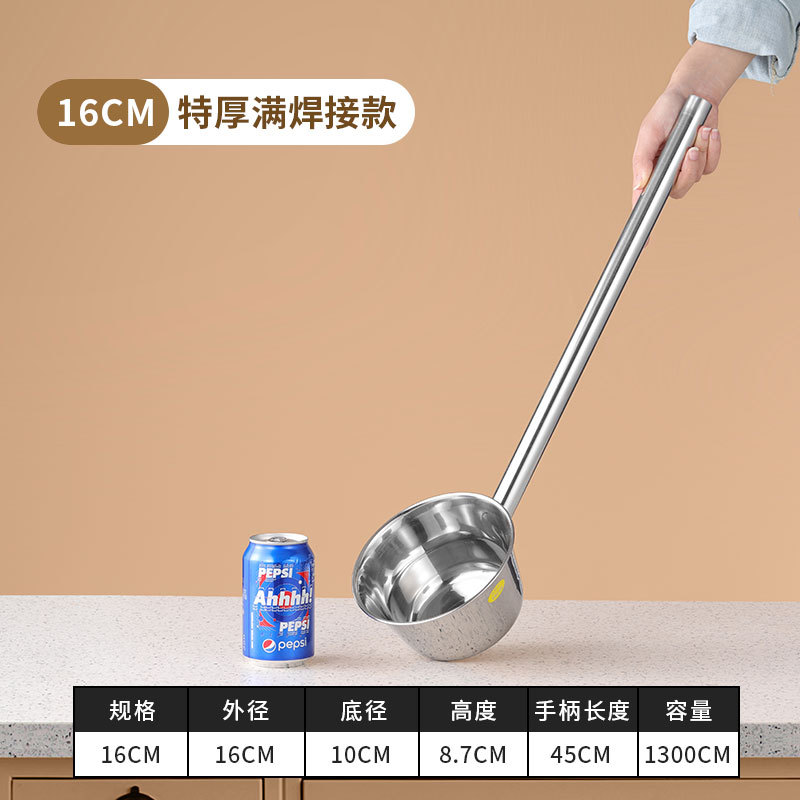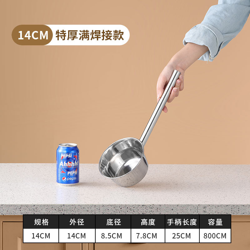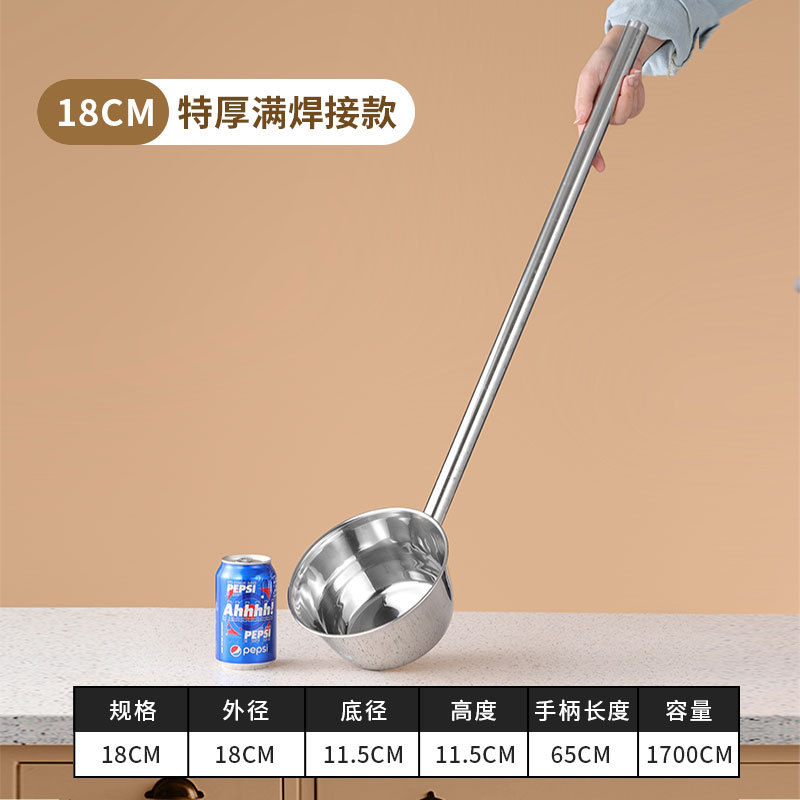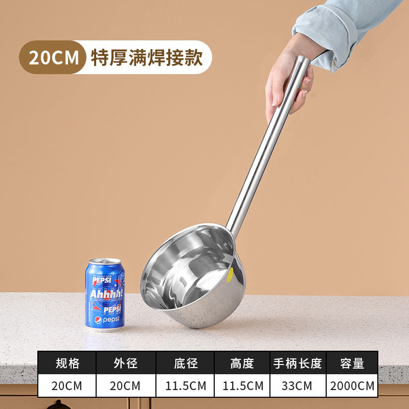 特厚水瓢304不锈钢勺子水舀子厨房加长柄食堂打粥大汤勺汤瓢水勺