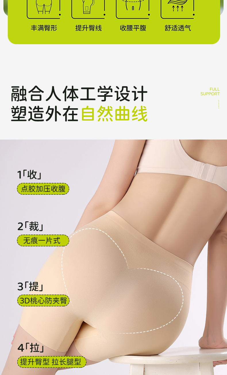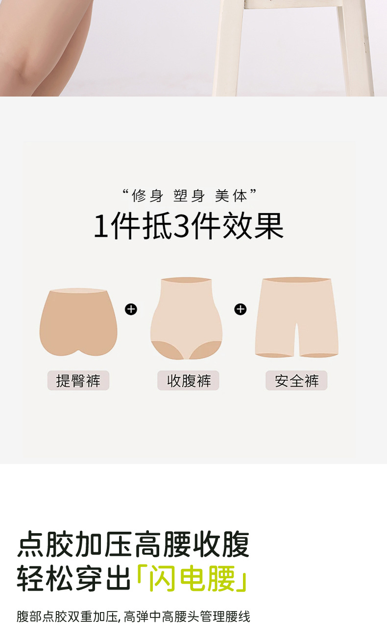 宝娜斯安全裤女强力收腹防走光内裤二合一收小肚子无痕平角打底裤
