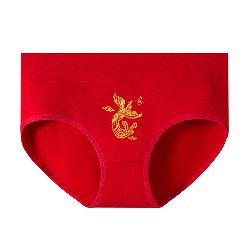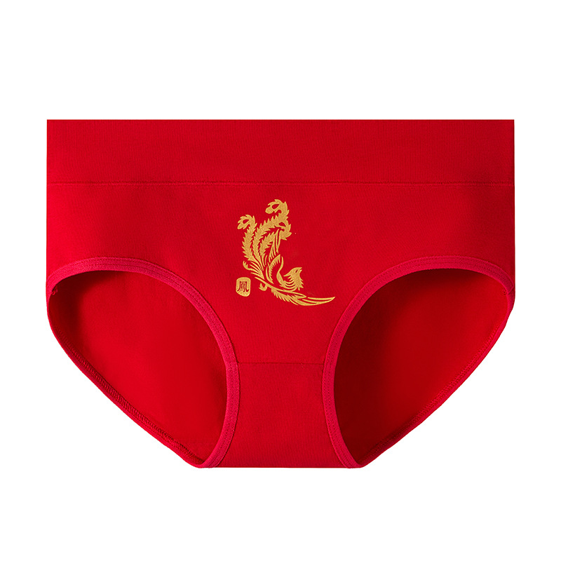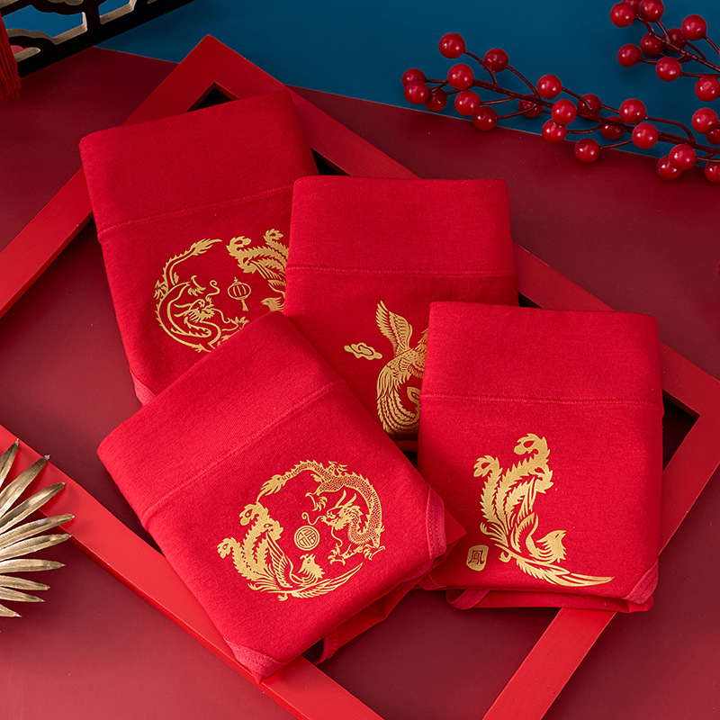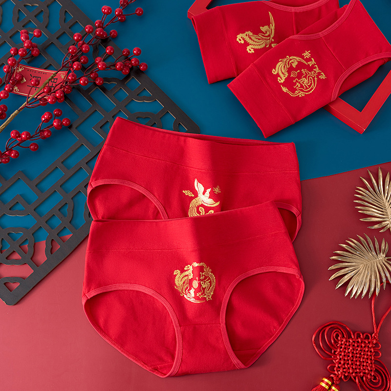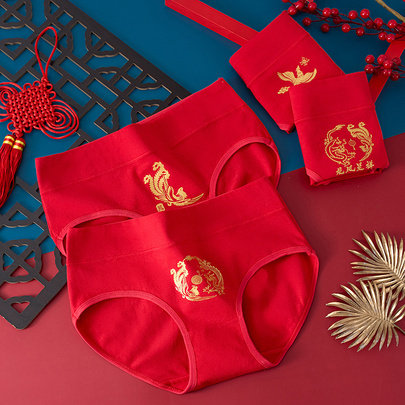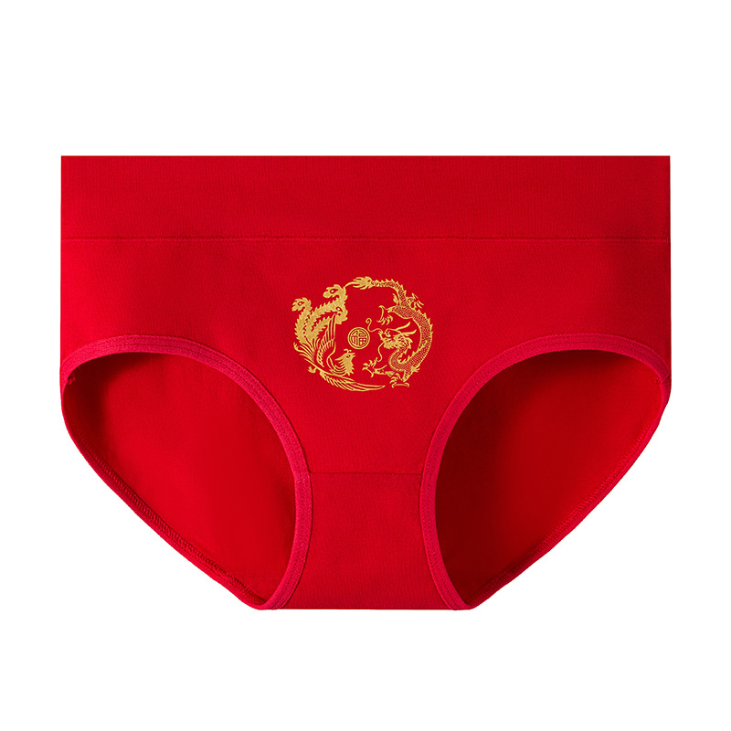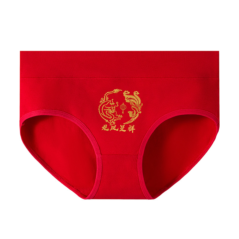 龙年本命年纯棉内裤女士大红色新娘结婚喜庆礼物中腰包臀三角裤头