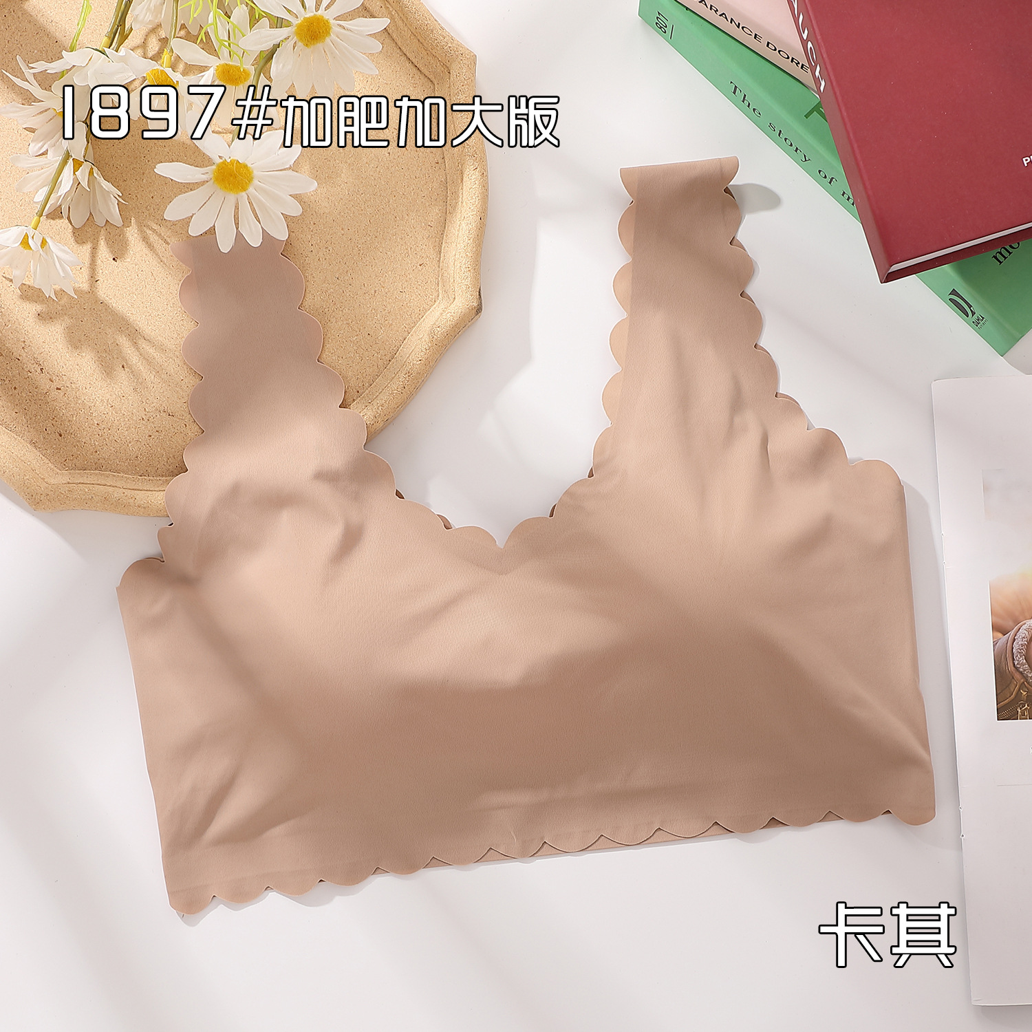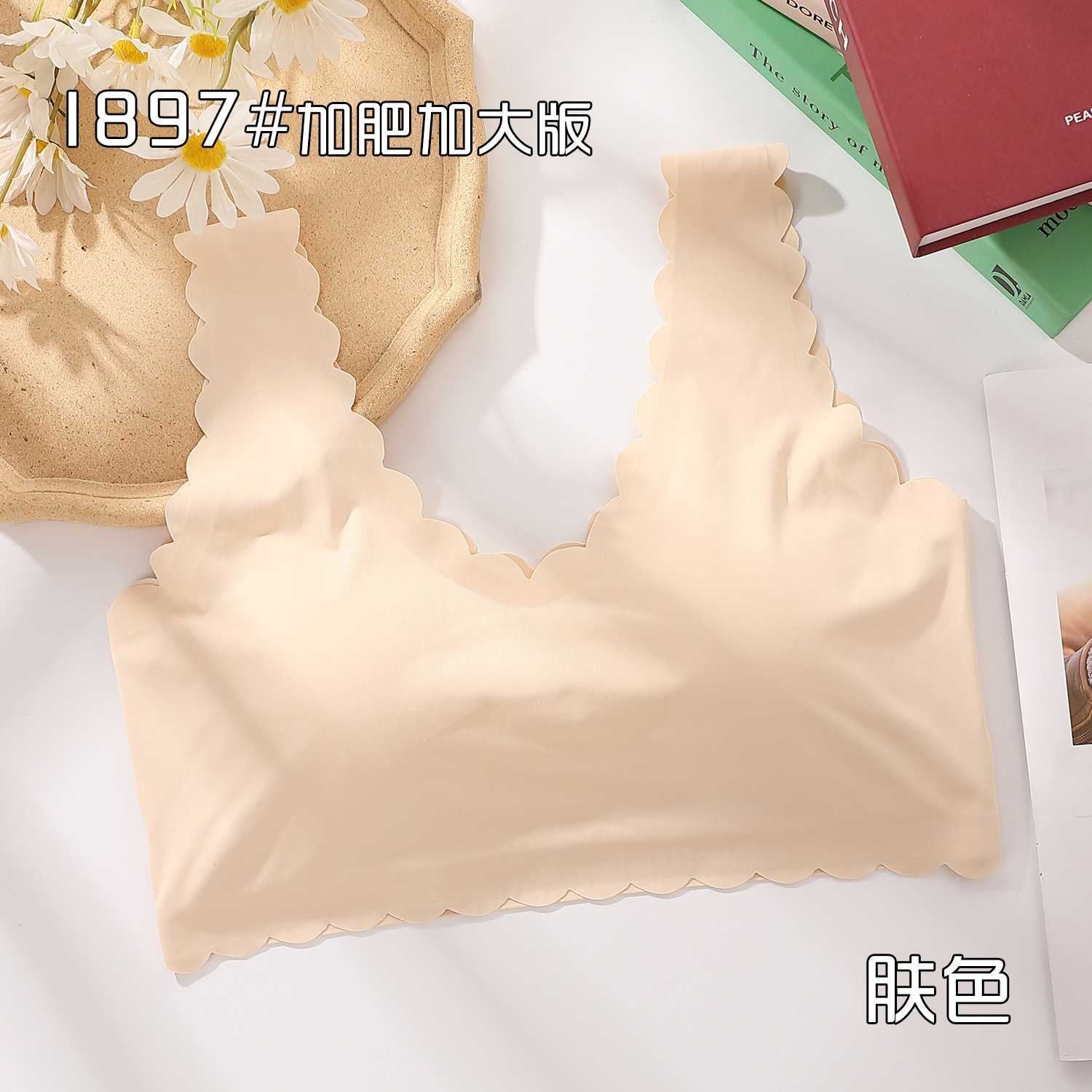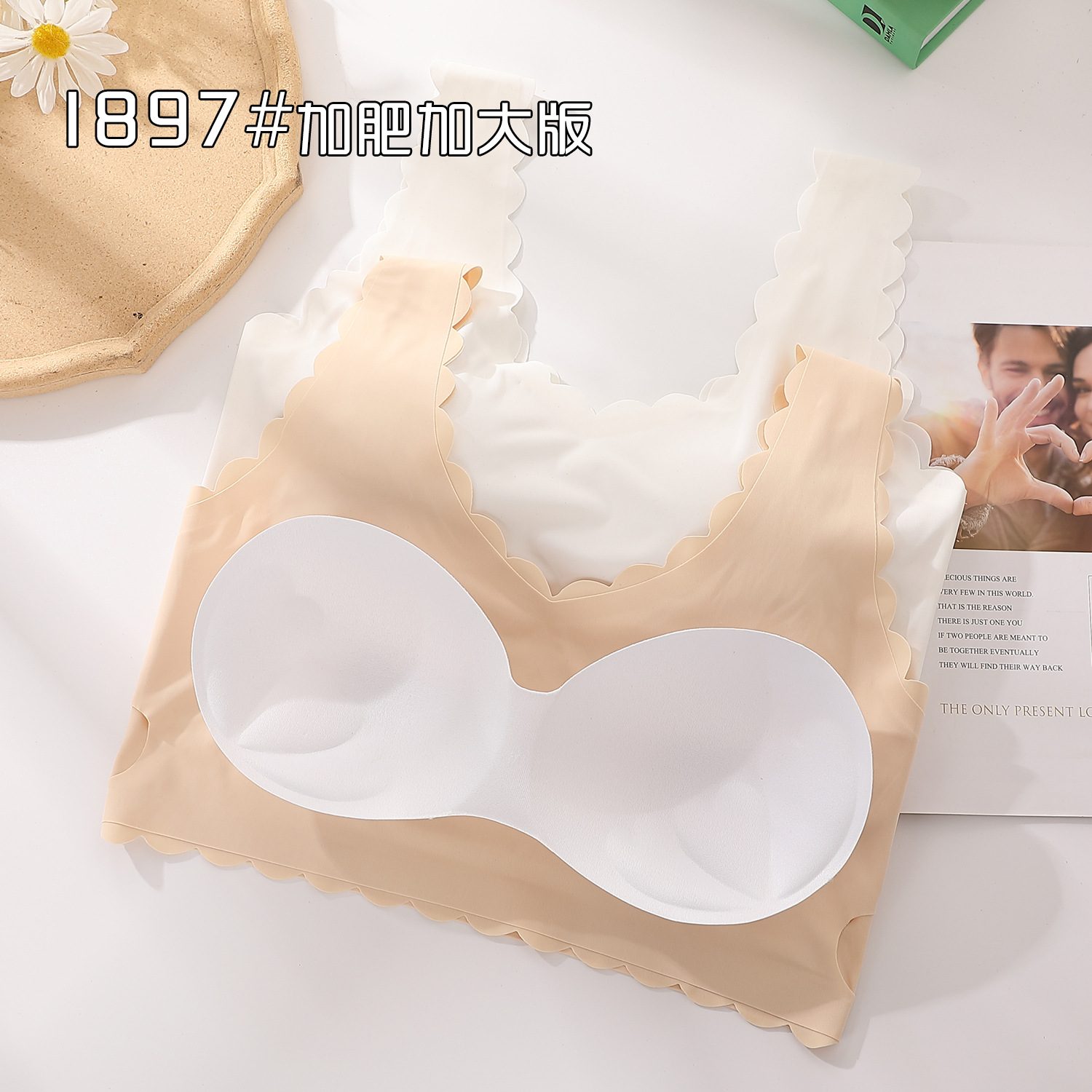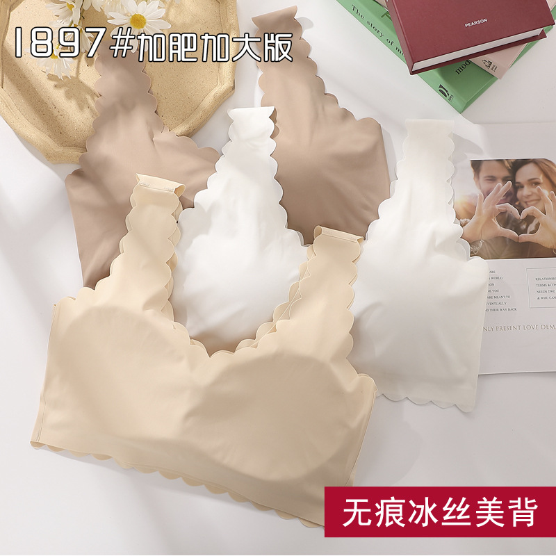 加肥加大码冰丝美背无痕背心女胖mm中老年内衣带胸垫裹胸宽肩U背