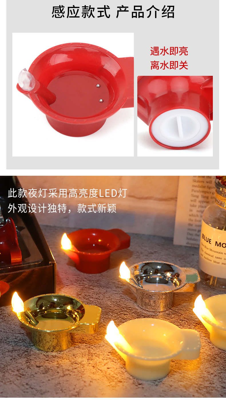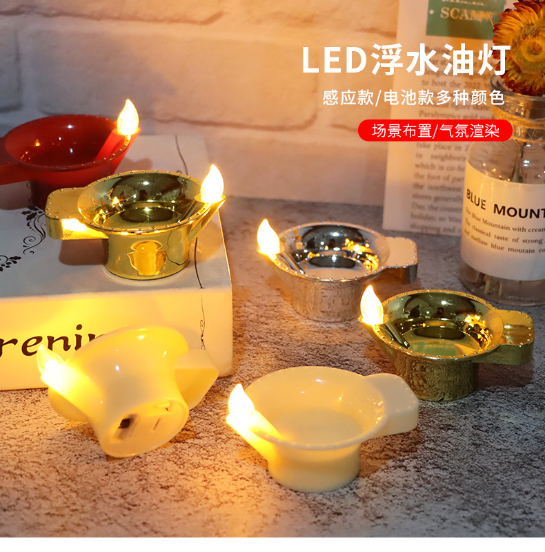 仿真LED蜡烛灯浮水油灯印度引路灯水感应排灯节防水蜡烛灯批发