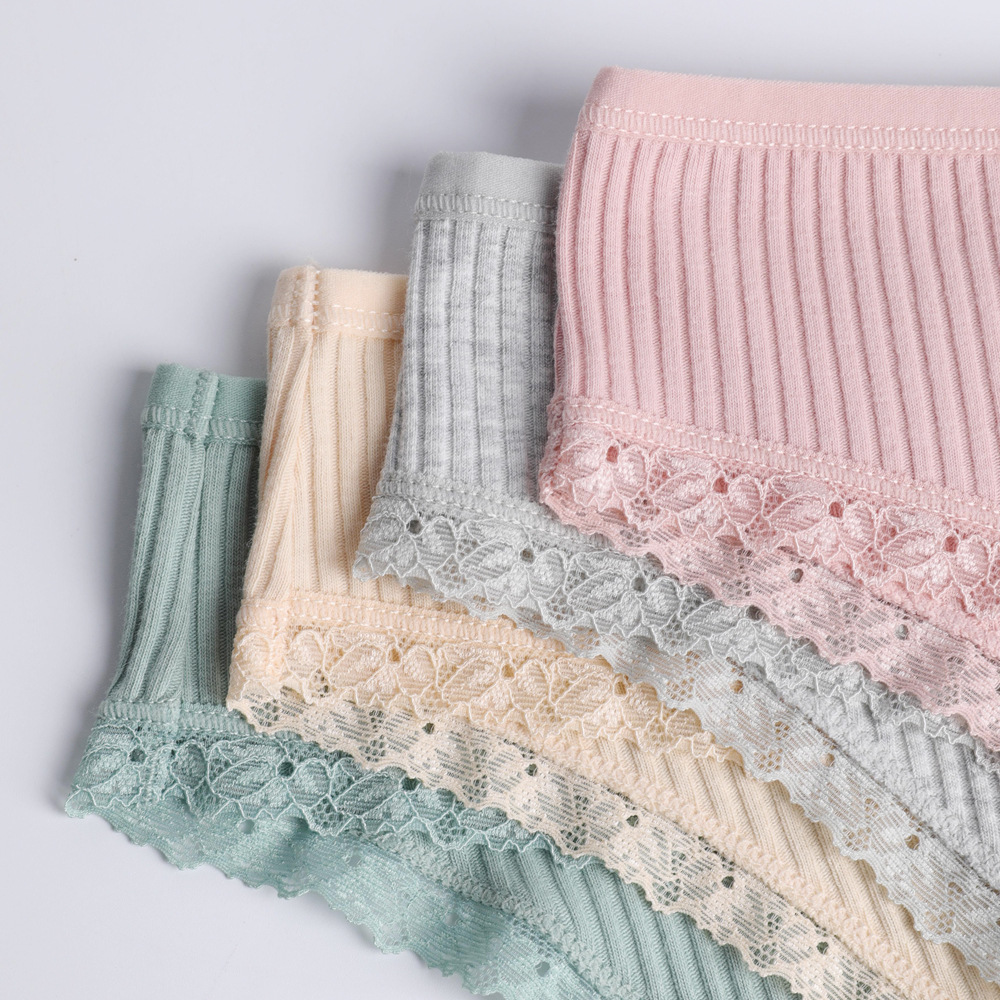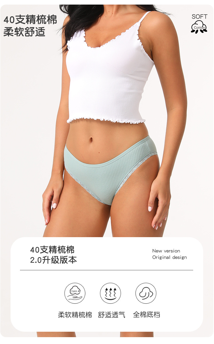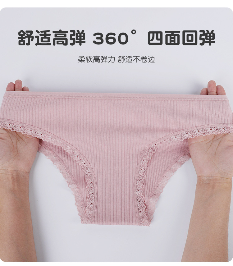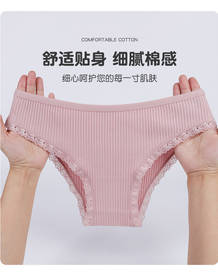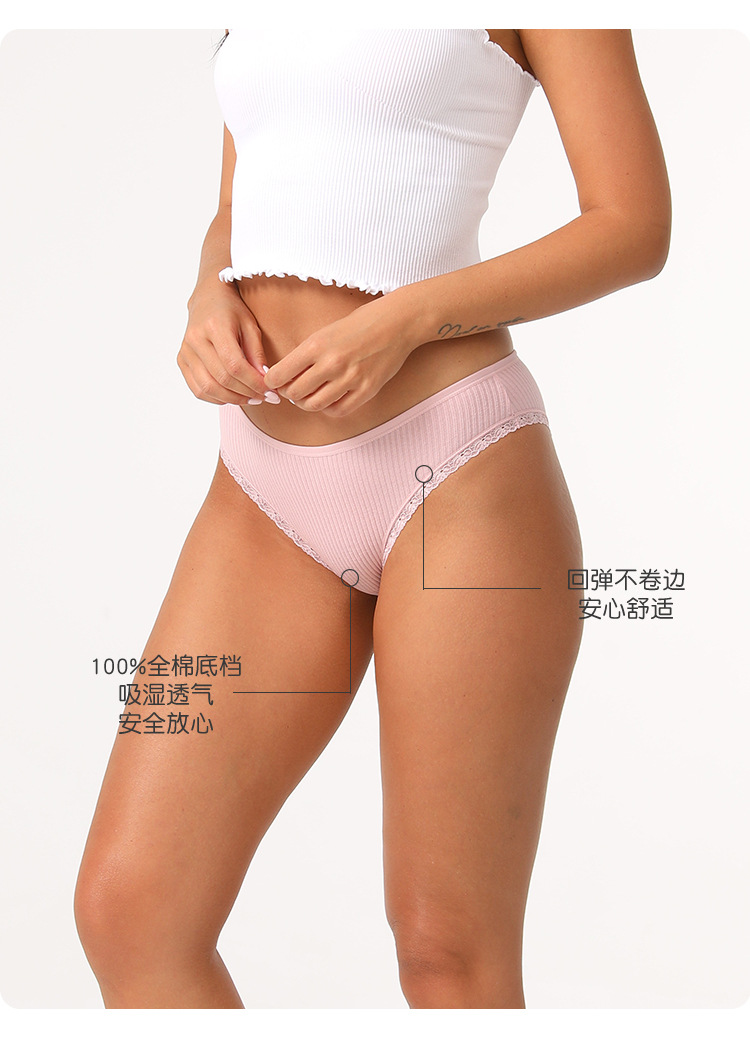 2024跨境新款纯棉女士内裤欧美低腰提臀蕾丝三角裤工厂批发