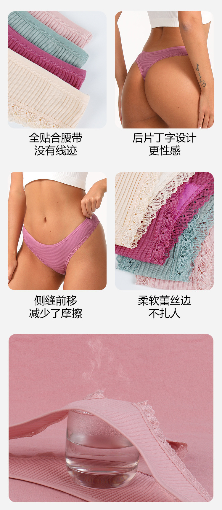 跨境透气内裤女丁字裤低腰性感三角裤性感蕾丝比基尼新品一件代发