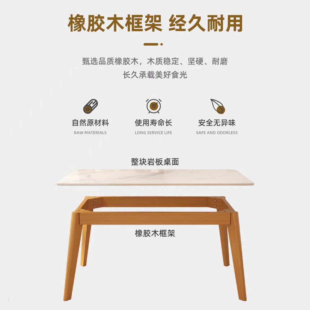 实木岩板餐桌家用小户型现代简约北欧奶油风长方形轻奢餐桌椅组合