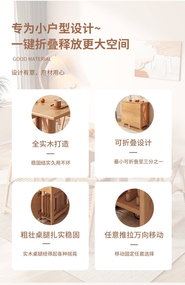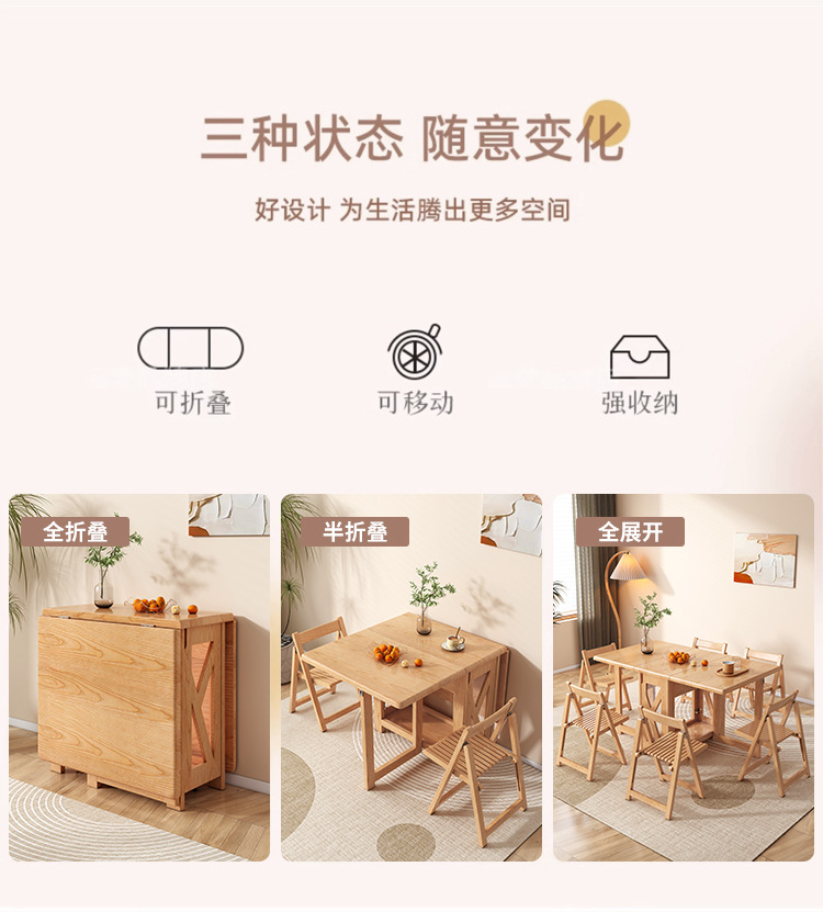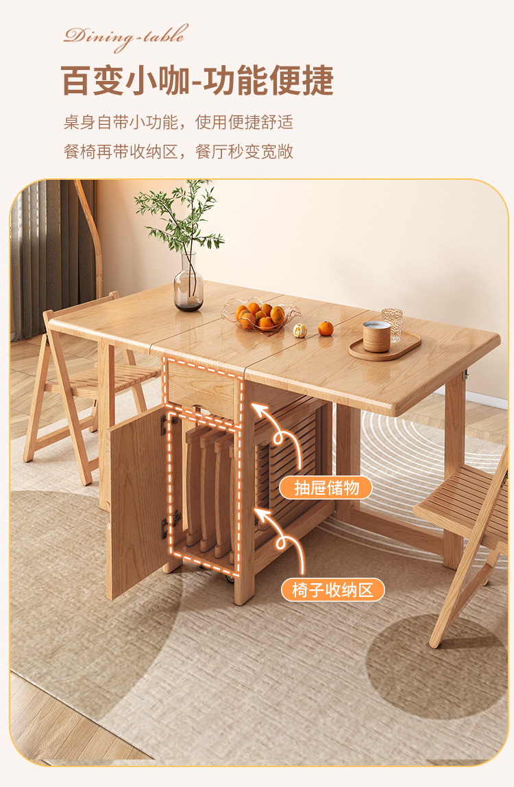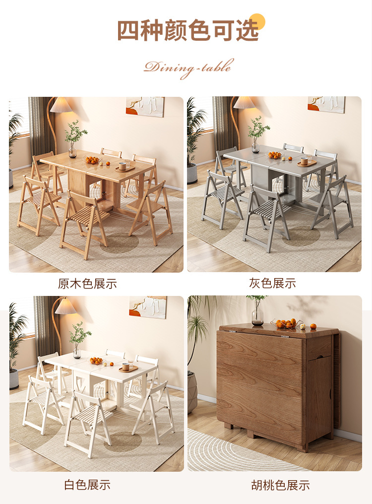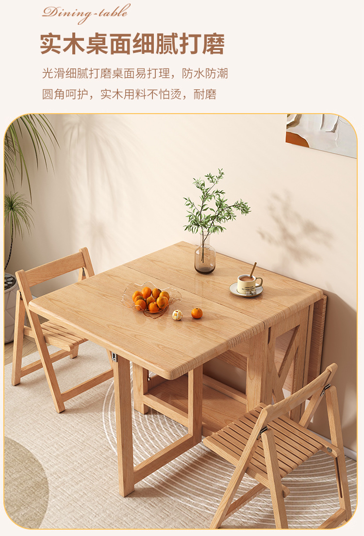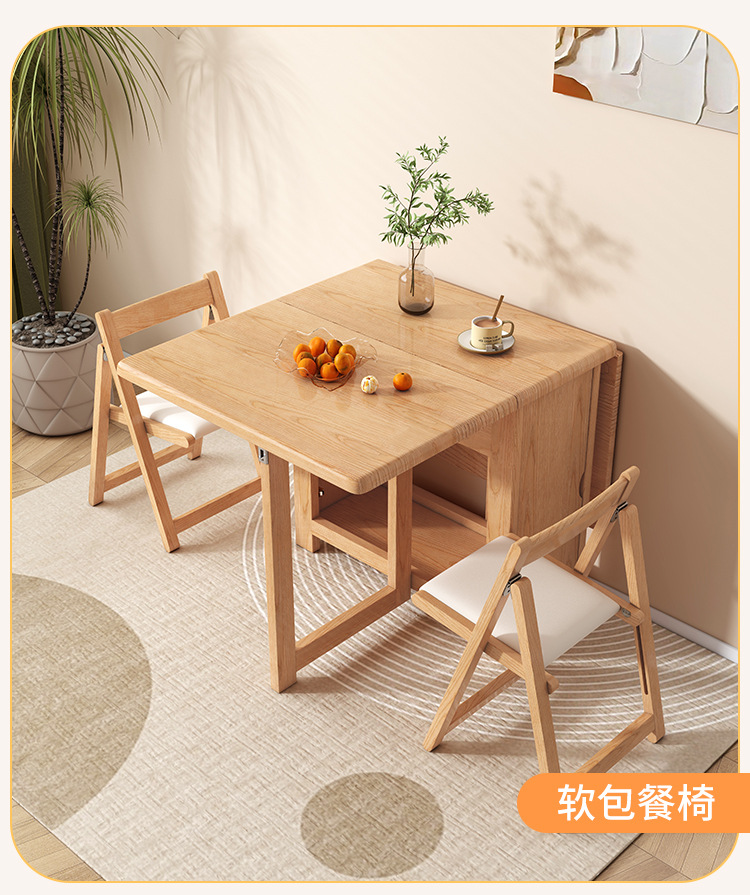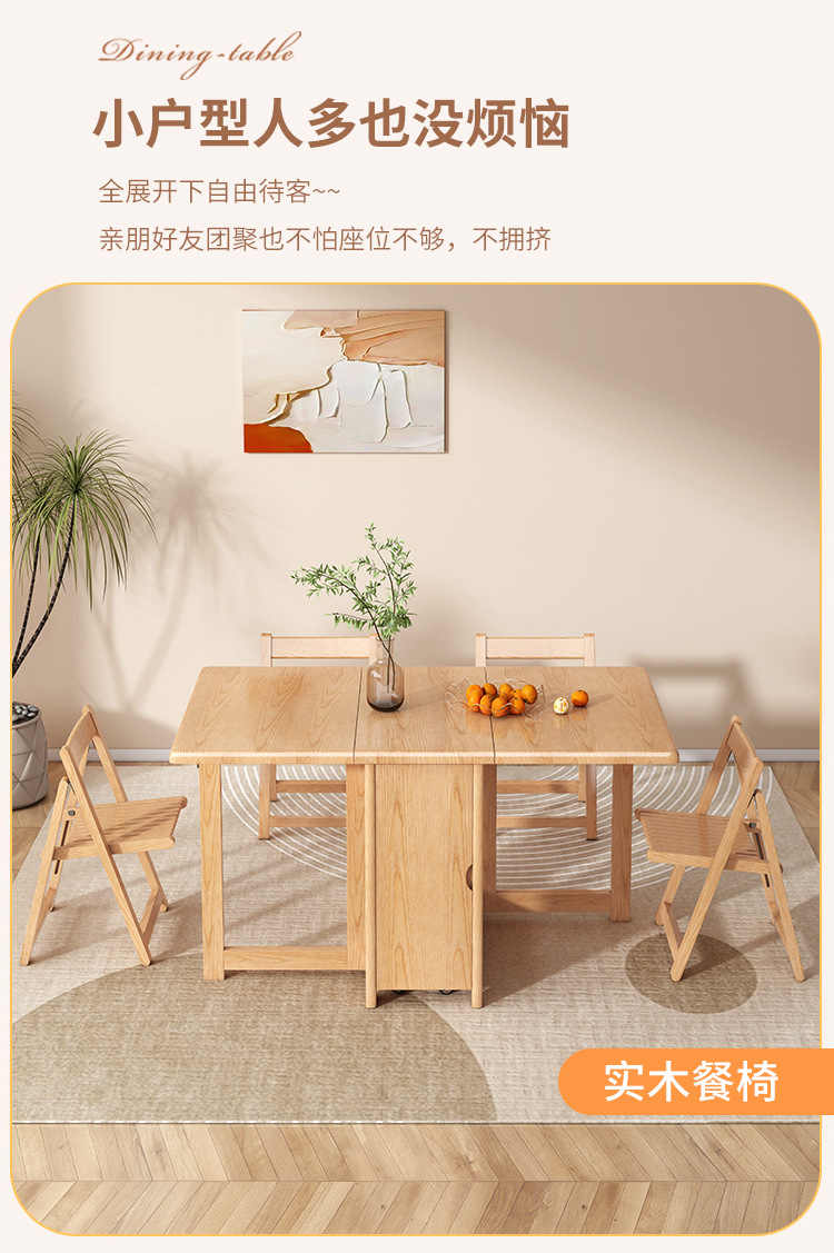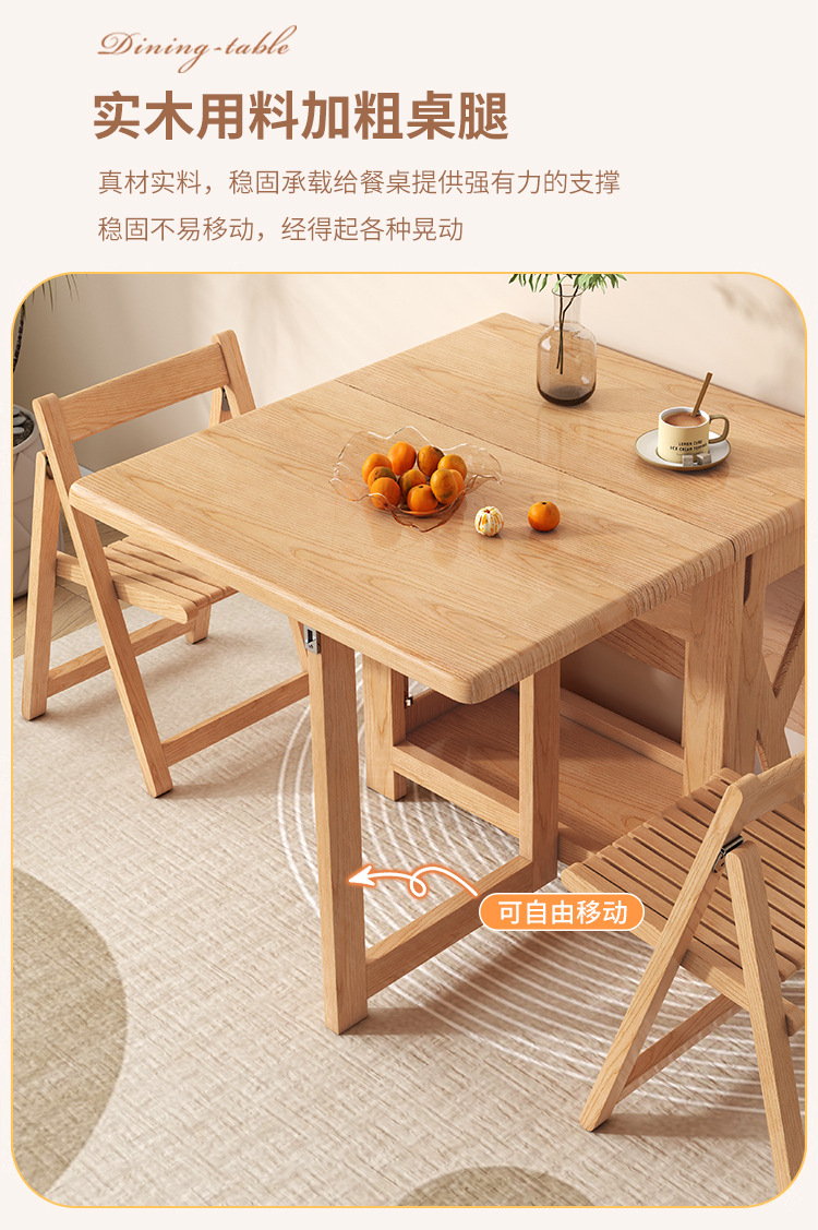 全实木餐桌小户型家用折叠饭桌一体长方形可折叠伸缩餐桌椅折叠桌