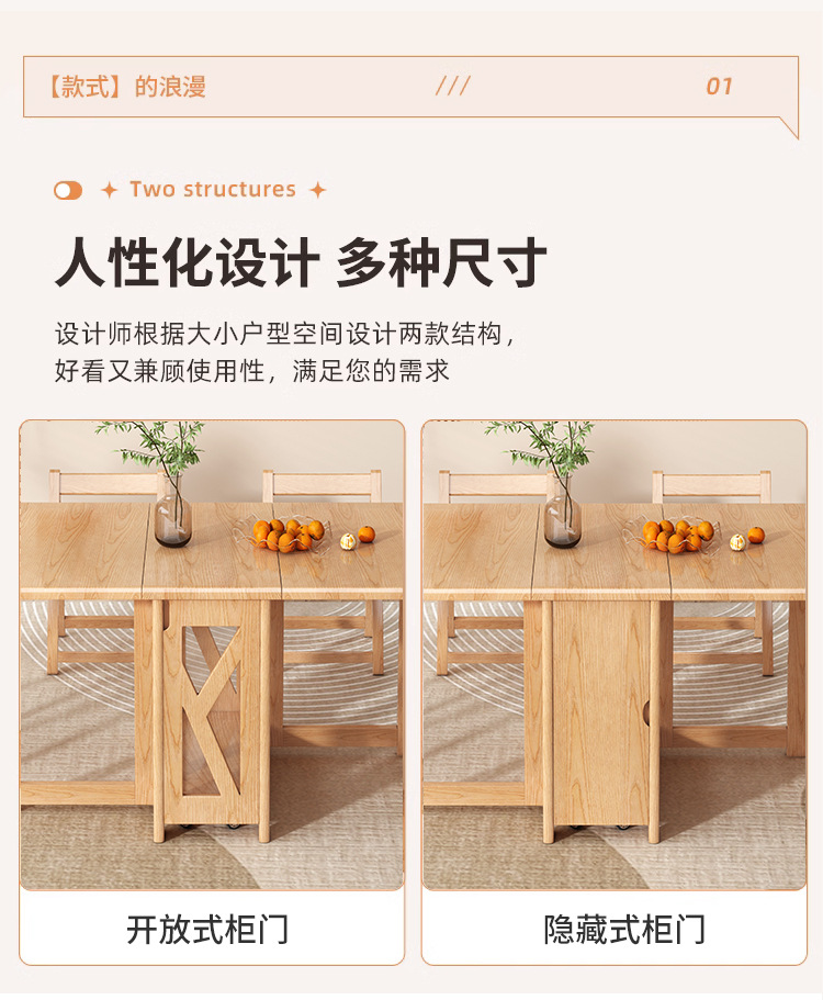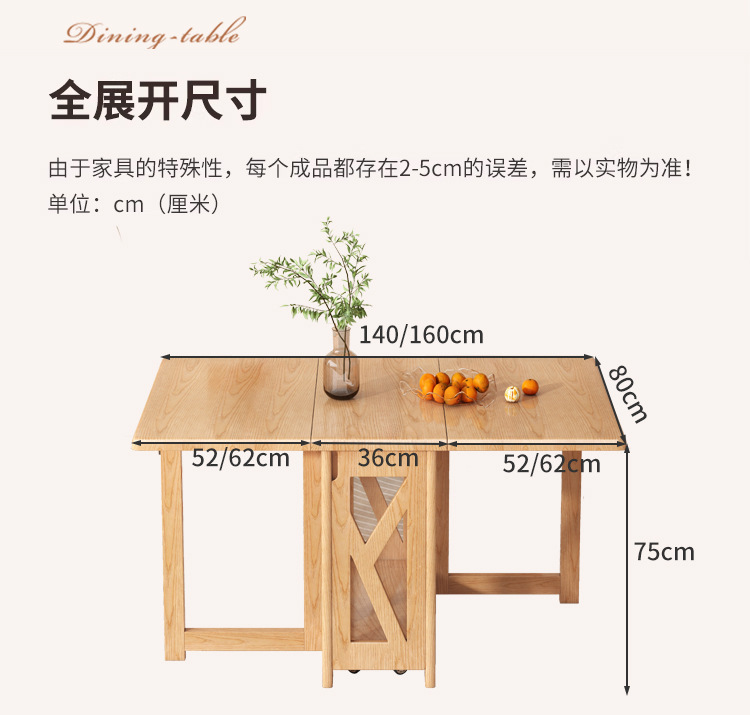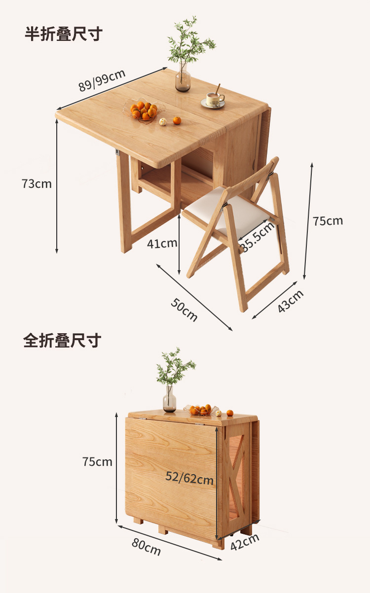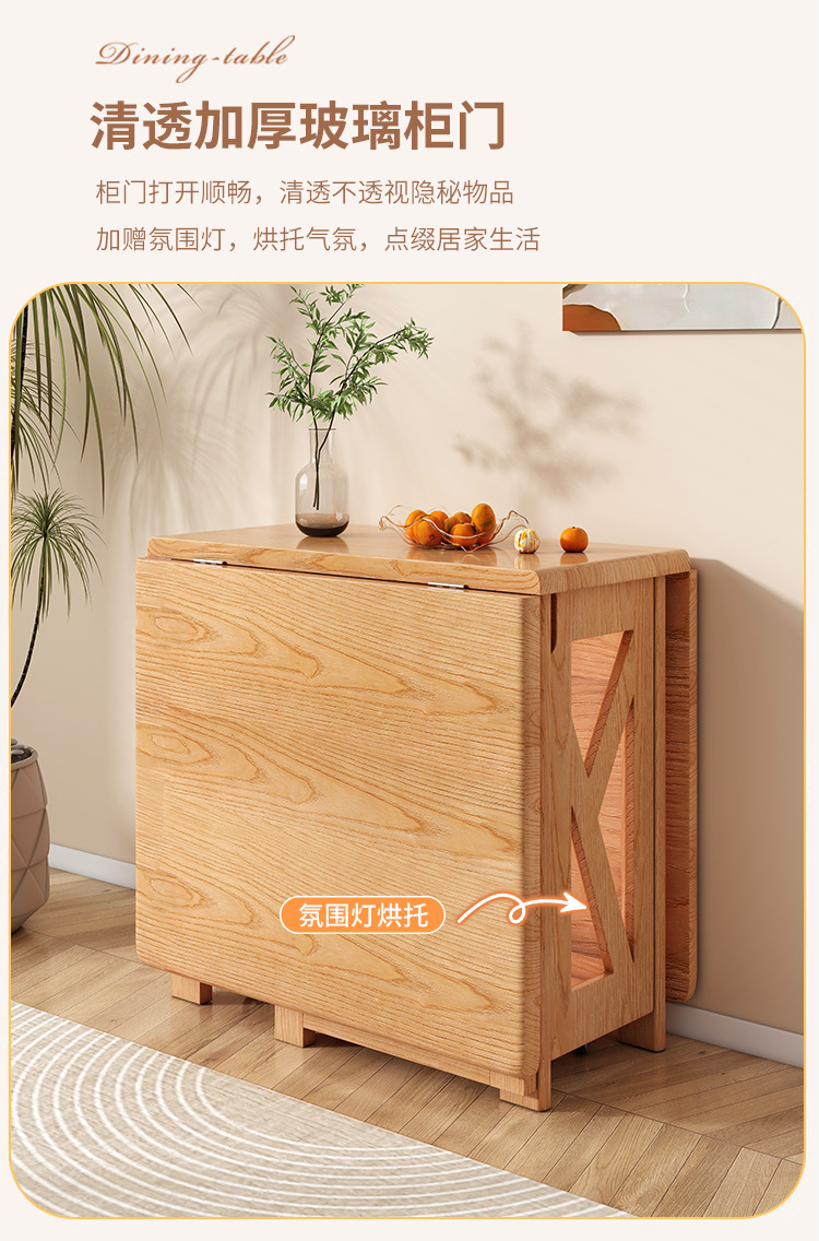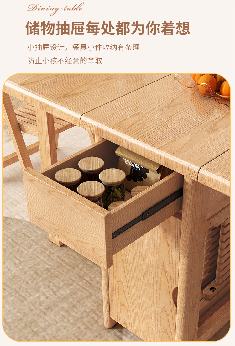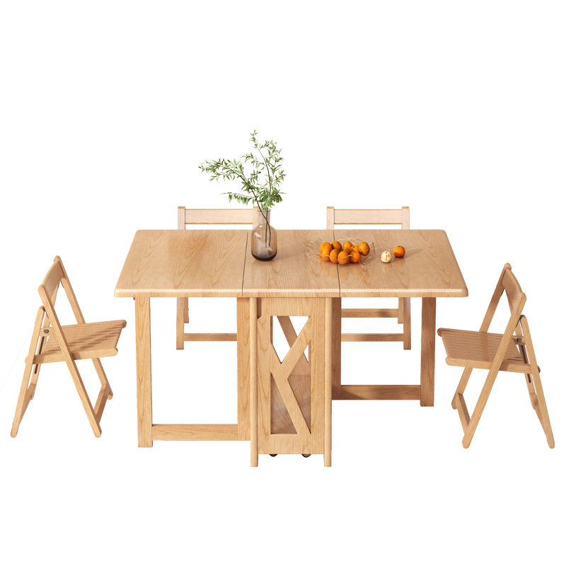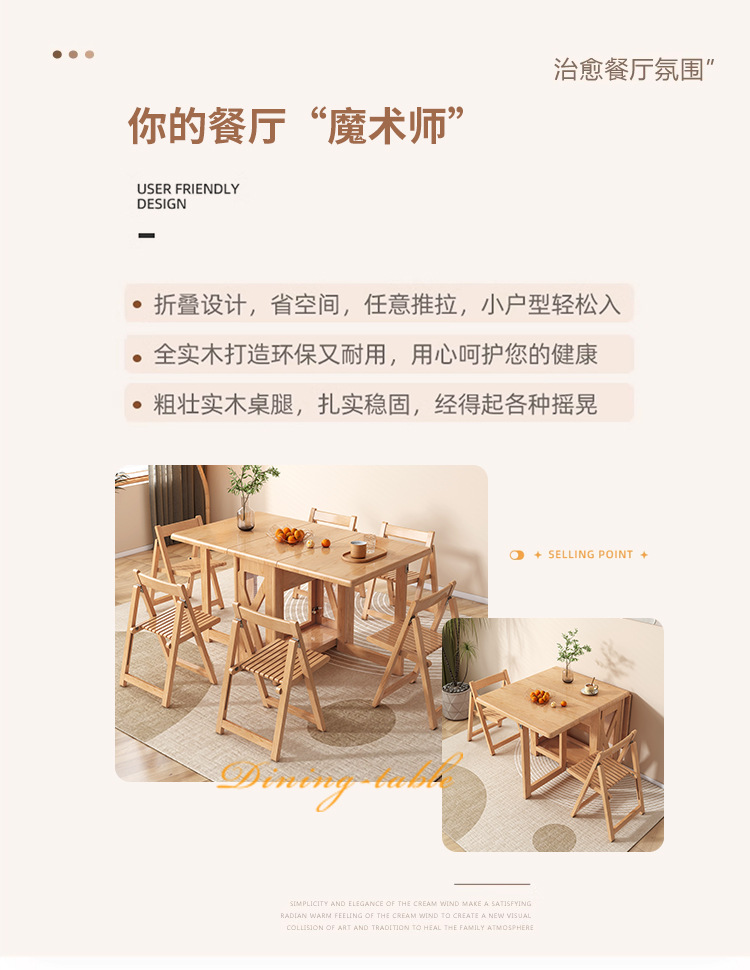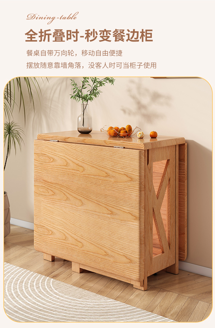 全实木餐桌小户型家用折叠饭桌一体长方形可折叠伸缩餐桌椅折叠桌
