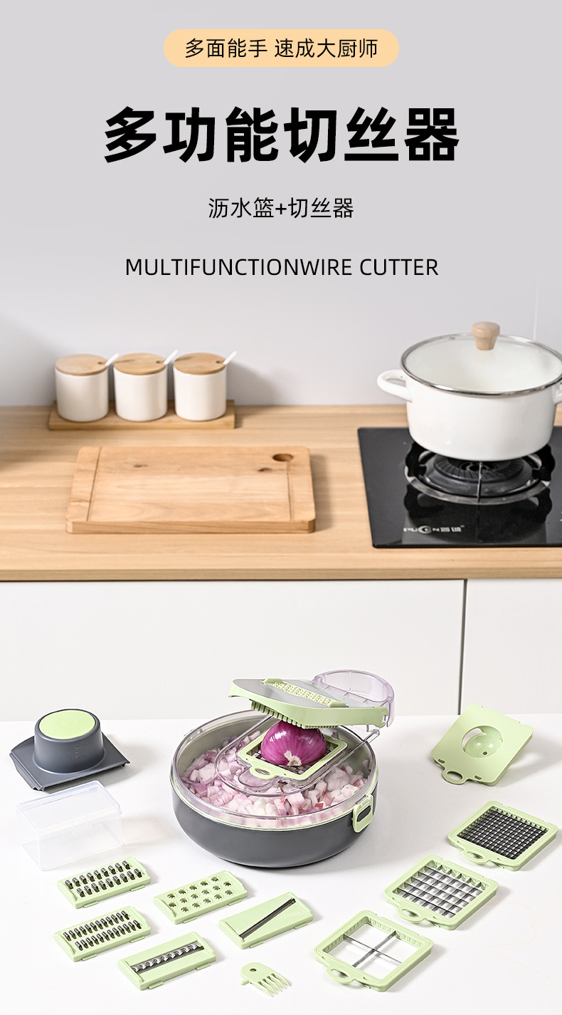 多功能沥水切菜神器家用厨房擦丝刨丝器切丁切花切菜器