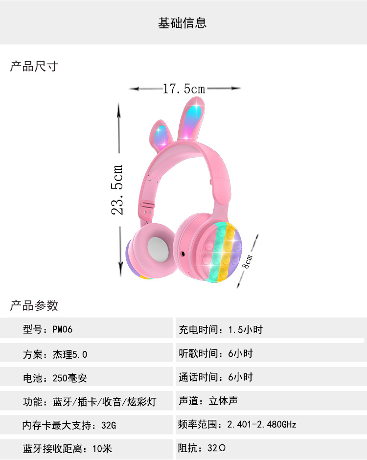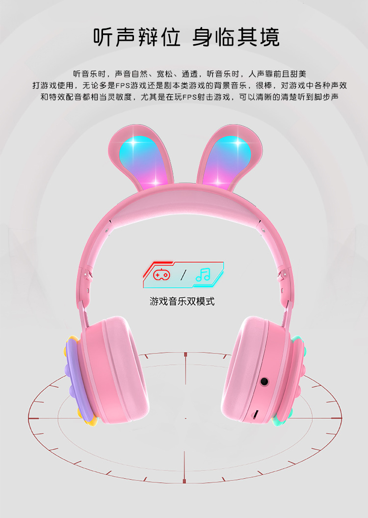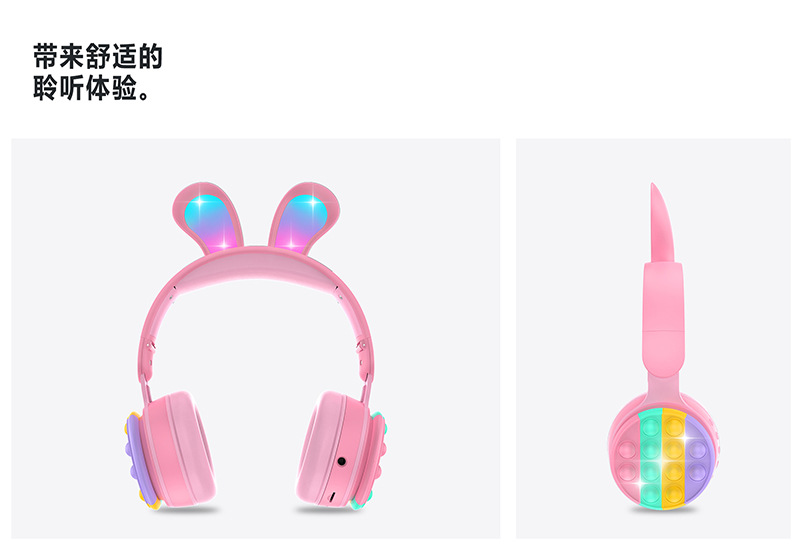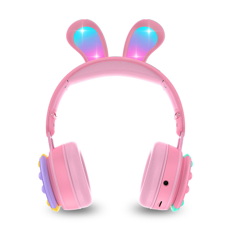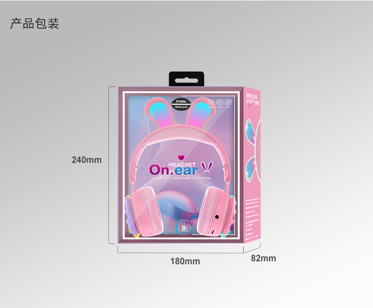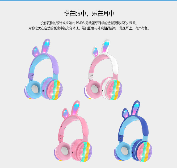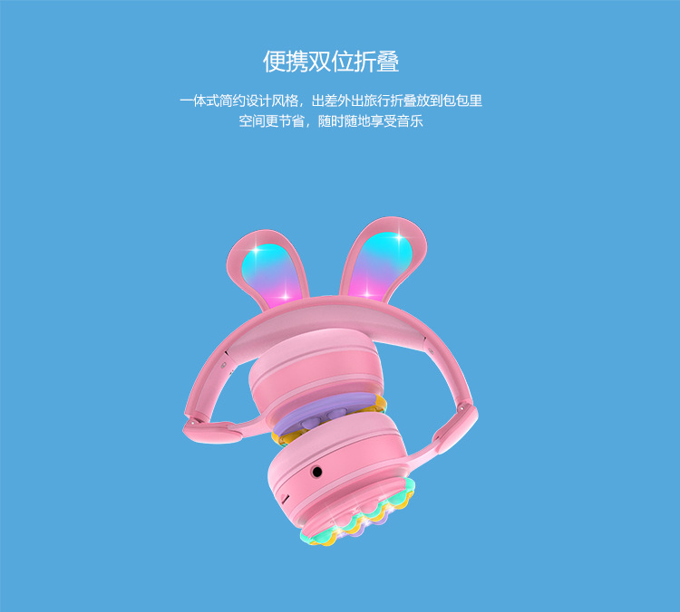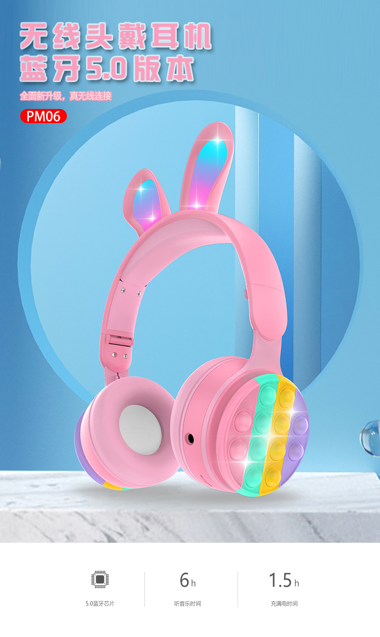 PM06新款无线发光兔耳朵头戴式蓝牙耳机带麦音乐可爱儿童头戴耳机