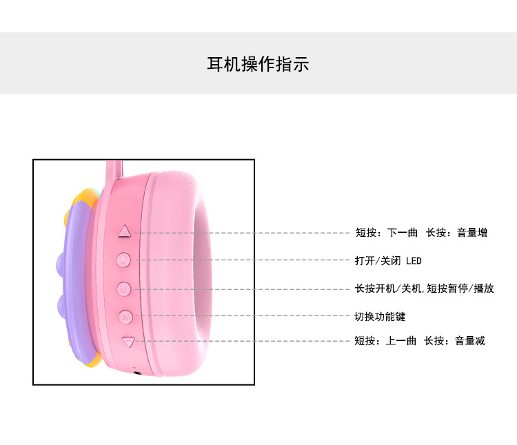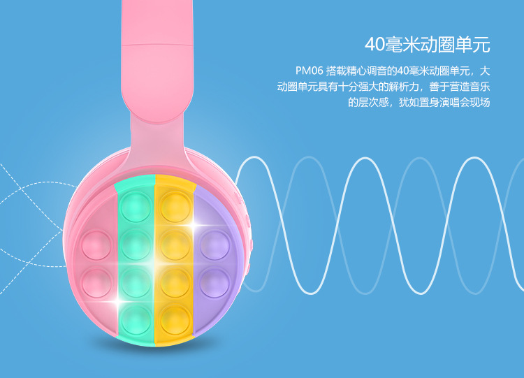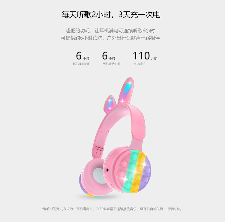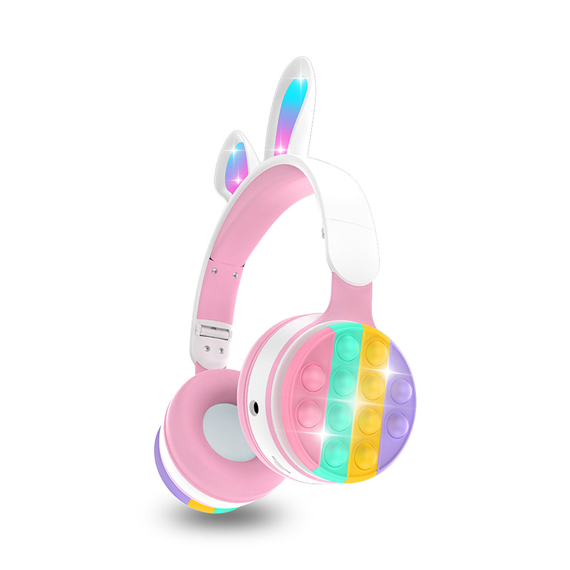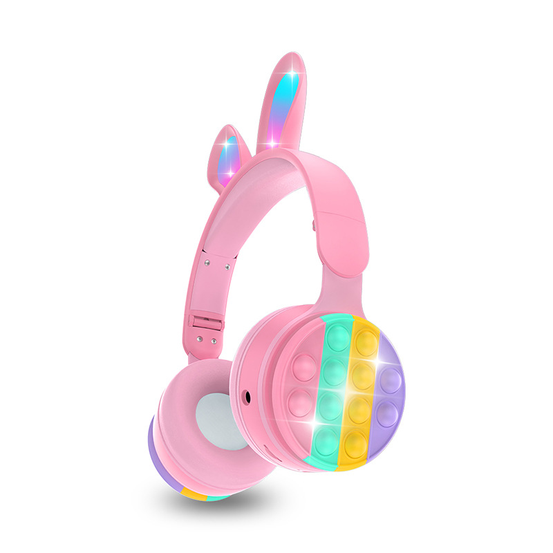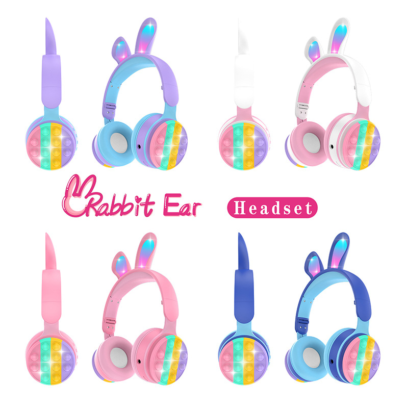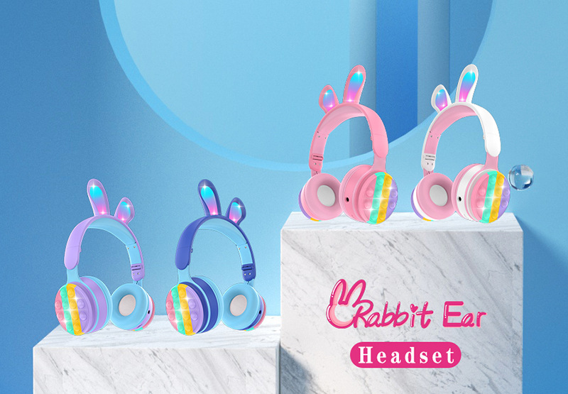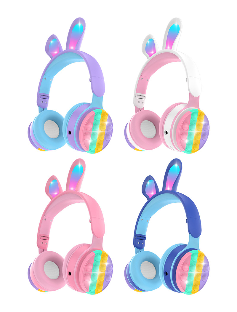 PM06新款无线发光兔耳朵头戴式蓝牙耳机带麦音乐可爱儿童头戴耳机