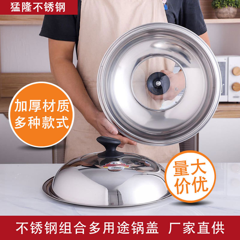 加高圆形不锈钢组合盖可立柄锅盖批发 家用钢化玻璃盖子可视锅盖