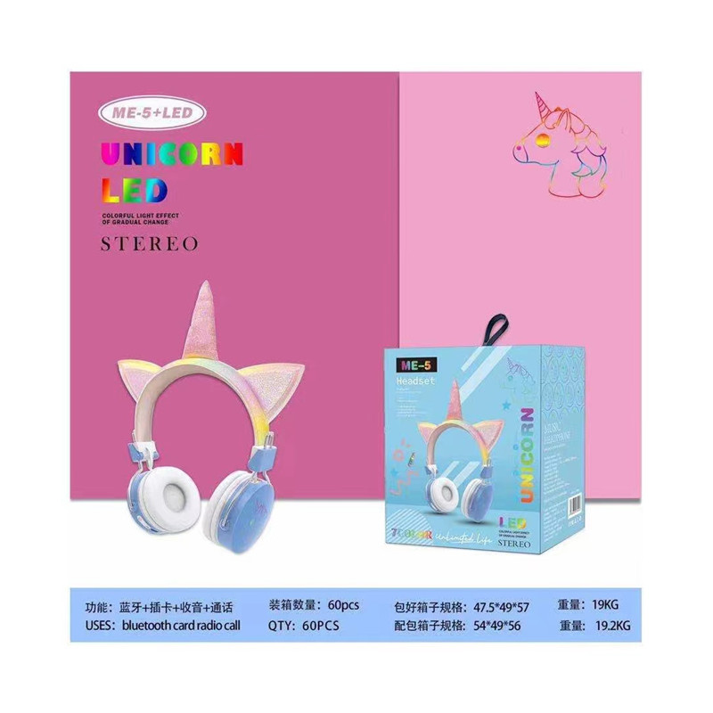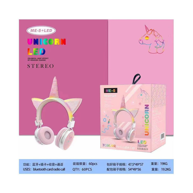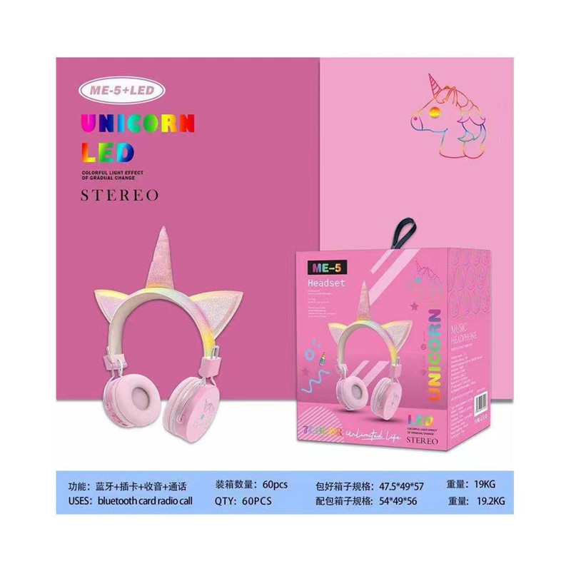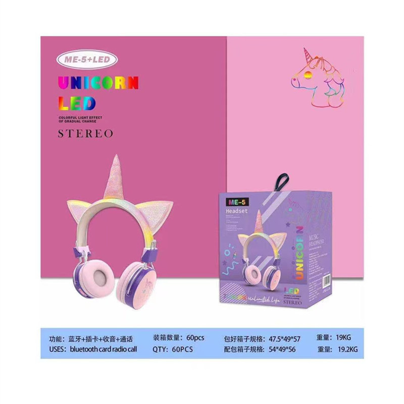 ME-5 厂家供应现货头戴式卡通独角兽蓝牙耳机 电商卡通儿童耳机