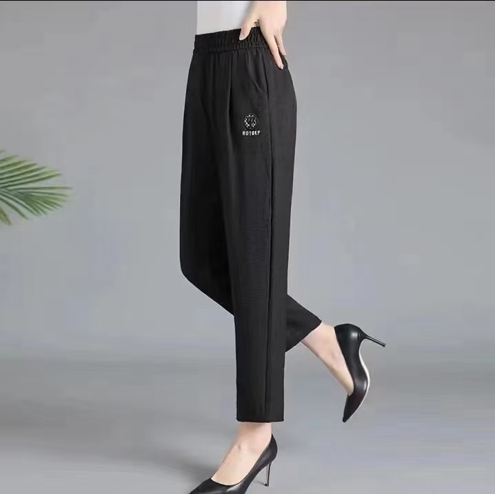 2024夏季妈妈裤子薄款宽松九分裤高腰中老年人女裤休闲松紧直筒裤