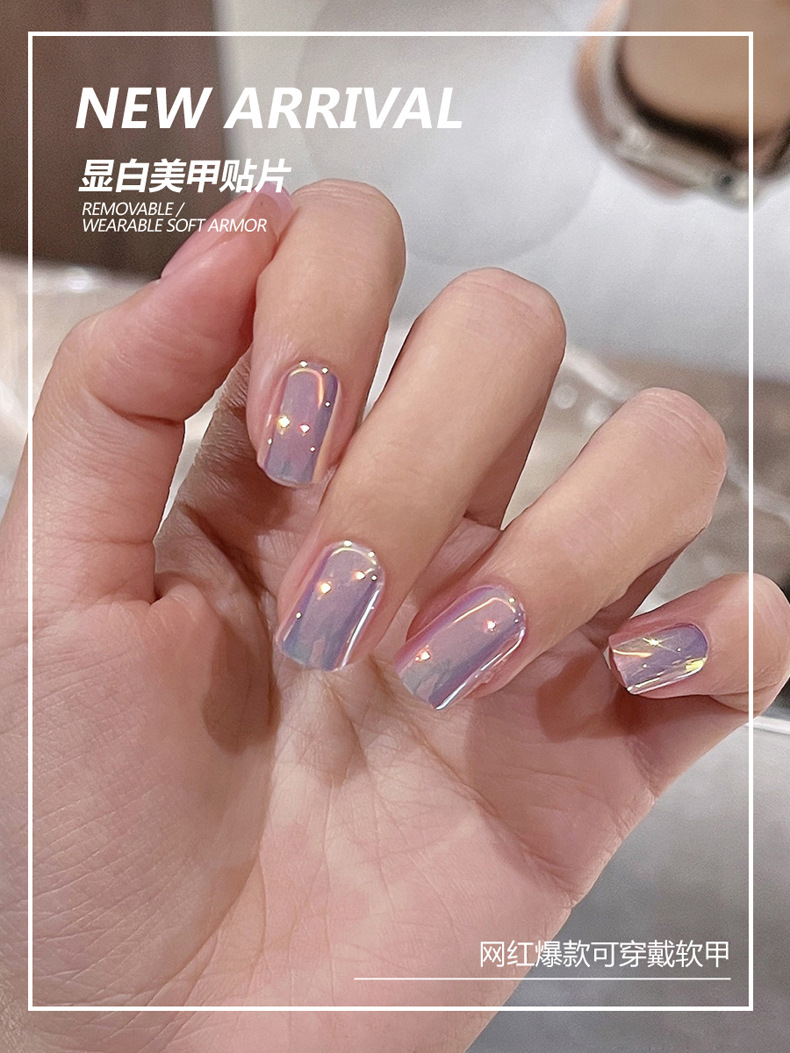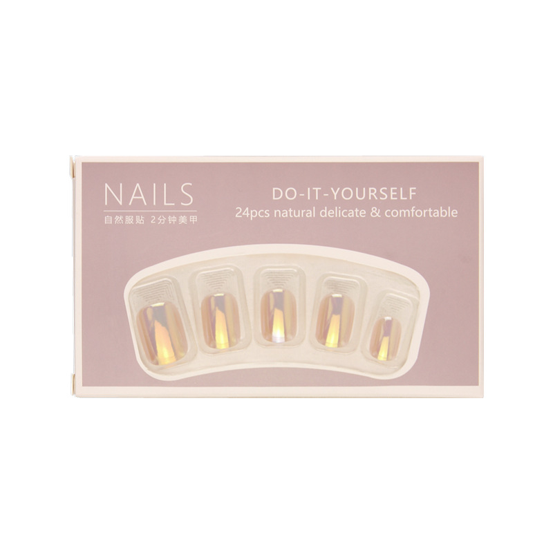 新款穿戴甲ins风短款纯色显白简约美甲甲片批发紫金闪光指甲贴片