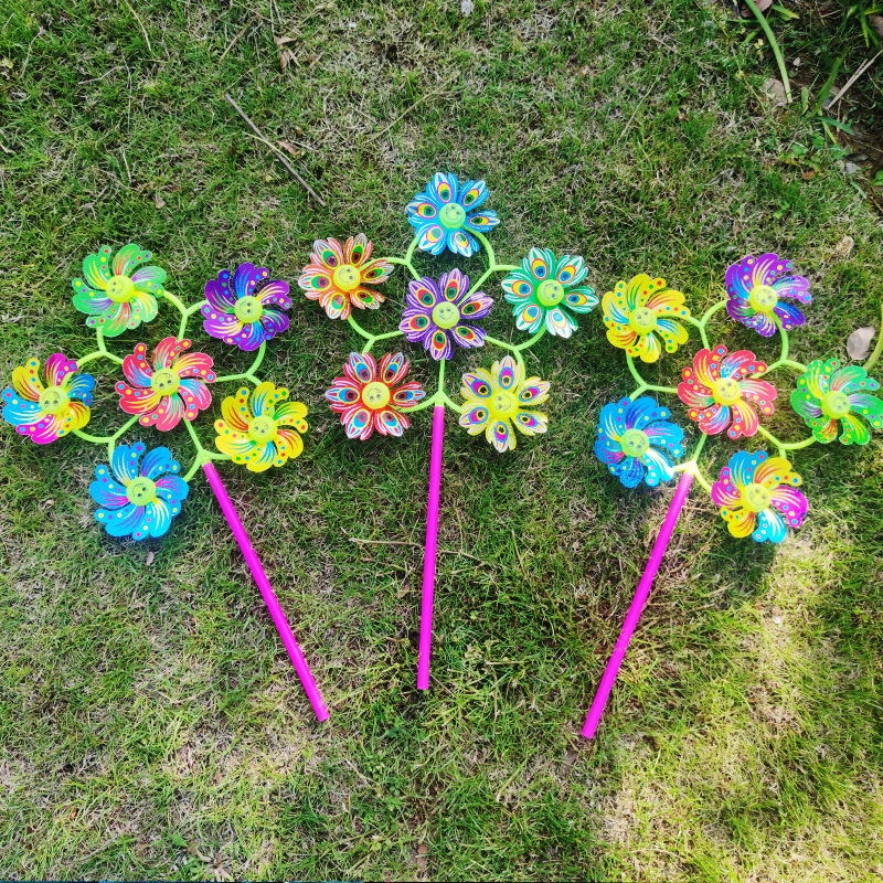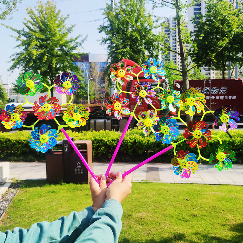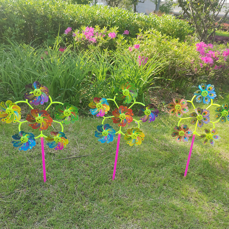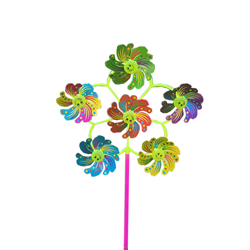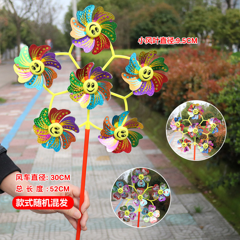 儿童六轮亮片笑脸风车镭射炫彩风车玩具户外装饰地摊货源批发