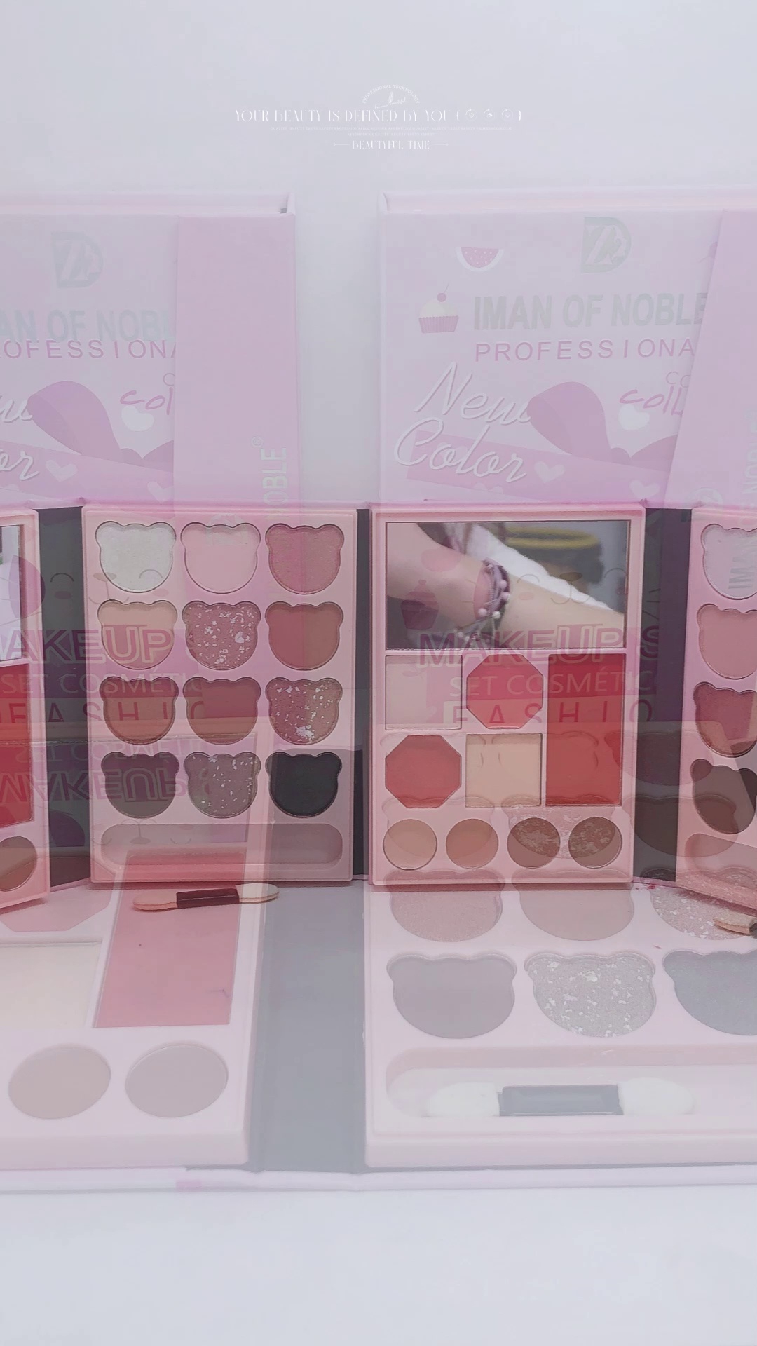IMAN OFNOBLE新款口红腮红眼影眉粉高光五合一套盒质地软糯粉色系