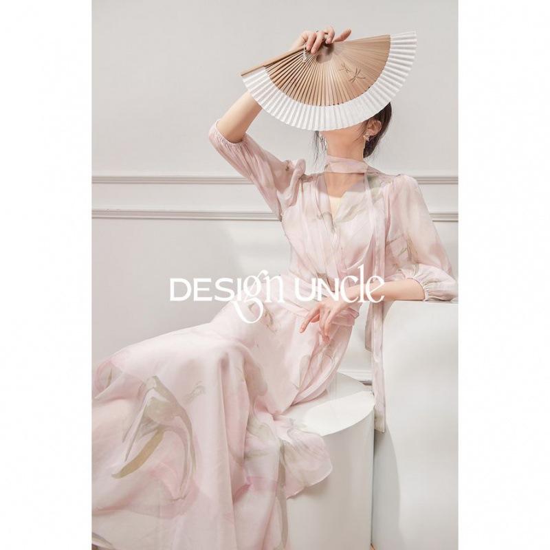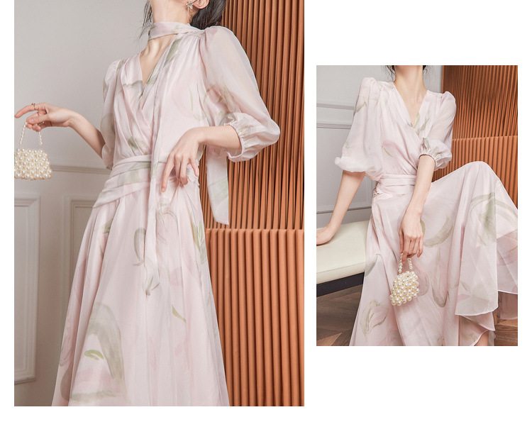 欧货洋装2024夏天新款女质感高级感法式温柔风粉色仙女裙连衣裙女