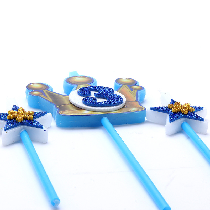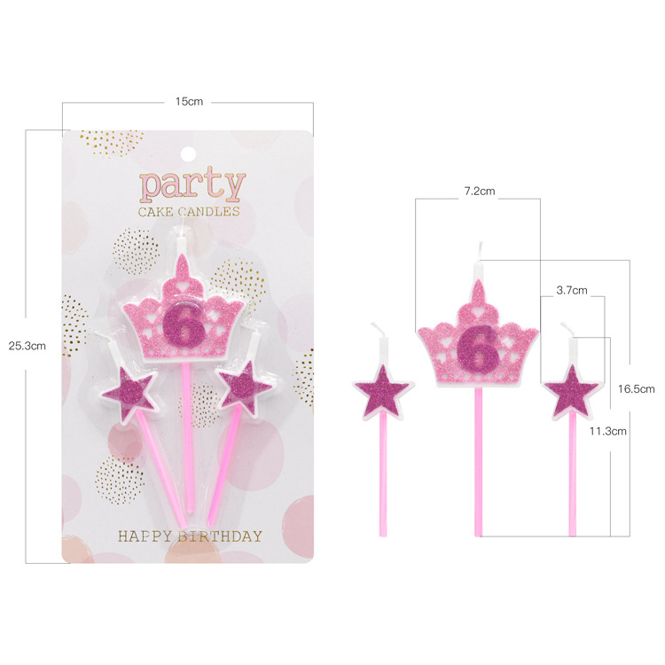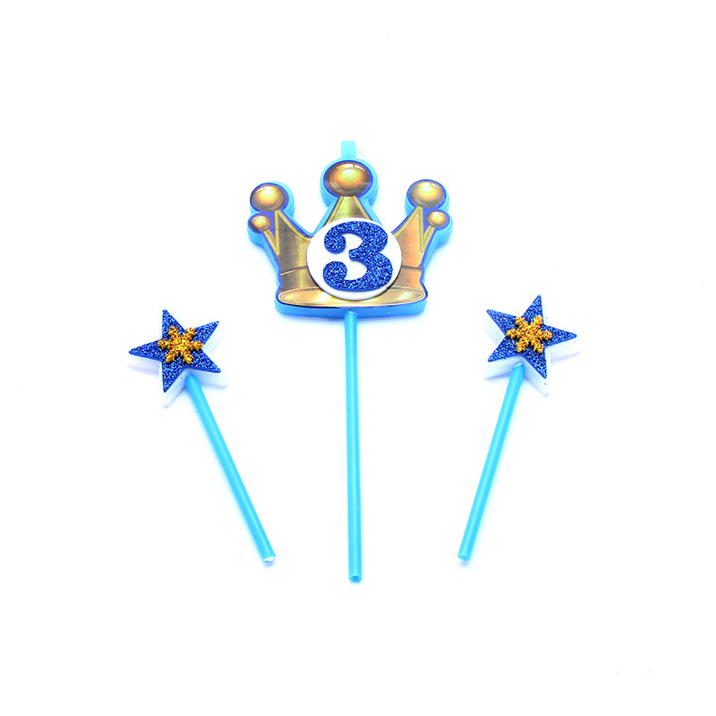 网红生日蛋糕装饰蜡烛 星星皇冠造型石蜡蜡烛 彩色无烟数字蜡烛