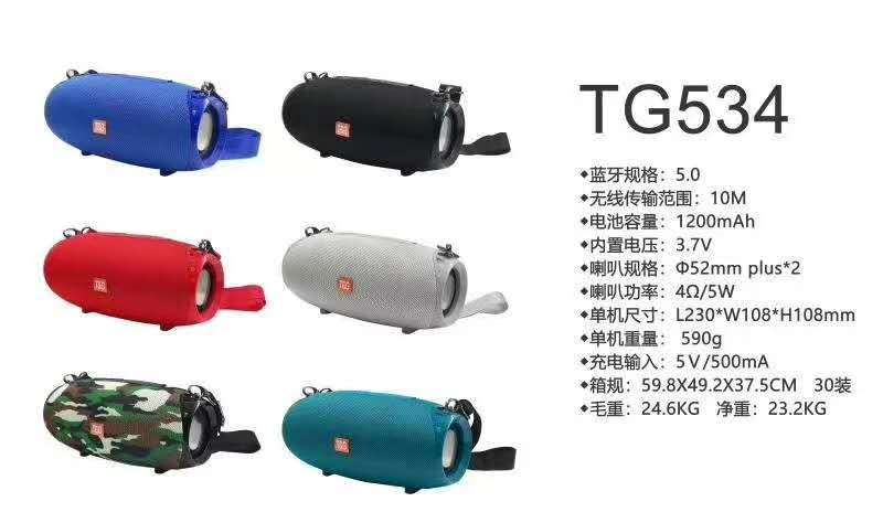 新款蓝牙音箱TG534布艺防水手提小战鼓户外便携式插卡TWS对联礼品