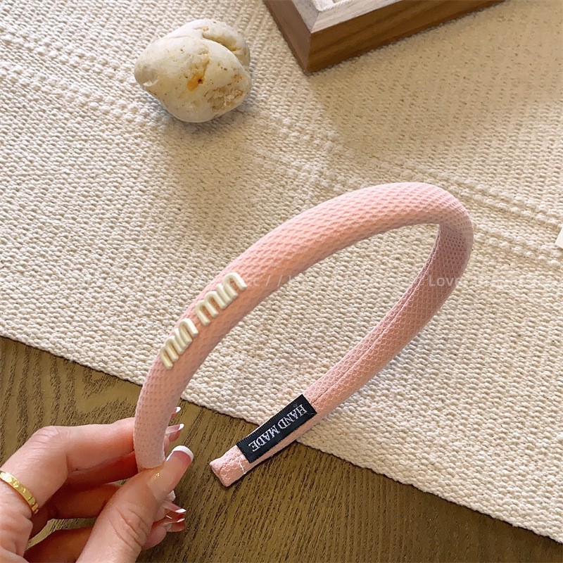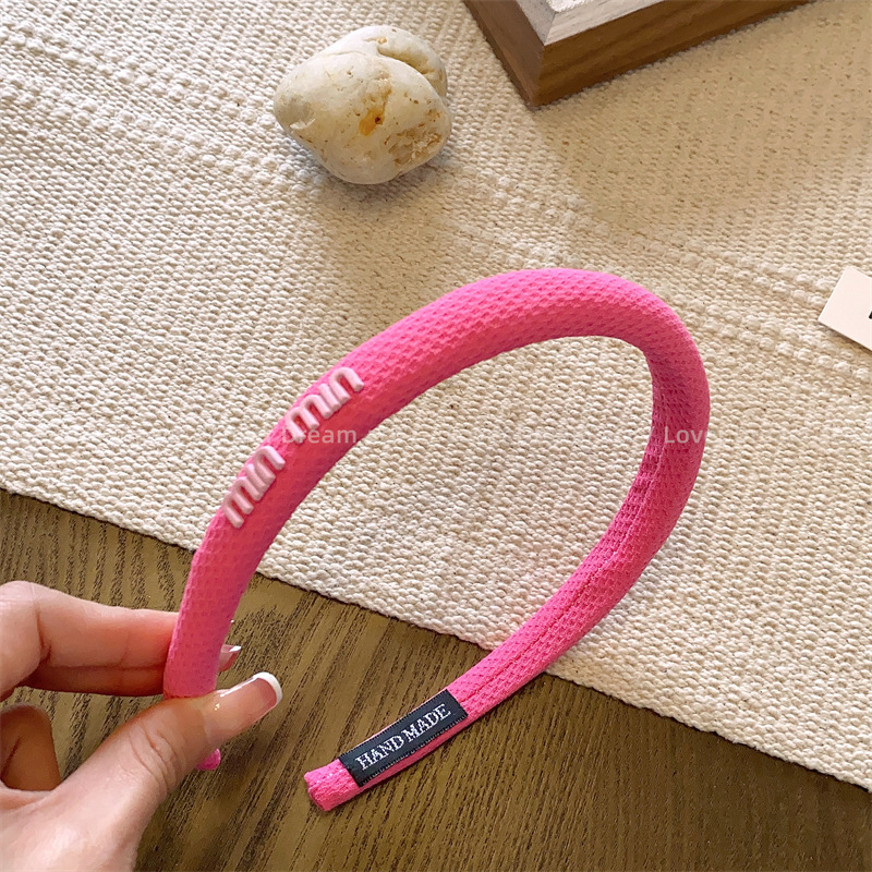 春夏韩版i风马卡龙彩色喷漆字母细版格纹布艺甜美可爱女海绵发箍