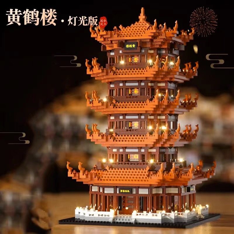 中国风积木黄鹤楼积木兼容乐高男孩子建筑拼装益智玩具女孩立体拼