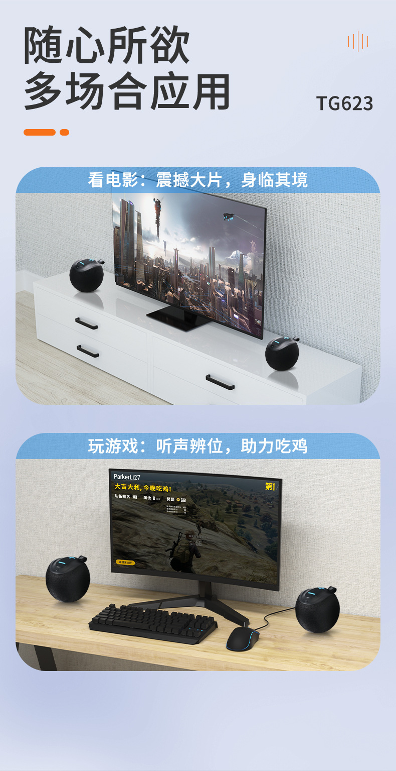 新款TG623蓝牙音箱户外便携TWS迷你大音量低音炮创意礼品mini音响