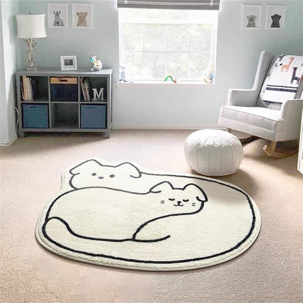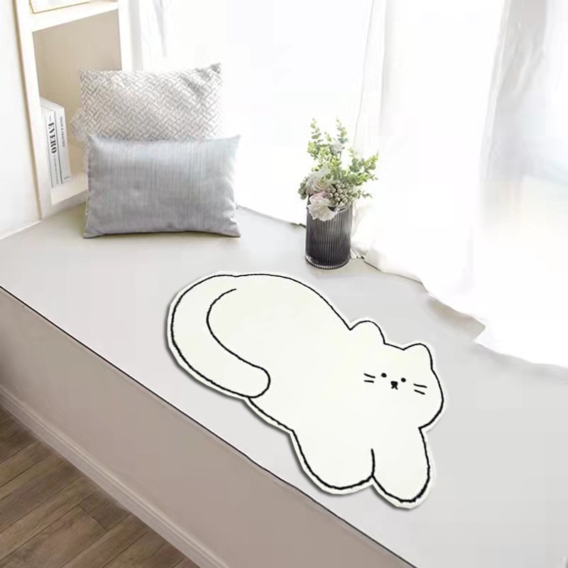 异形短毛仿羊绒地垫 不规则卡通猫咪创意地毯 ins卧室床边飘窗毯