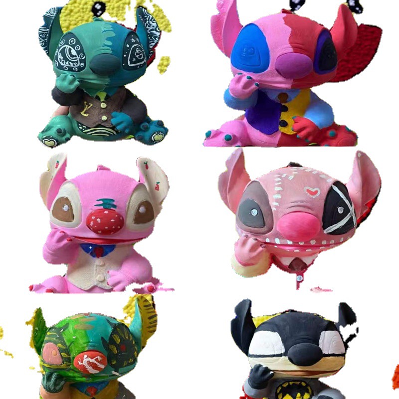 爆款搪胶娃娃非石膏史迪仔儿童彩绘暴力熊搪胶白胚熊手工涂鸦地摊