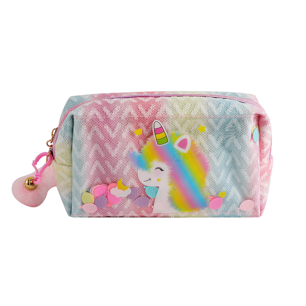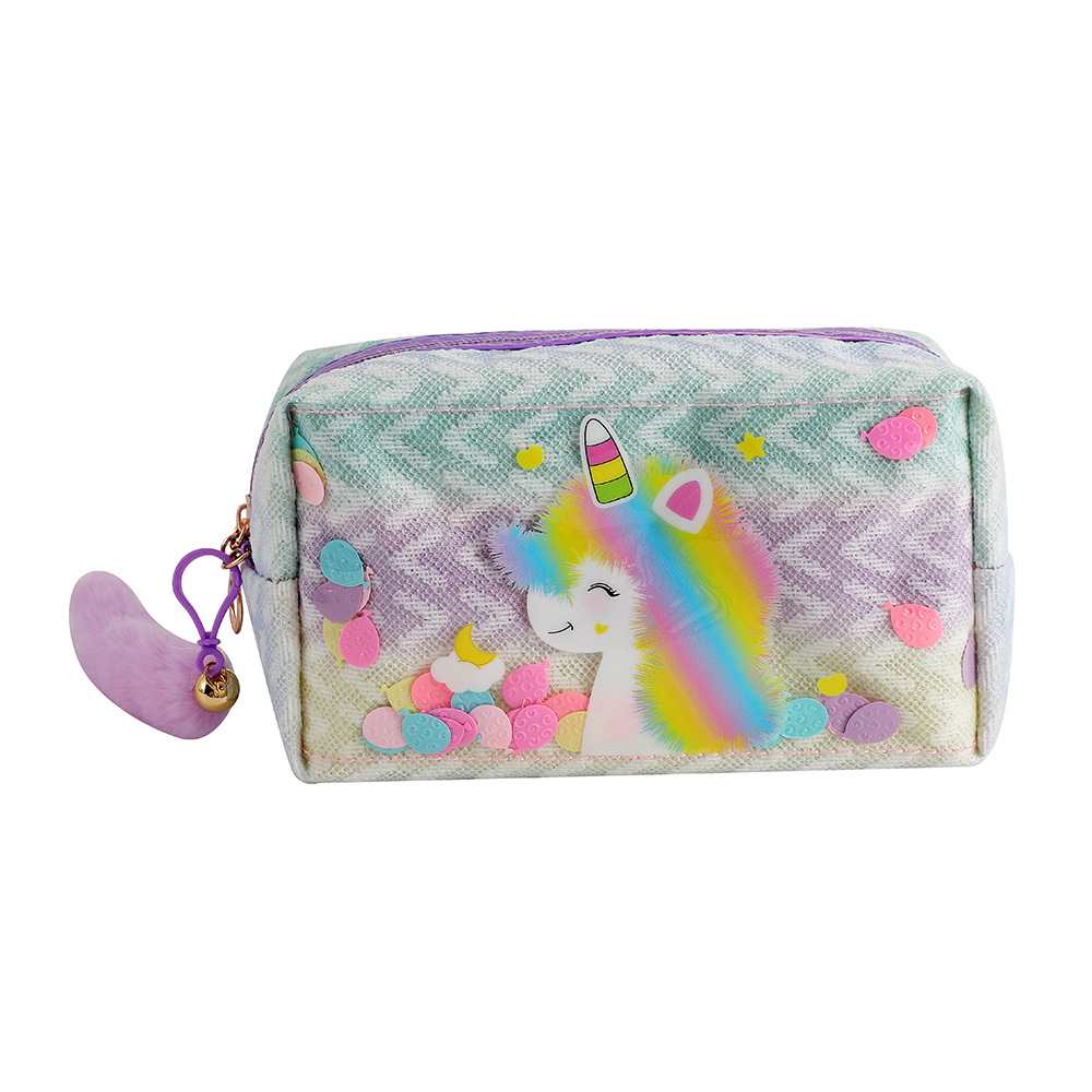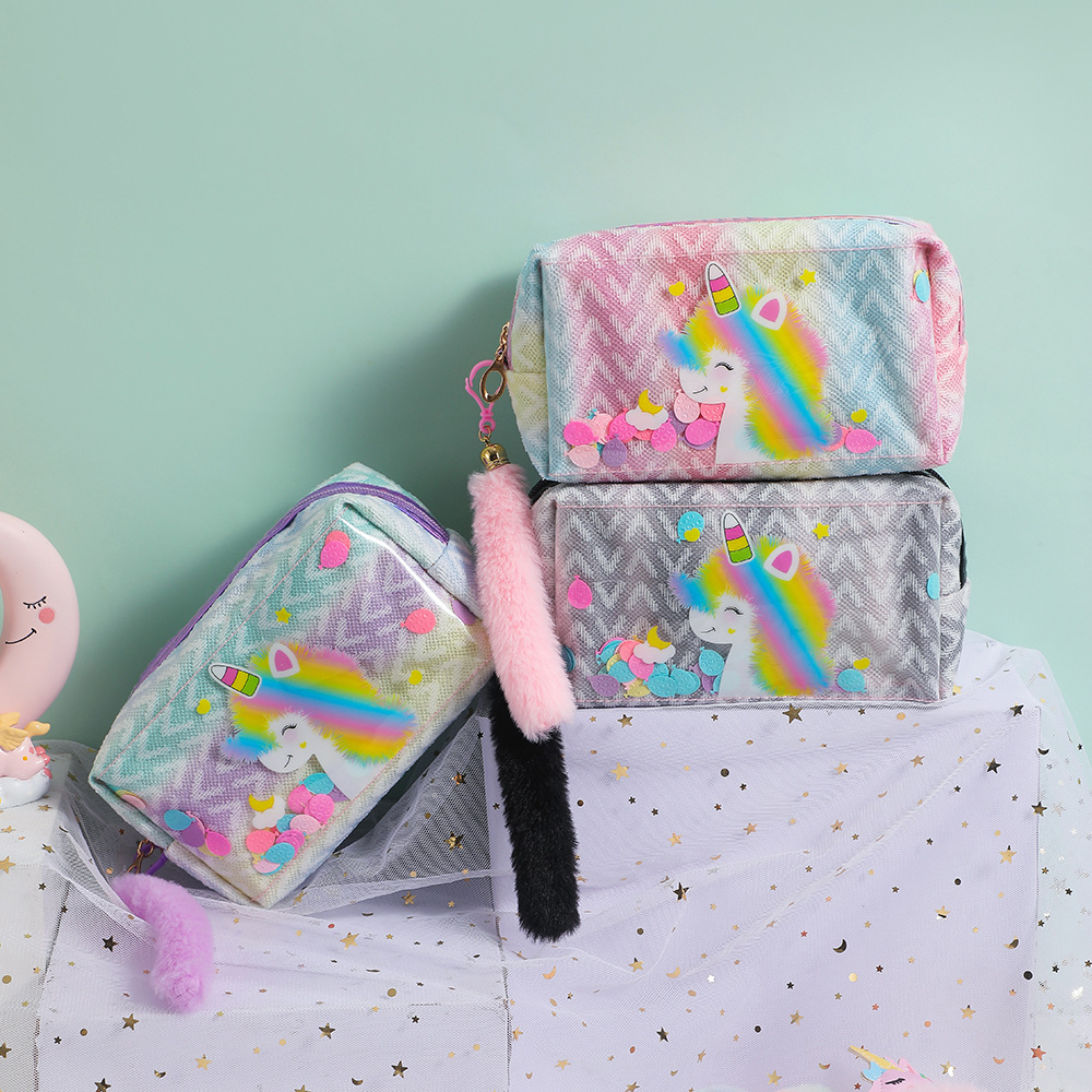 2024新款独角兽卡通亮片笔袋学生手拎化妆包儿童大容量文具收纳袋