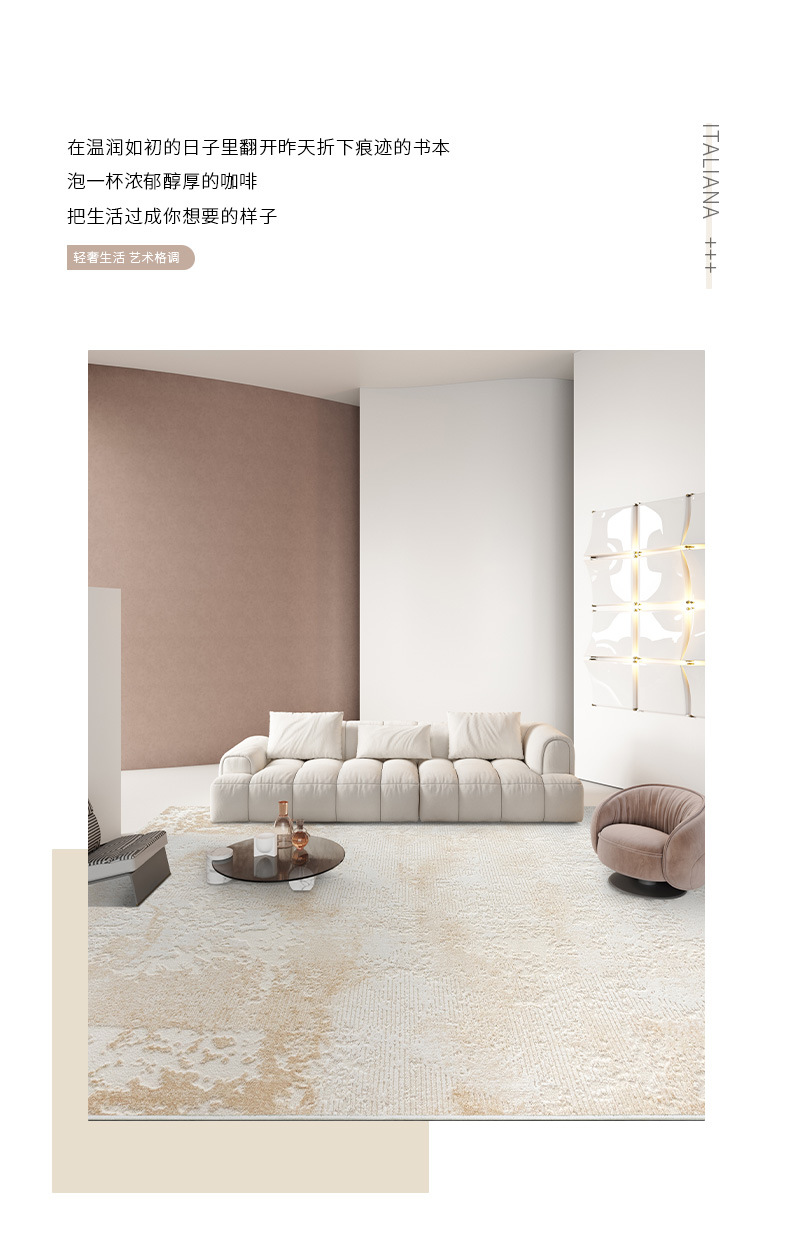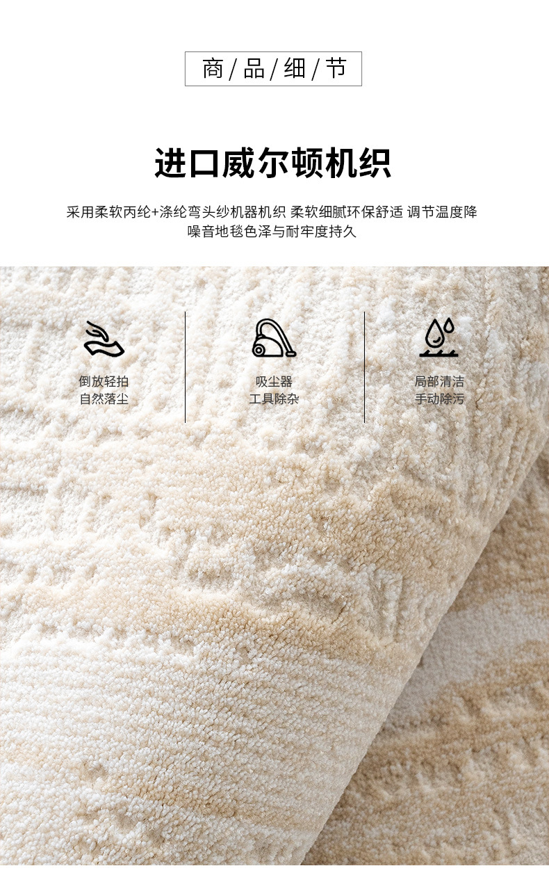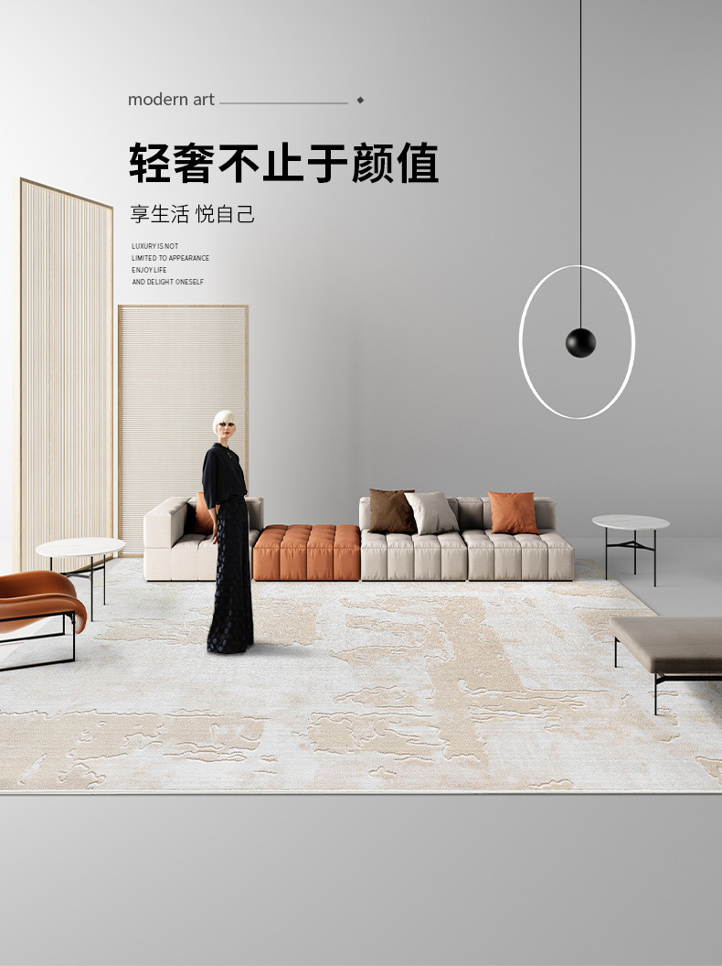 客厅地毯现代奶油北欧风条纹轻奢卧室床前沙发茶几家用地垫易打理