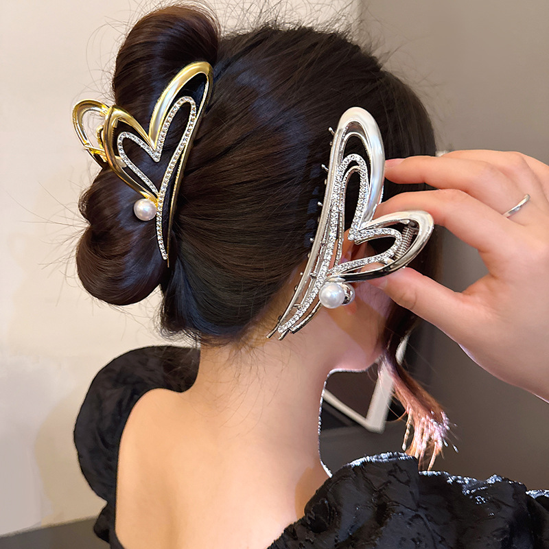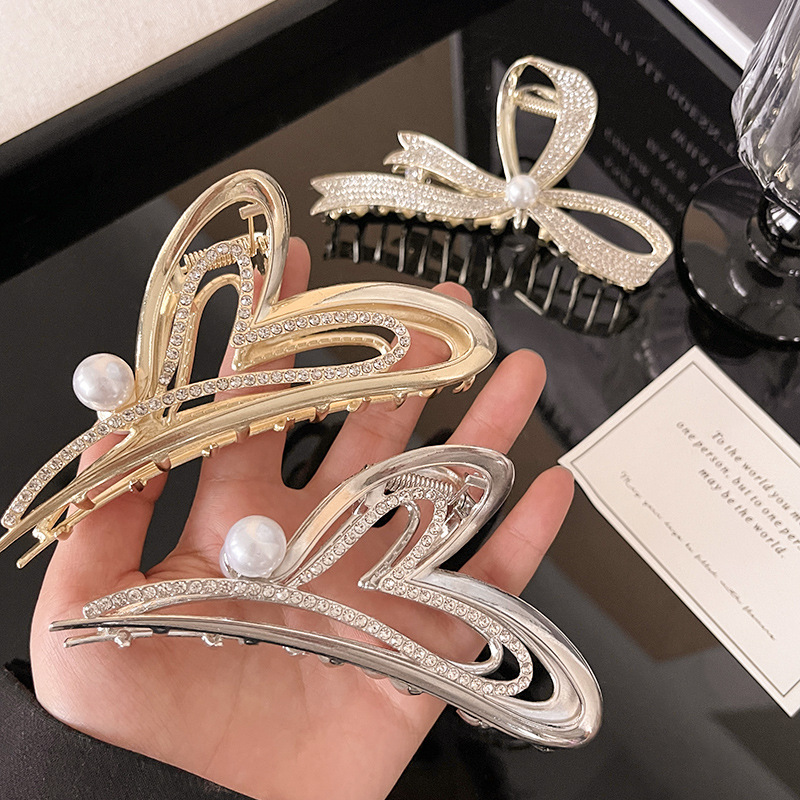 饰品批发大号爱心抓夹女高级感夹子头饰发夹后脑勺轻奢镶钻鲨鱼夹