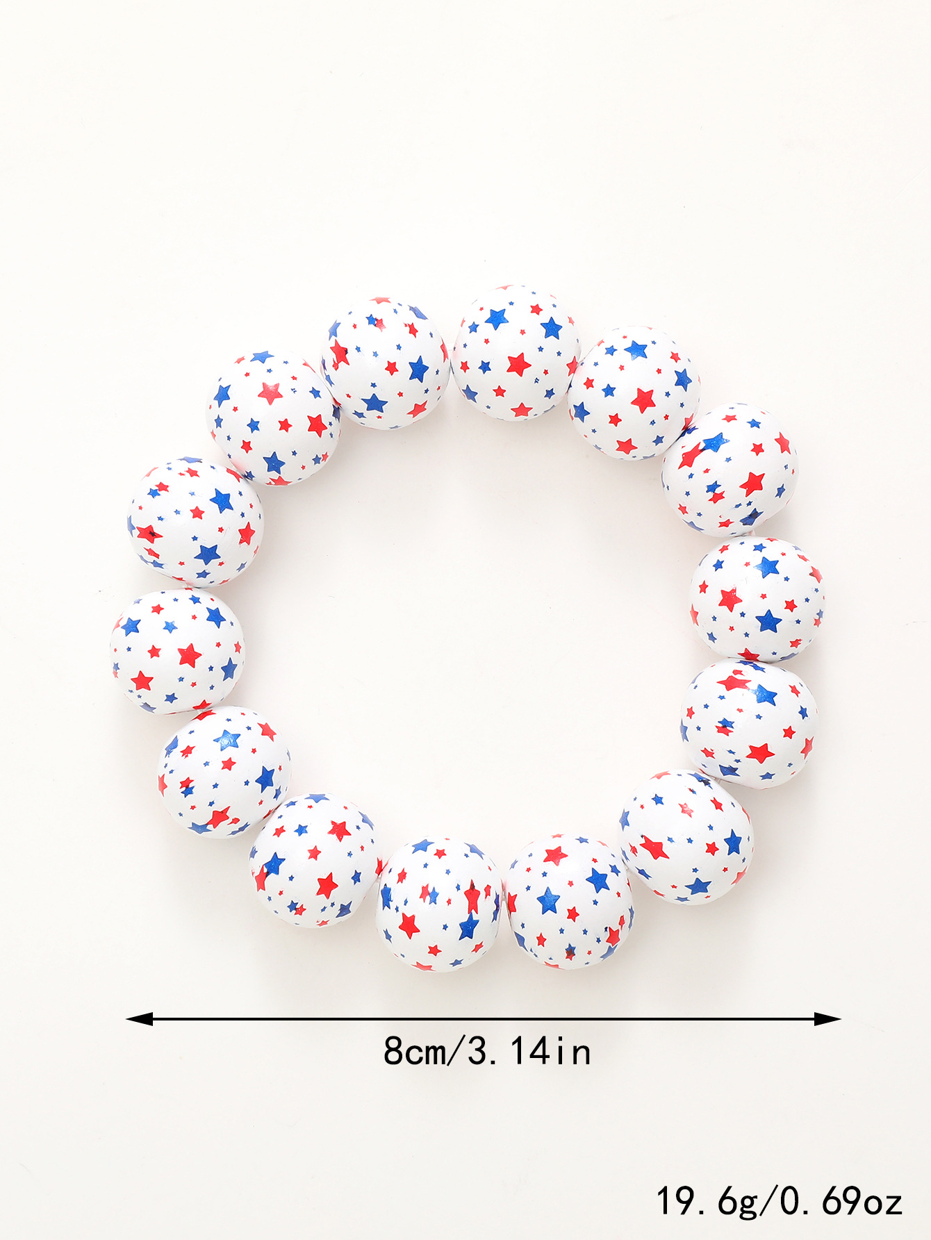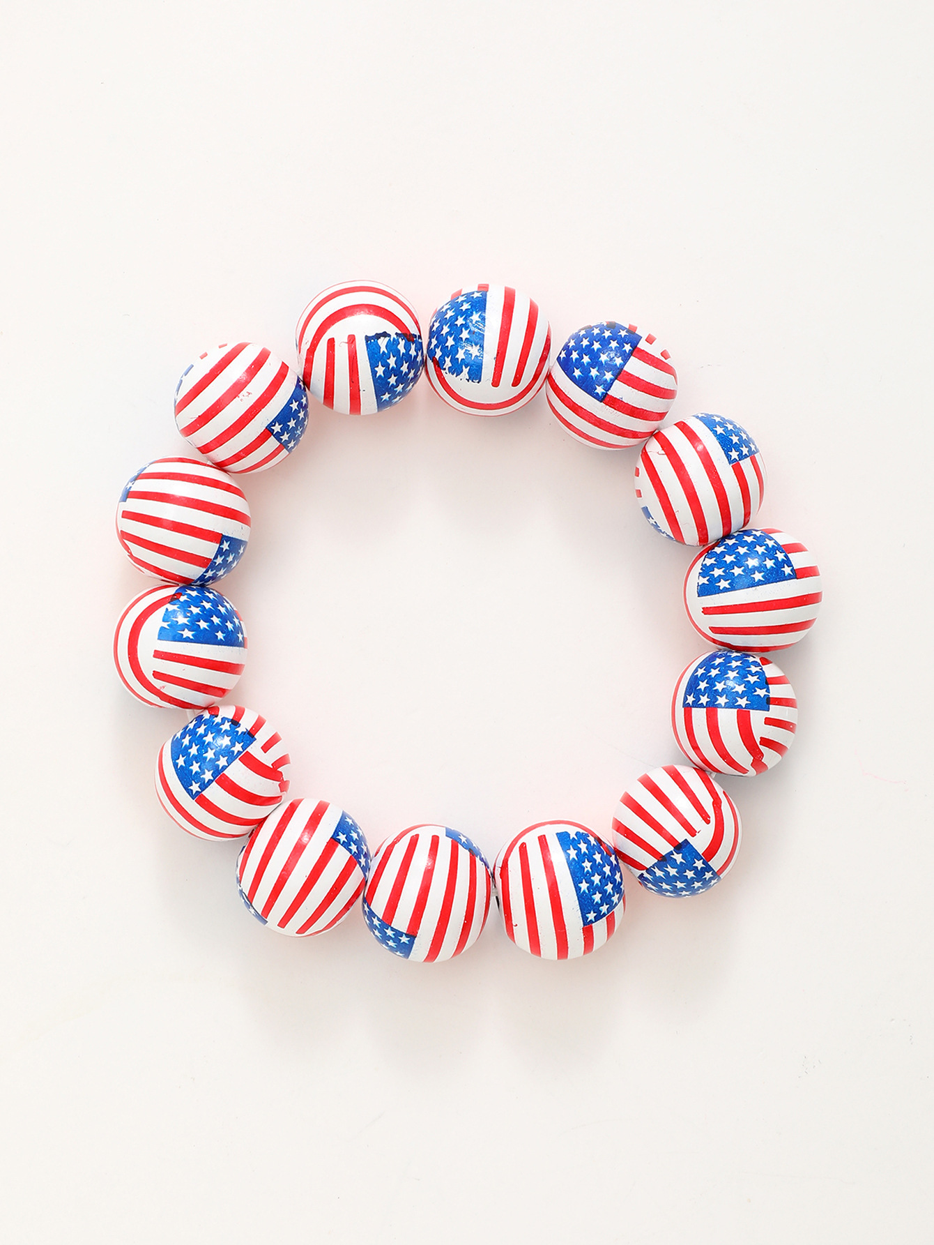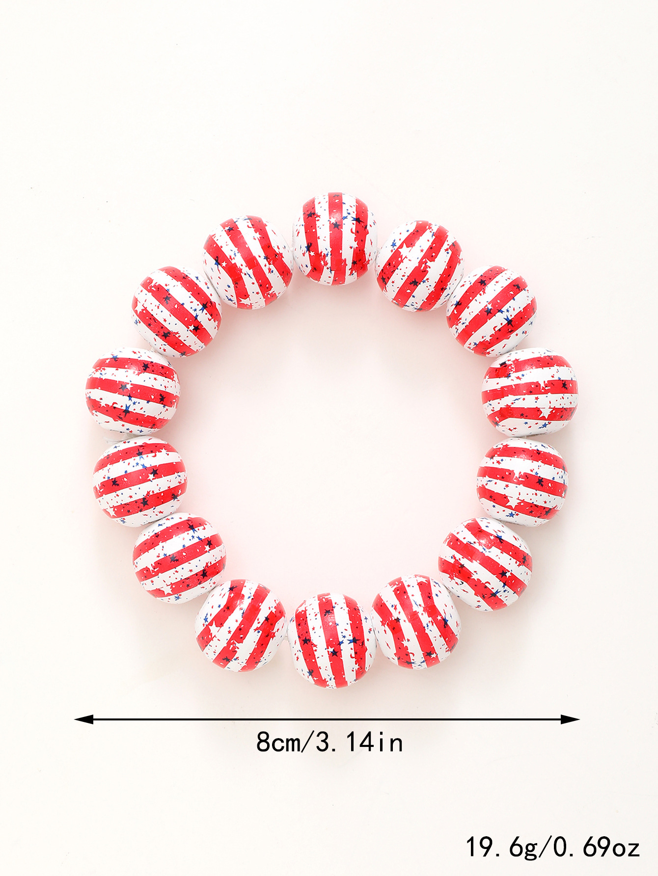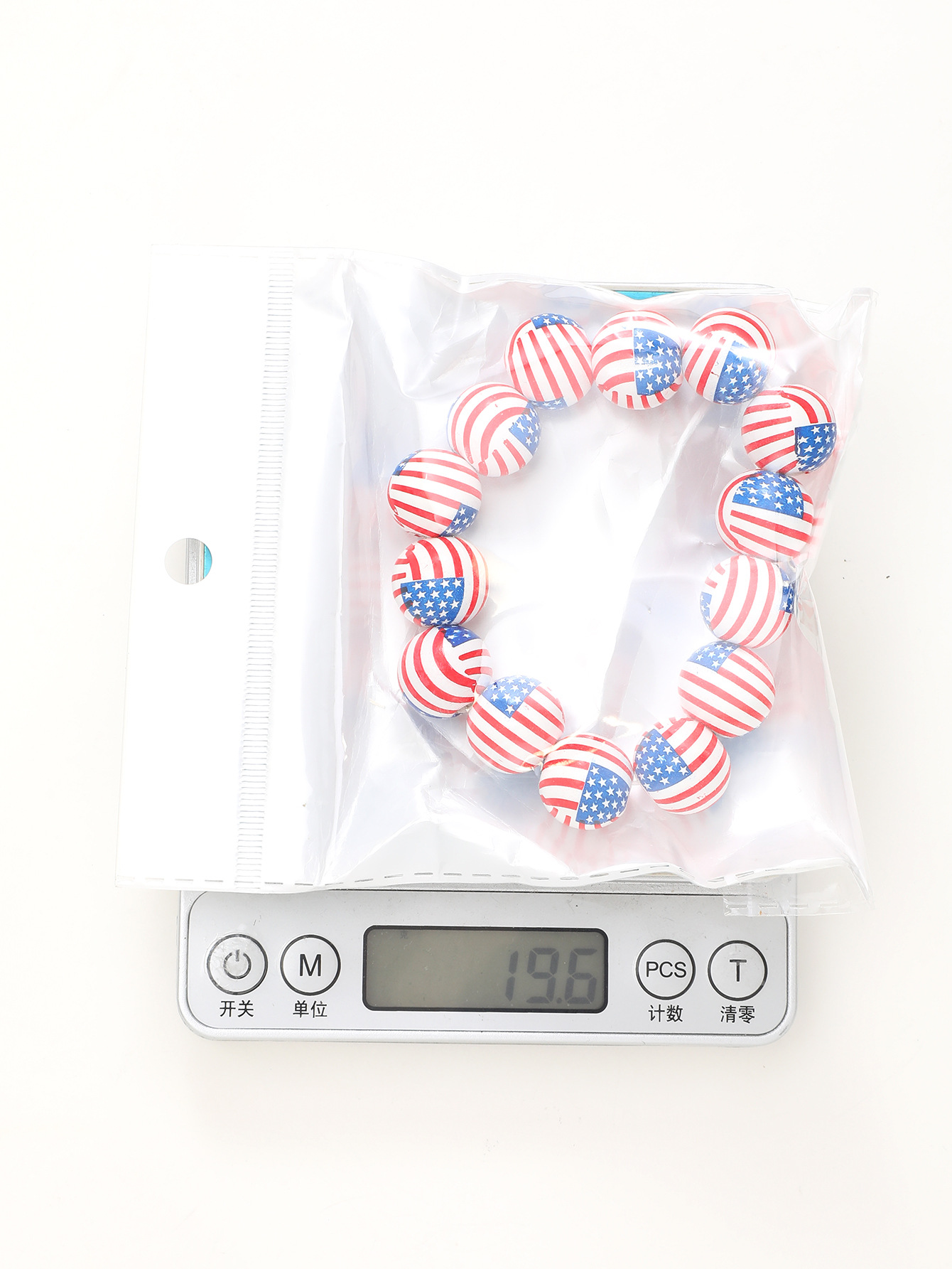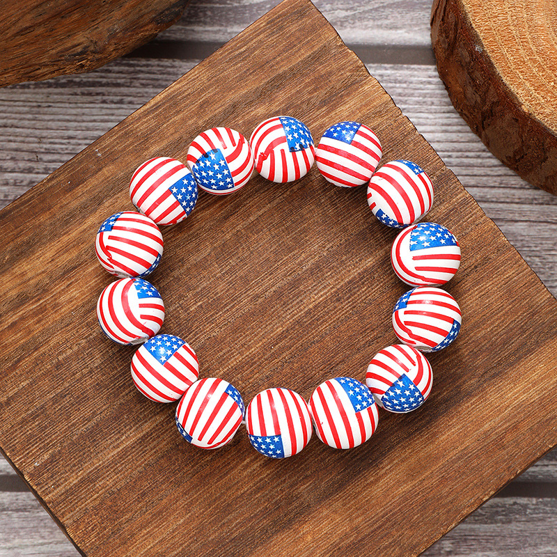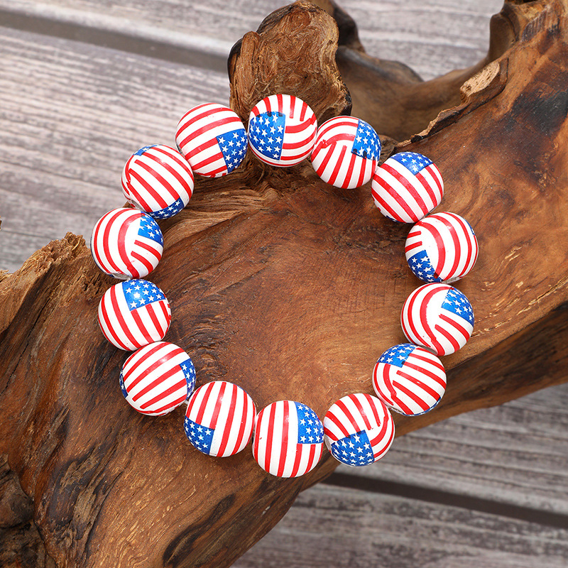 新款美国独立日星条旗亮色木质串珠手链简约风格手工串珠女士首饰
