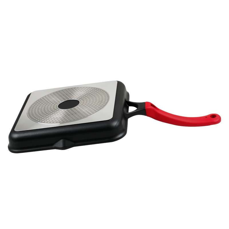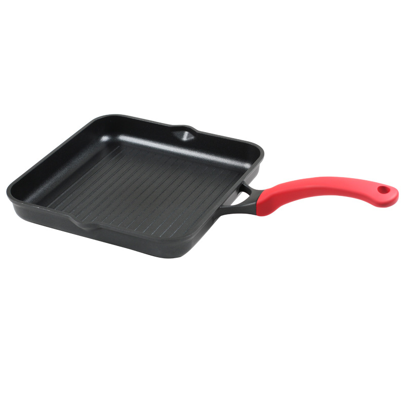 铝制加厚条纹牛排煎锅牛扒煎盘方形无涂层平底锅方形煎锅外贸款
