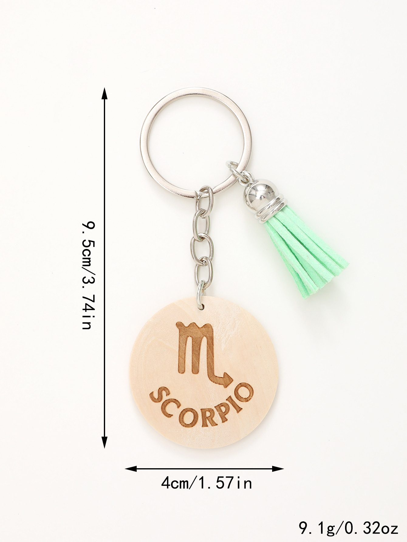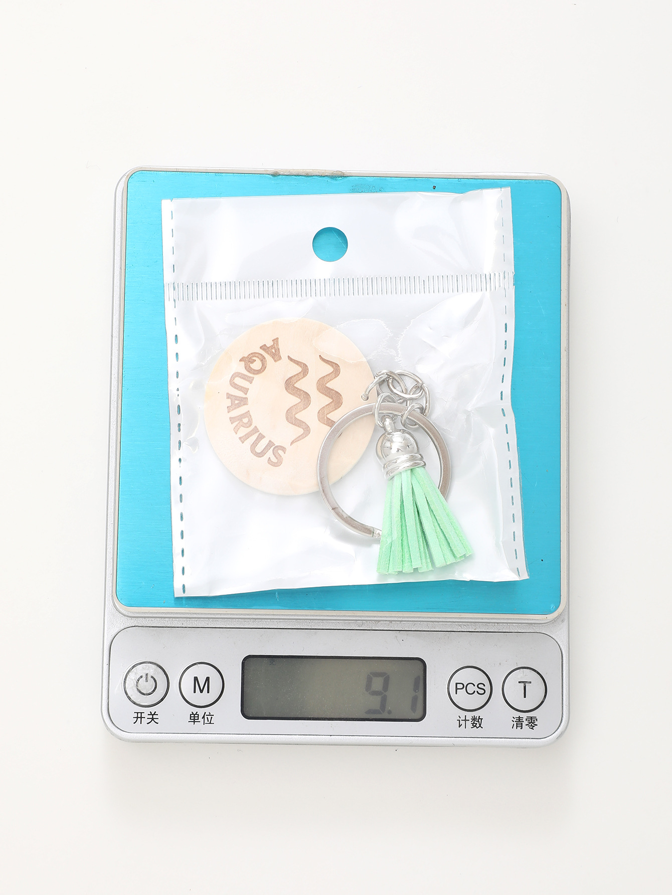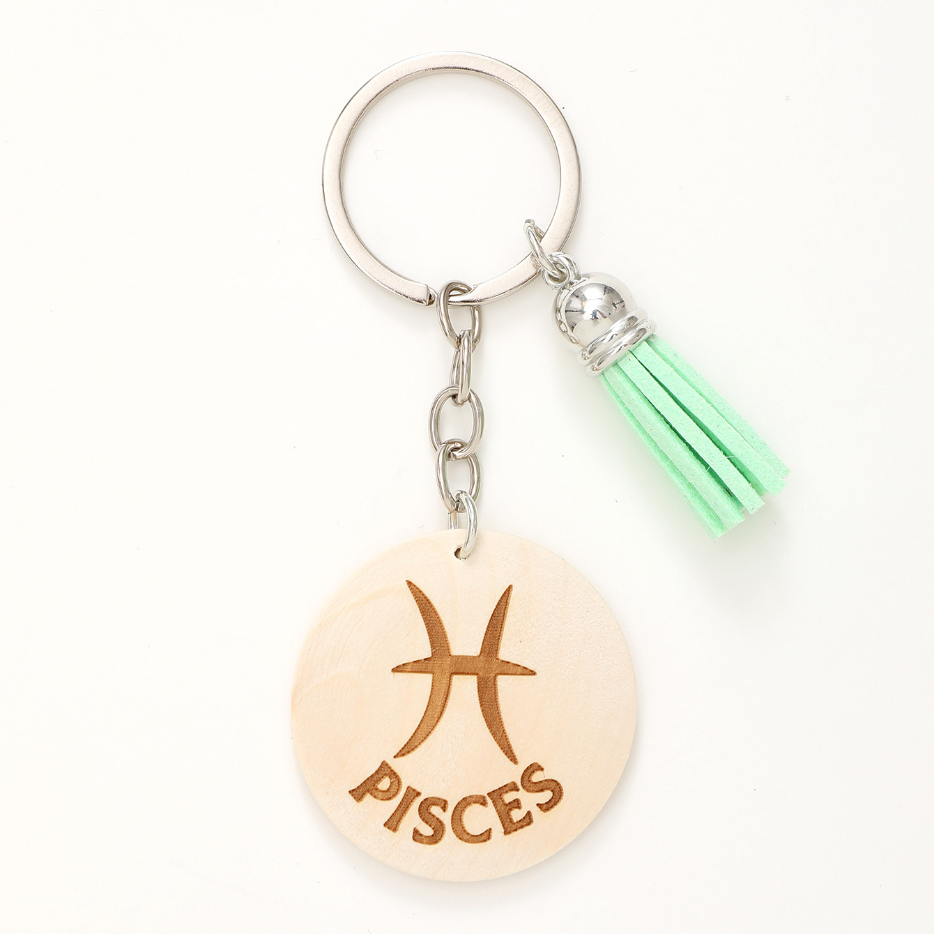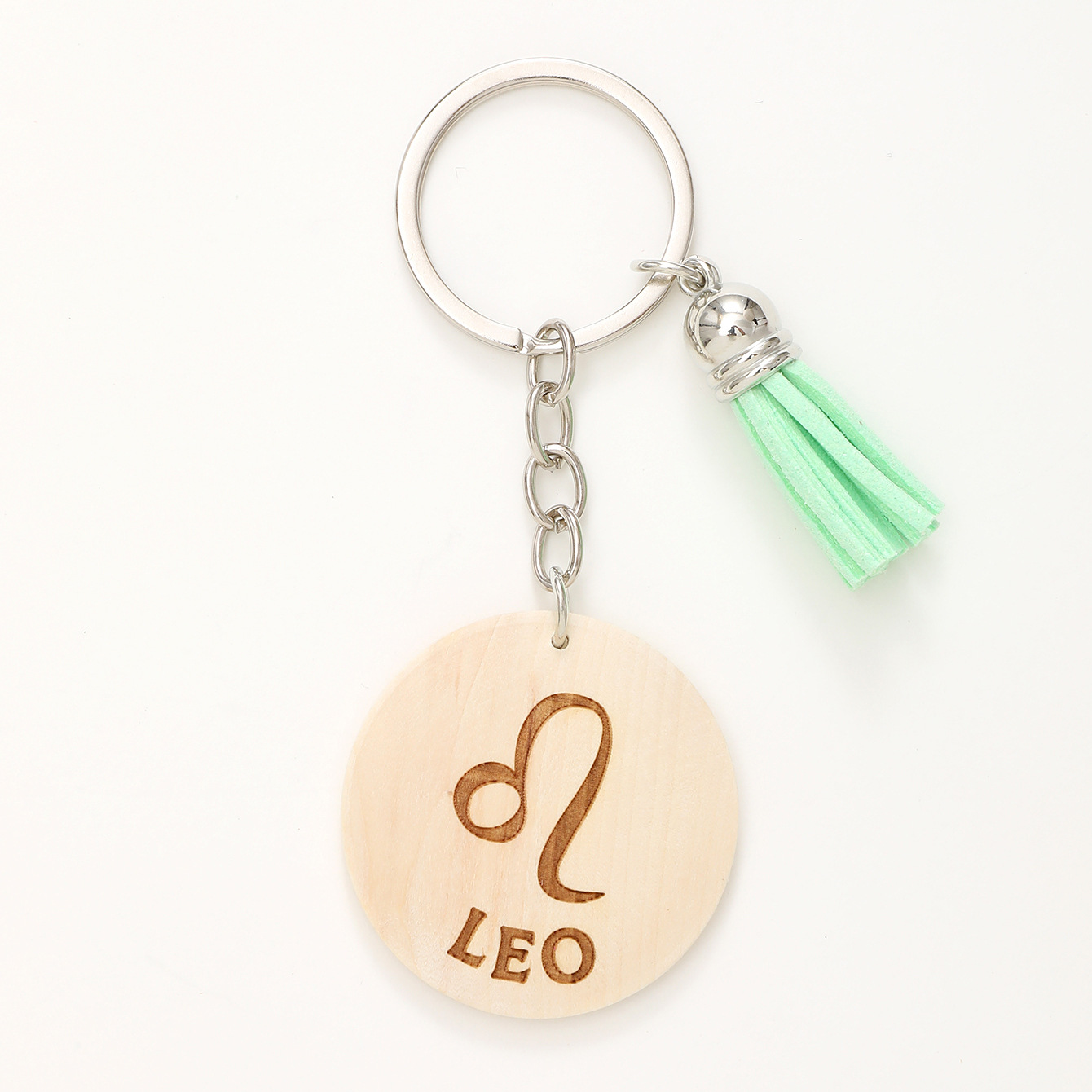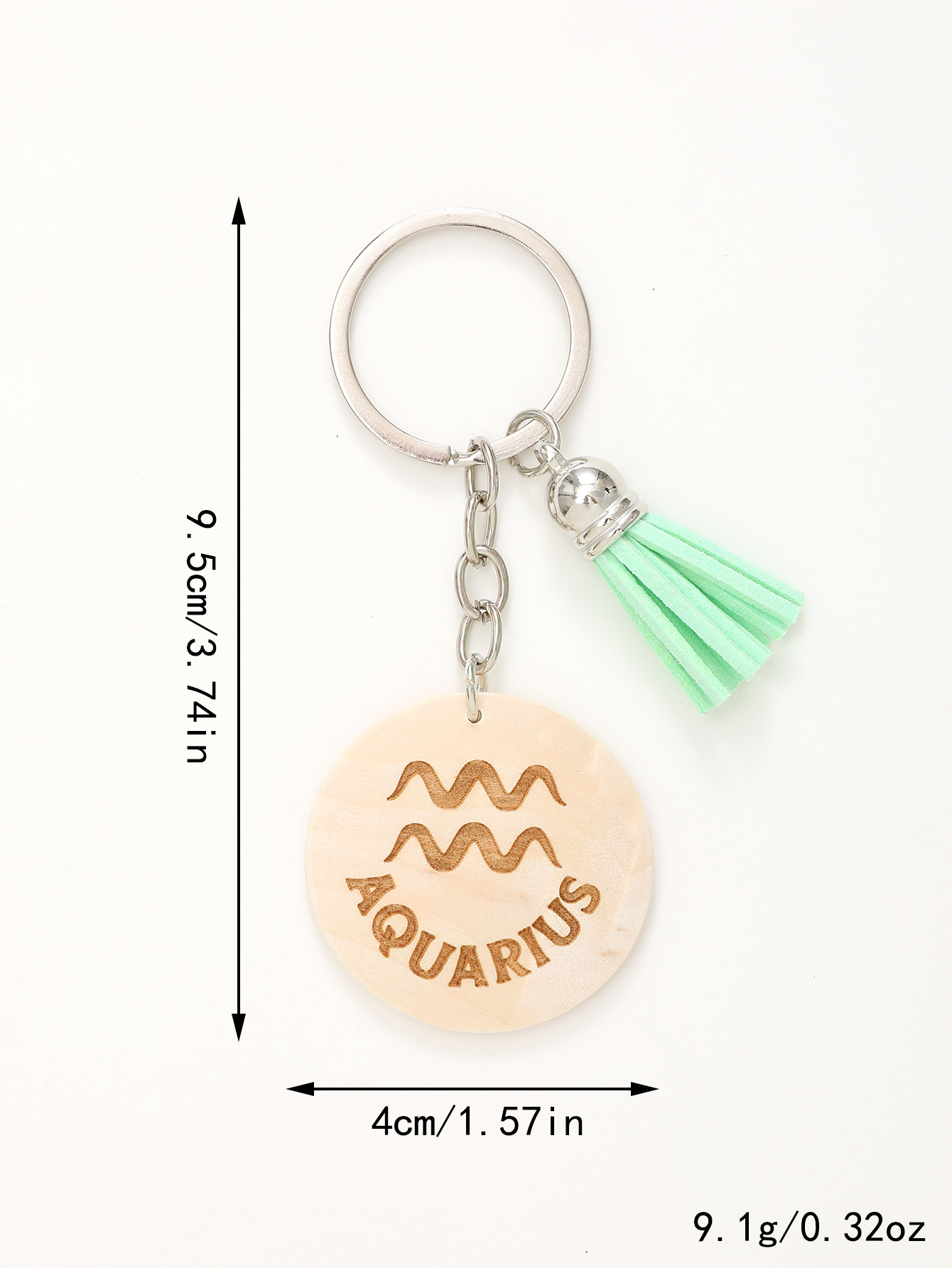 新款农场简约风木质圆形十二星座字母图案钥匙扣薄荷绿Mint流苏挂