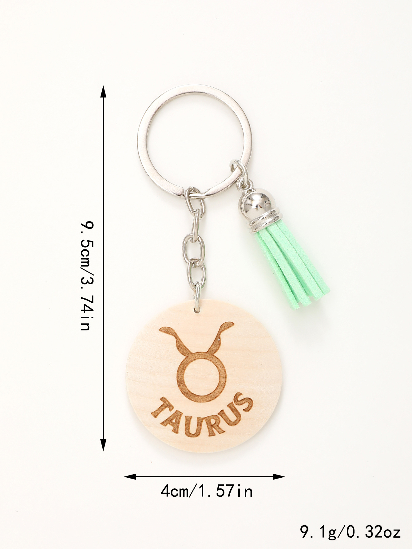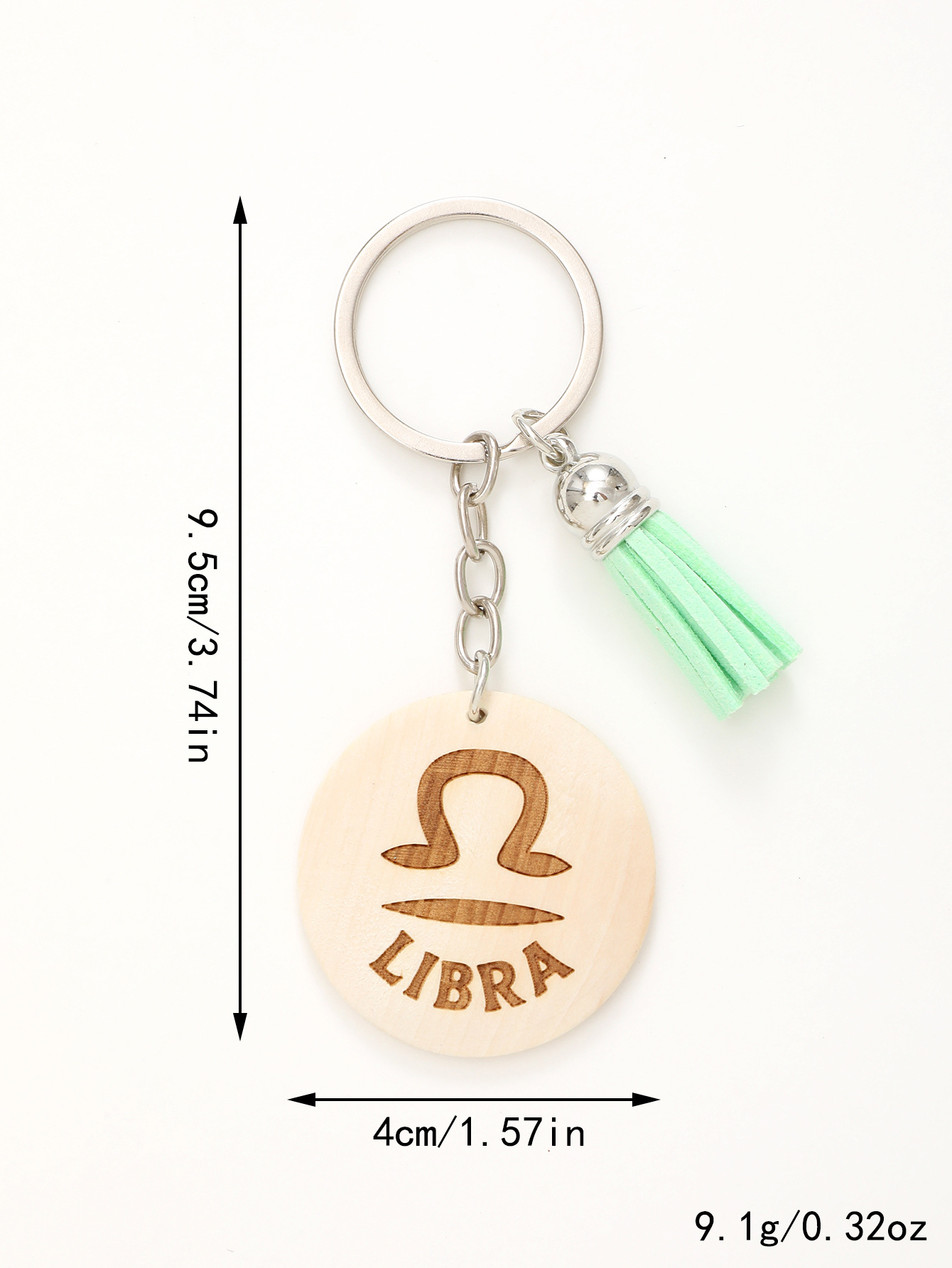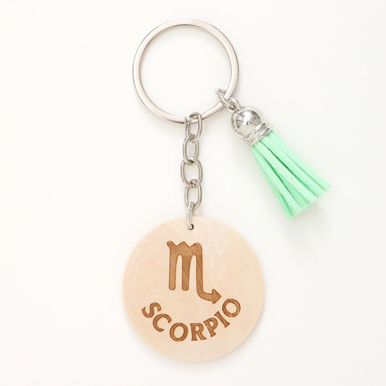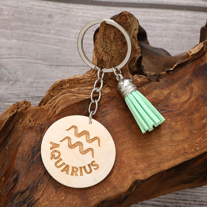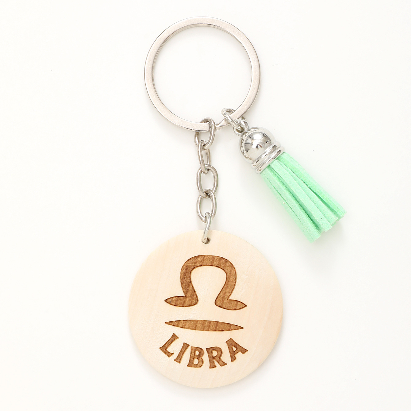新款农场简约风木质圆形十二星座字母图案钥匙扣薄荷绿Mint流苏挂