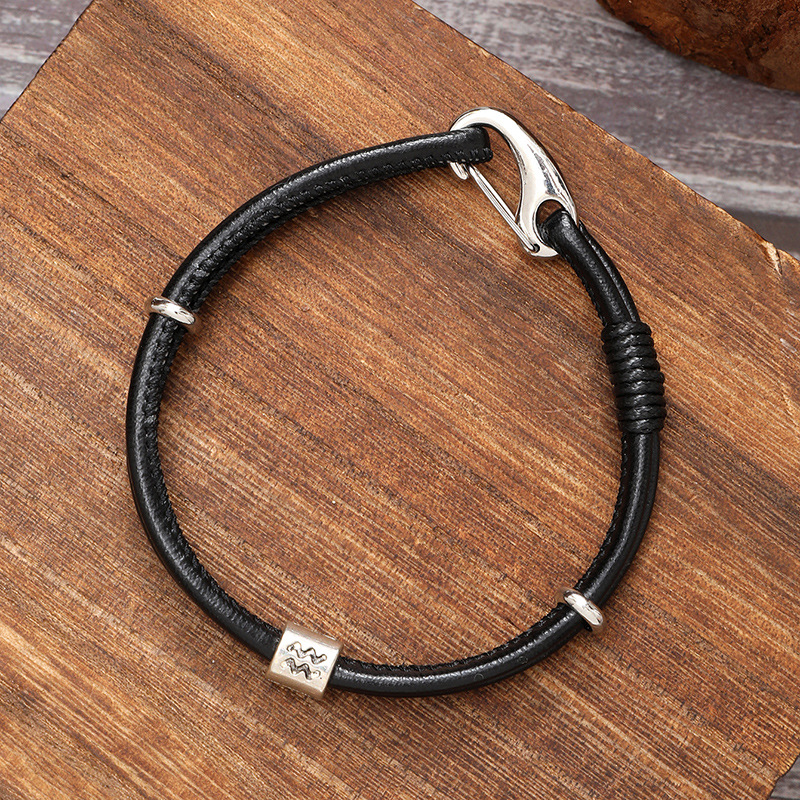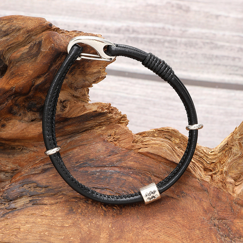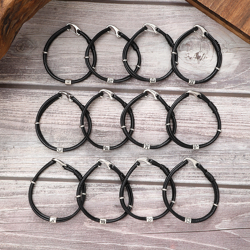 新款欧美风十二星座合金配件时尚手环个性PU皮革手镯男女通用