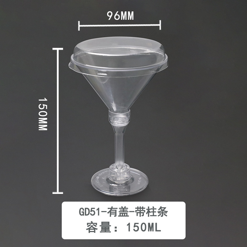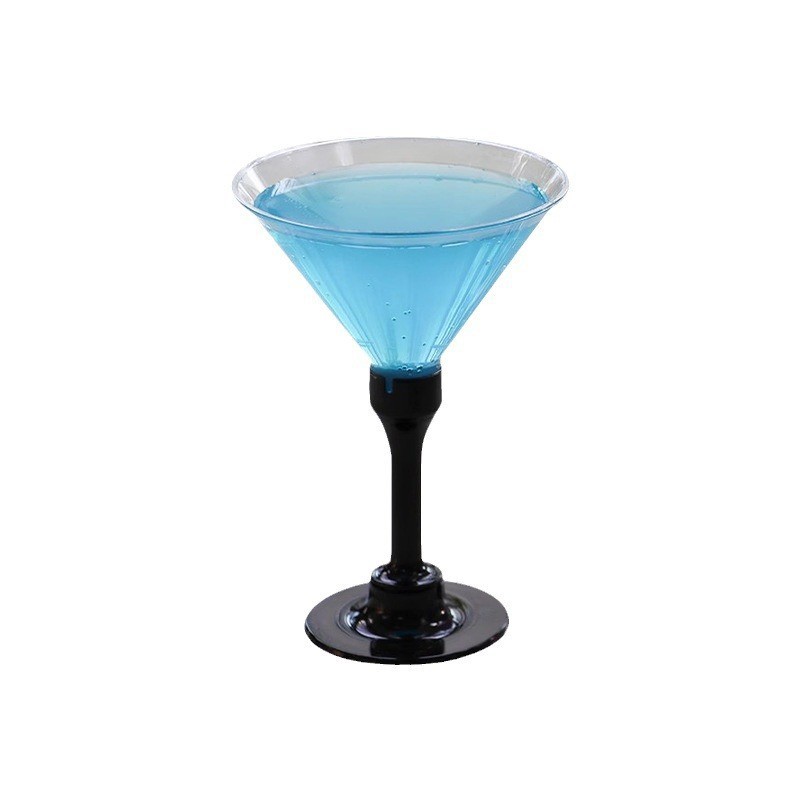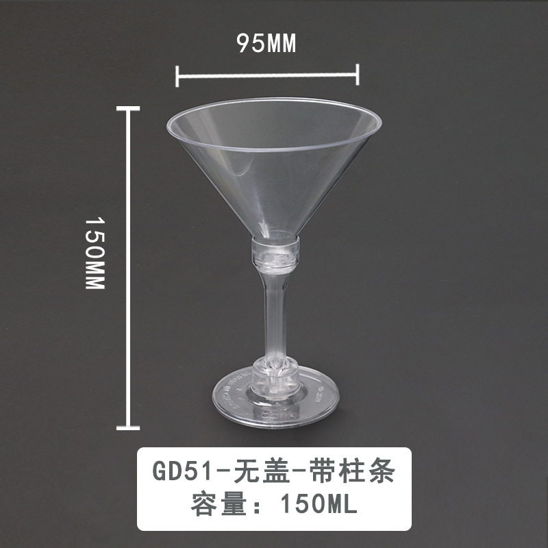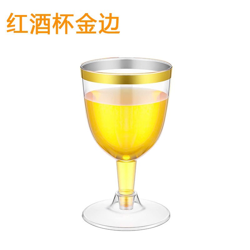 工厂直供金色镶边香槟杯一次性鸡尾酒杯塑料红酒杯高脚杯金粉马提