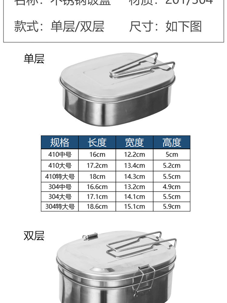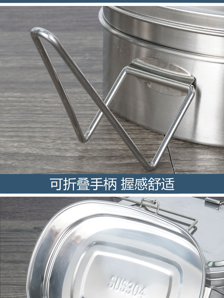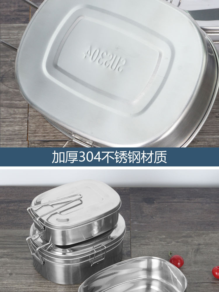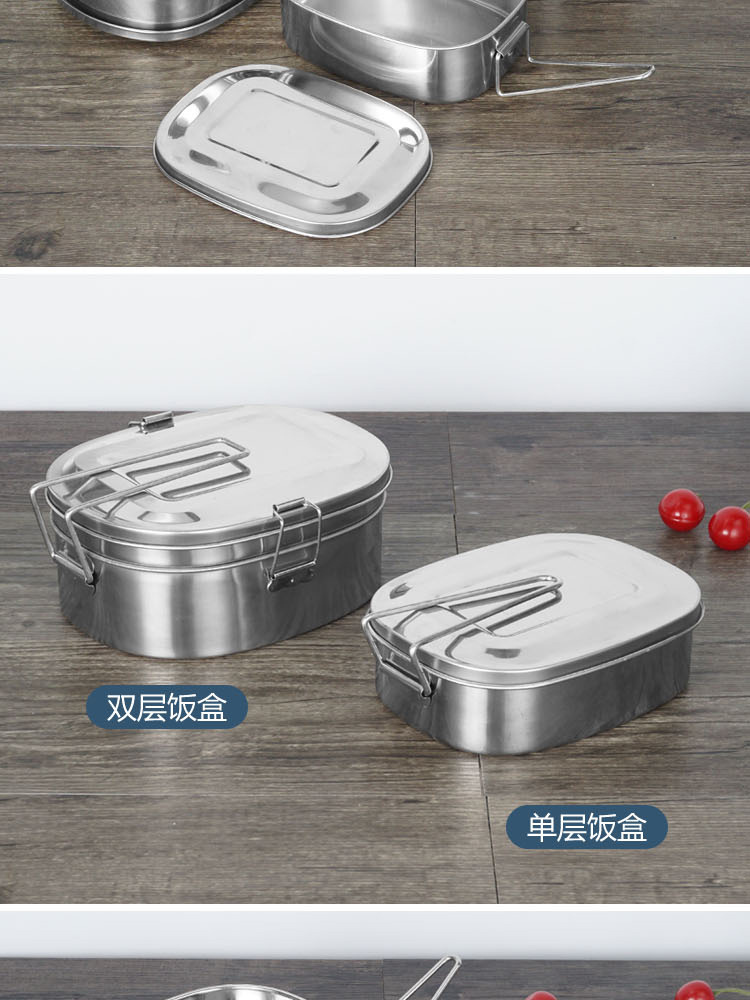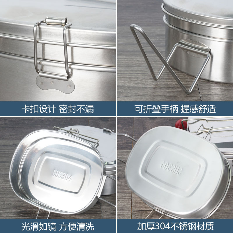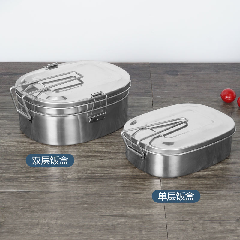 304不锈钢老式饭盒 食品级双层饭盒方形带盖便当盒上班族打饭餐盒