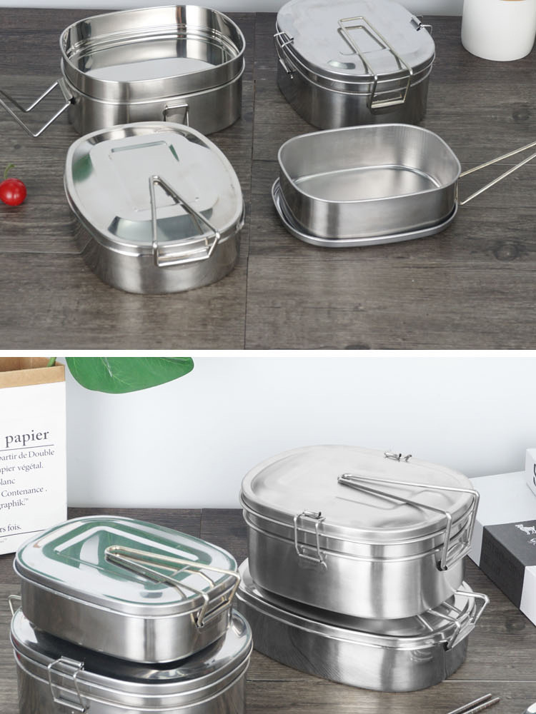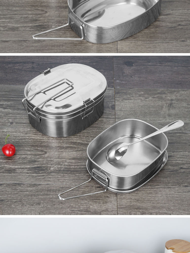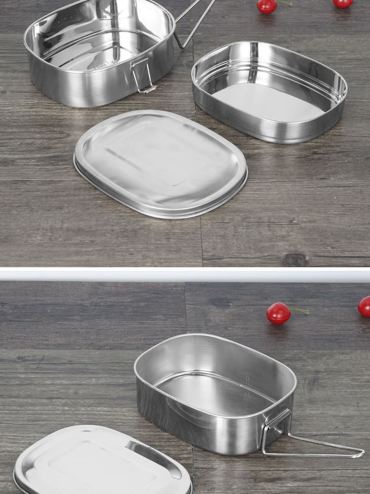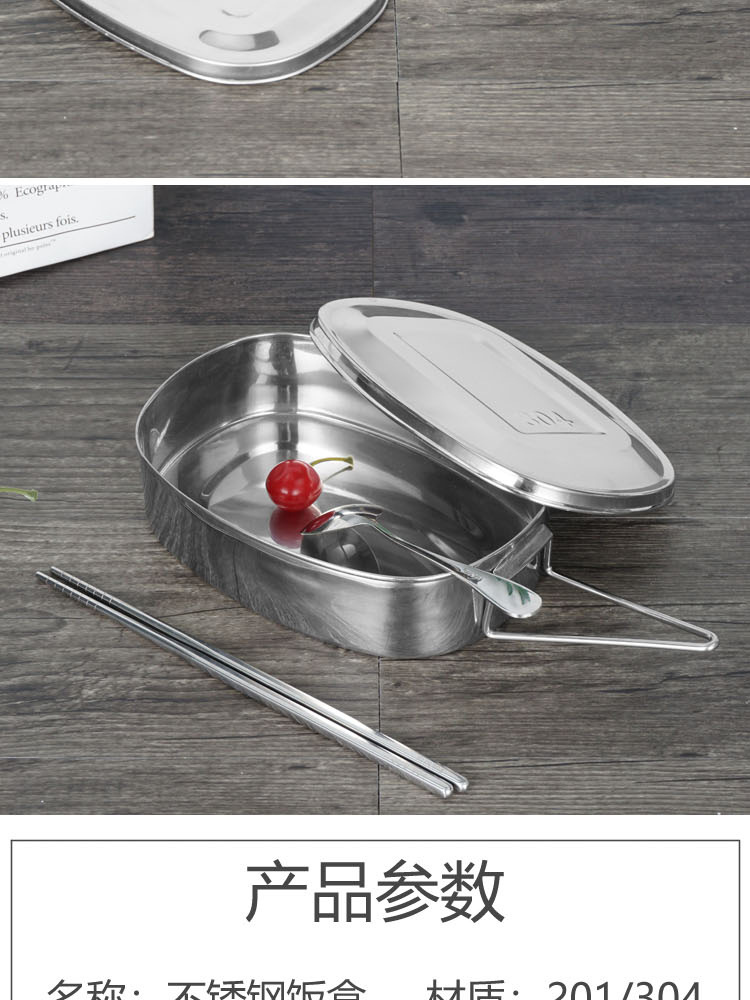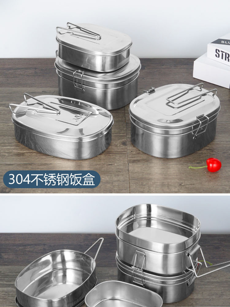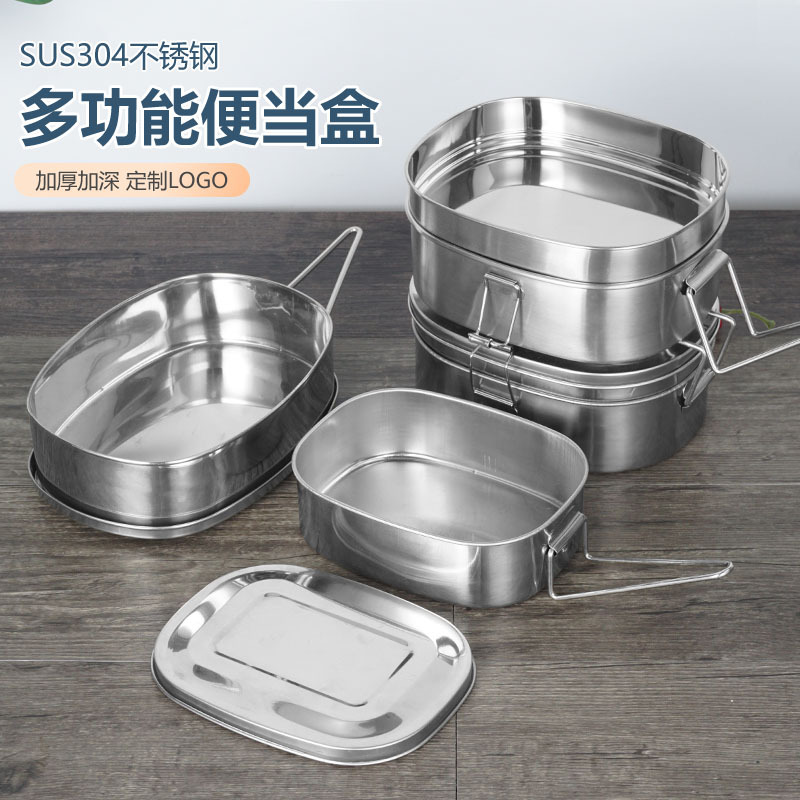 304不锈钢老式饭盒 食品级双层饭盒方形带盖便当盒上班族打饭餐盒